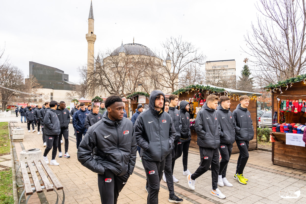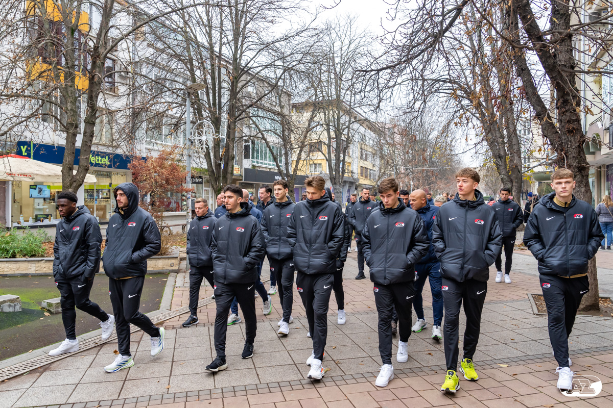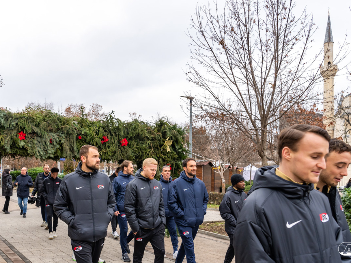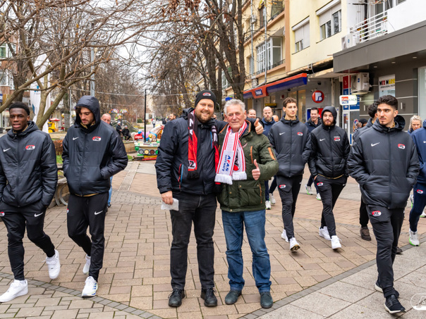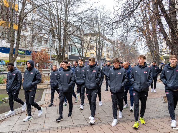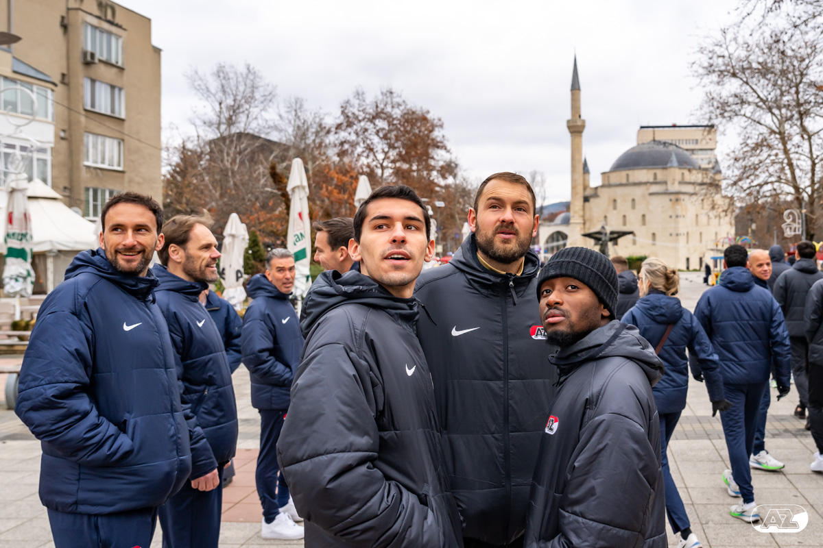 RAZGRAD- De Huvepharma Arena is 's avonds het toneel van de wedstrijd tussen PFK Ludogorets en AZ. In de ochtend op Europese wedstrijddagen maakt de AZ-selectie traditiegetrouw een wandeling door de stad. (Foto's: Ed van de Pol)