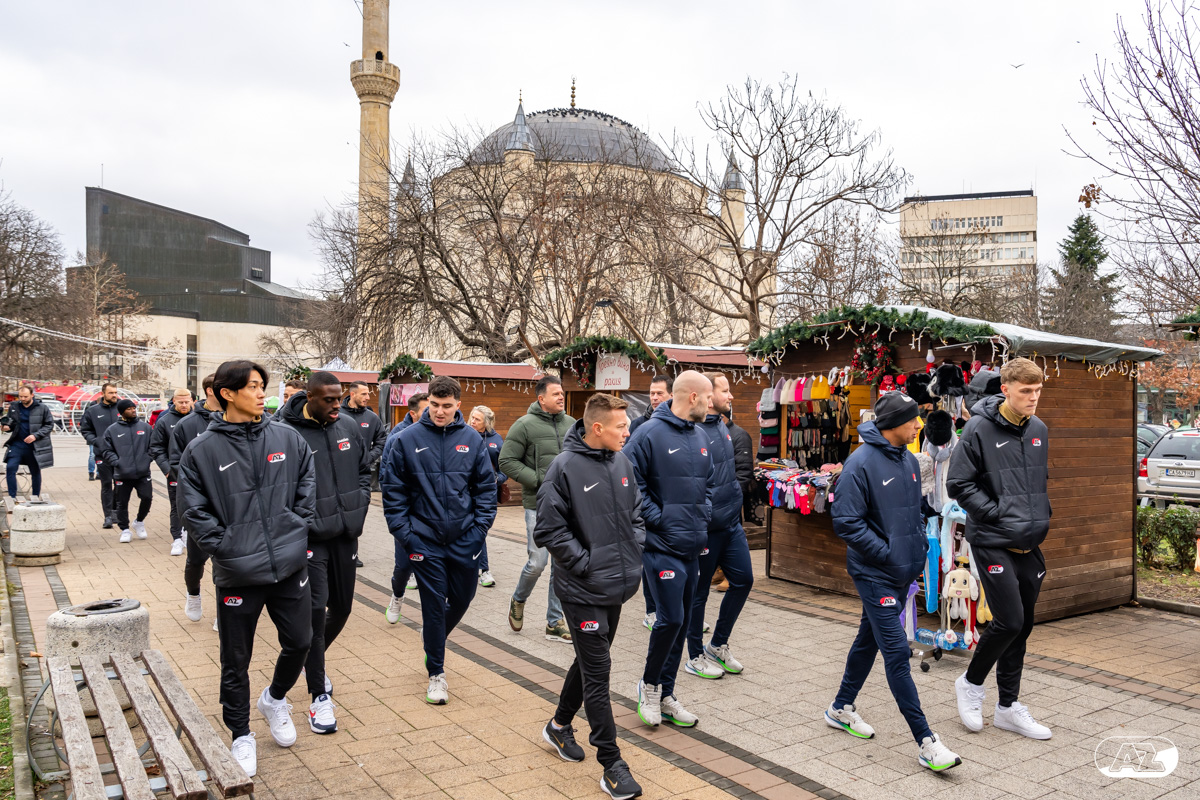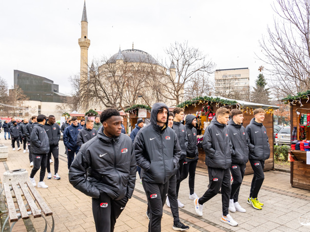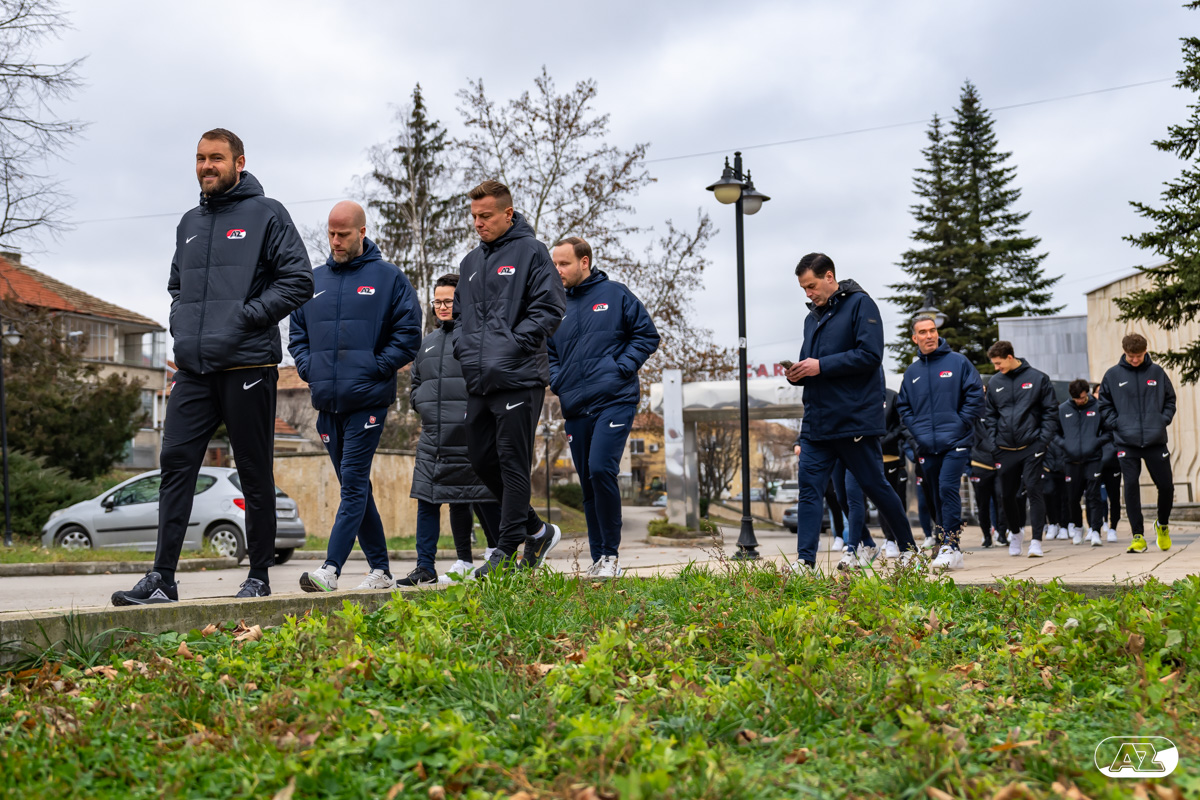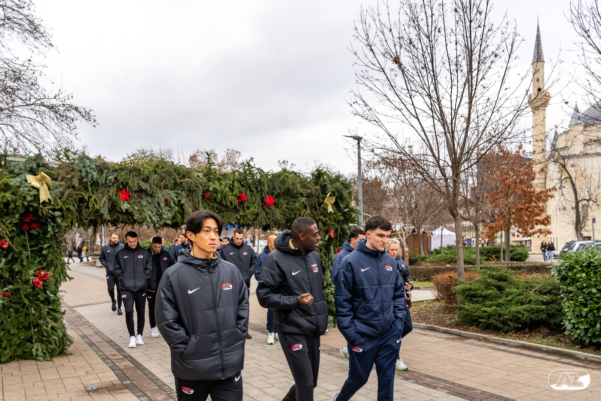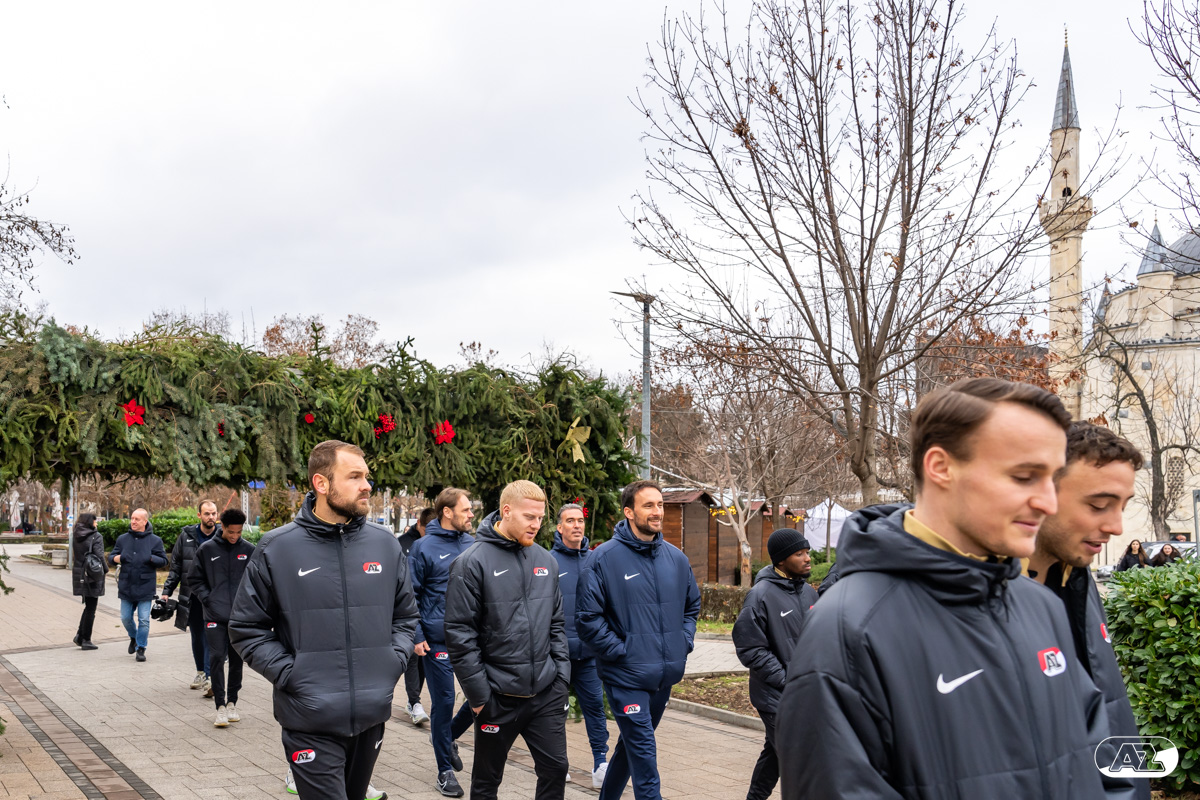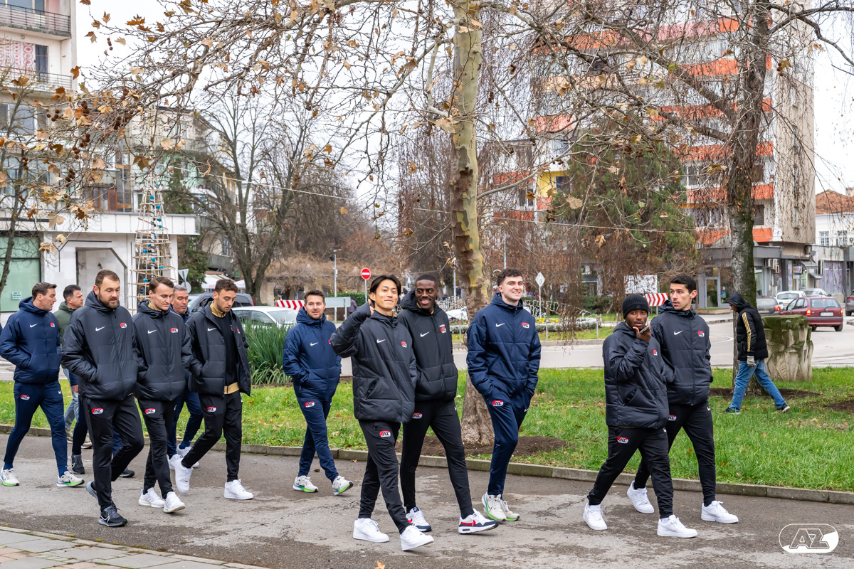 RAZGRAD- De Huvepharma Arena is 's avonds het toneel van de wedstrijd tussen PFK Ludogorets en AZ. In de ochtend op Europese wedstrijddagen maakt de AZ-selectie traditiegetrouw een wandeling door de stad. (Foto's: Ed van de Pol)