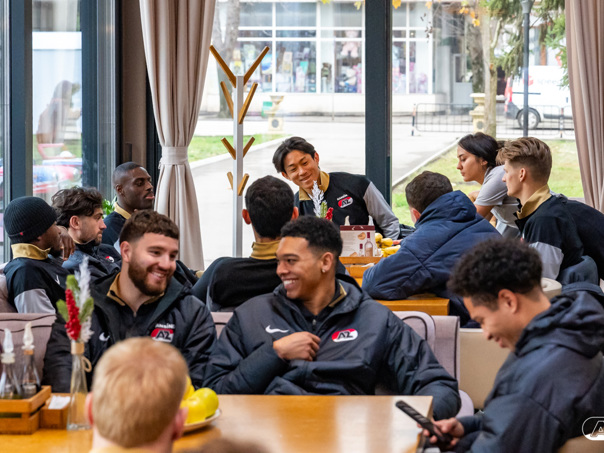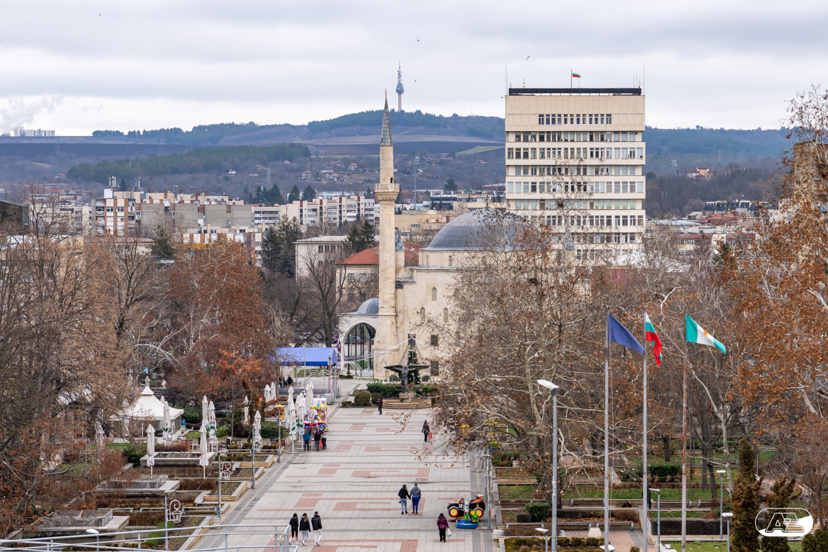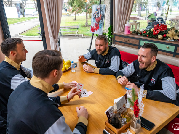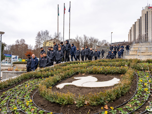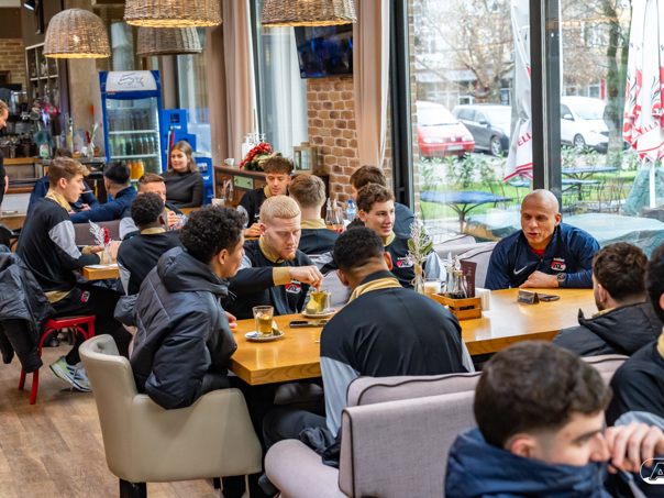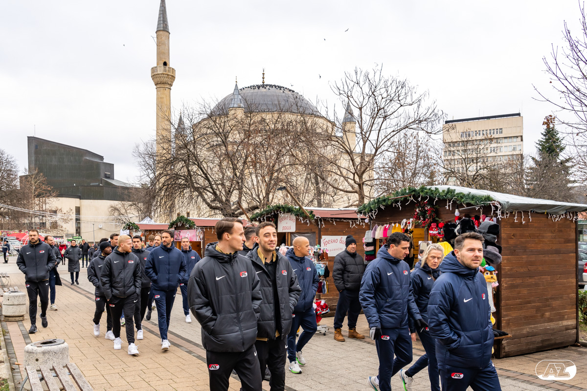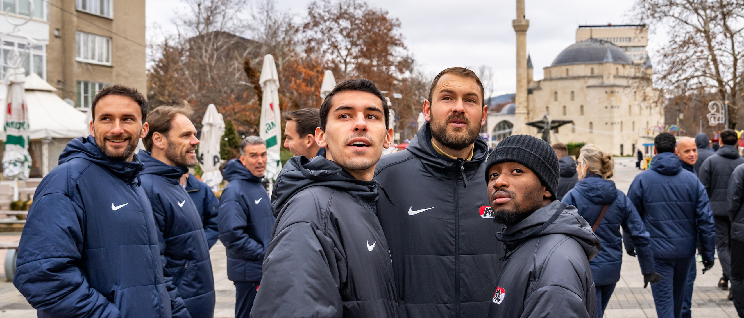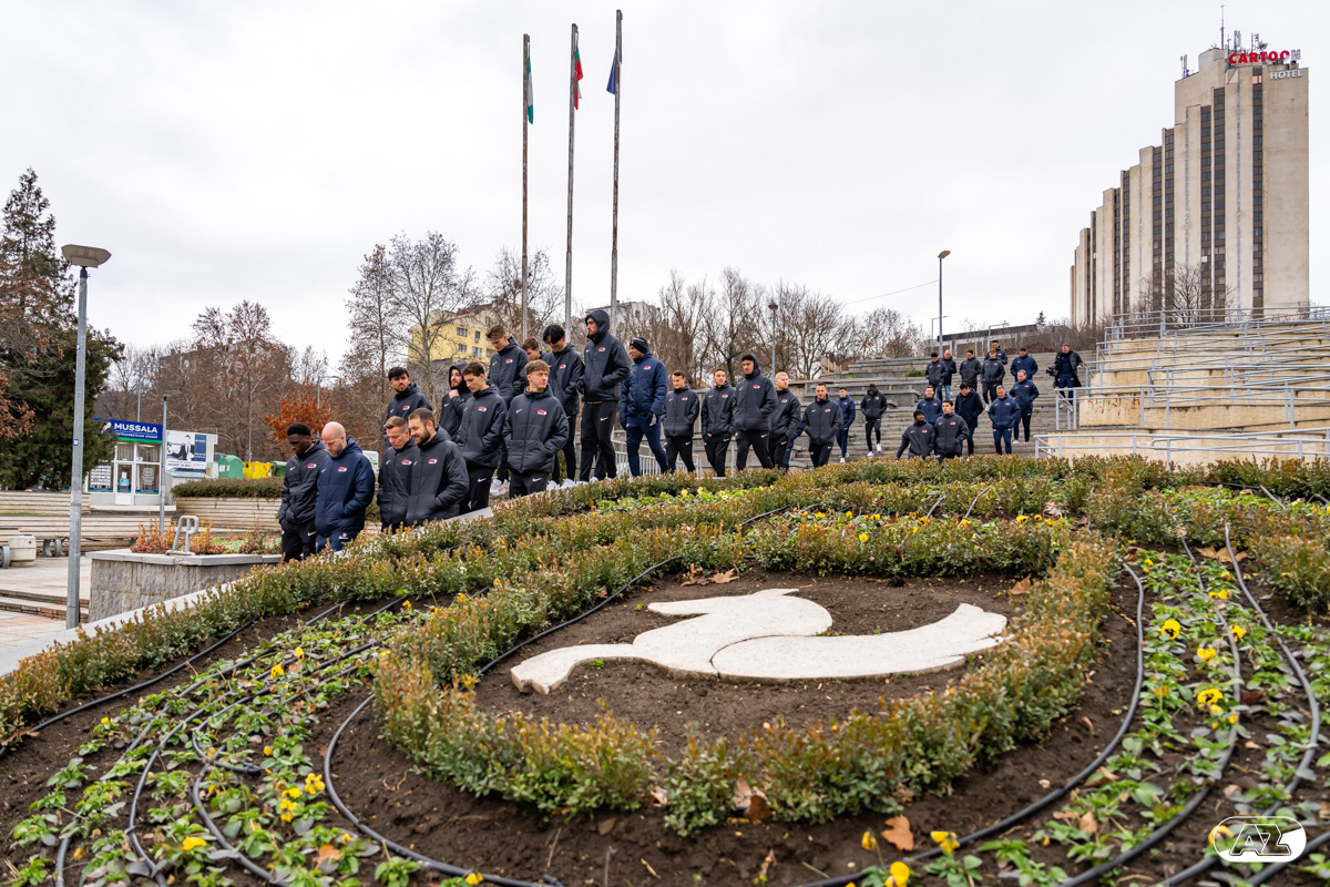 RAZGRAD- De Huvepharma Arena is 's avonds het toneel van de wedstrijd tussen PFK Ludogorets en AZ. In de ochtend op Europese wedstrijddagen maakt de AZ-selectie traditiegetrouw een wandeling door de stad. (Foto's: Ed van de Pol)