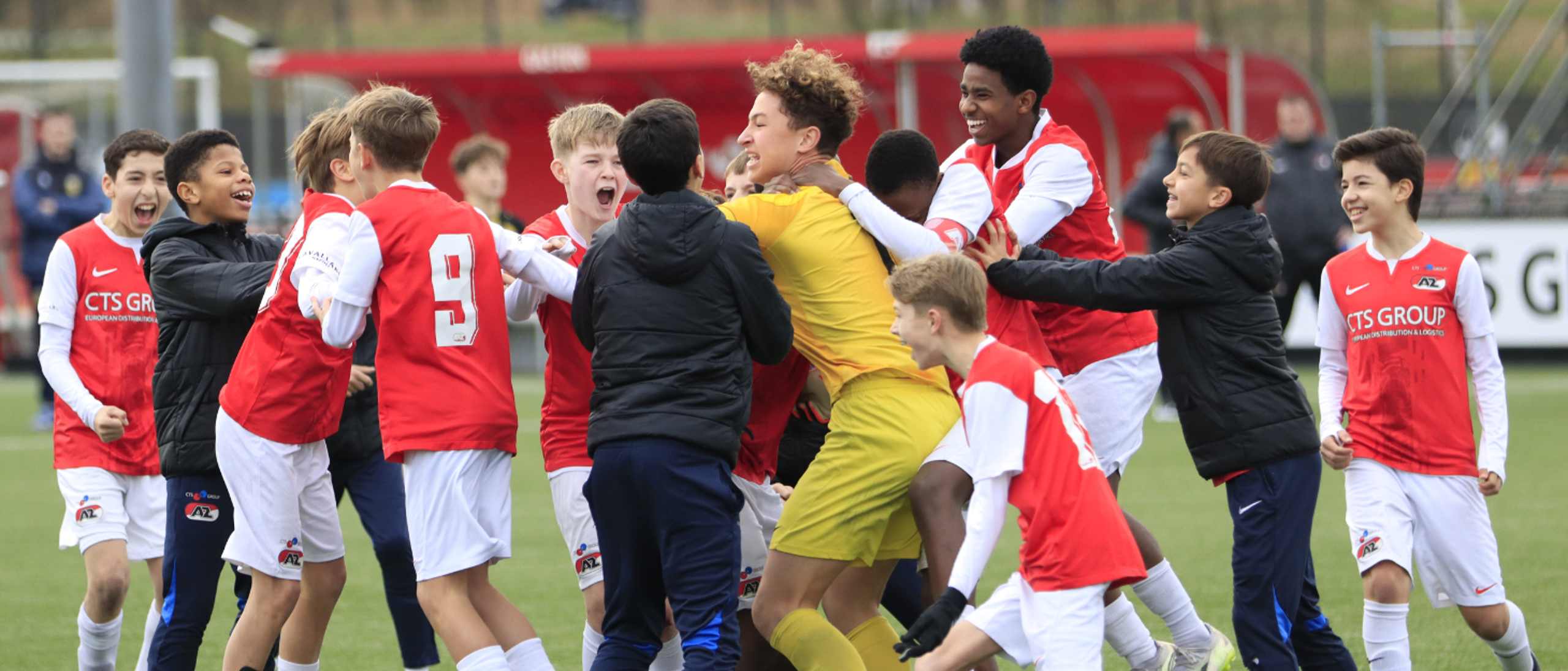 ZAANSTAD- Vijf teams van de AZ Jeugdopleiding kwamen zaterdag in actie. De Onder 13-selectie sleepte een ticket voor de kwartfinales van de KNVB Beker in de wacht, terwijl de jongste AZ'ers ruim van Feyenoord wonnen. Ook AZ Onder 18 deed uitstekende zaken door concurrent Ajax te verslaan. Dinsdag speelde ook AZ Onder 17 een competitieduel.