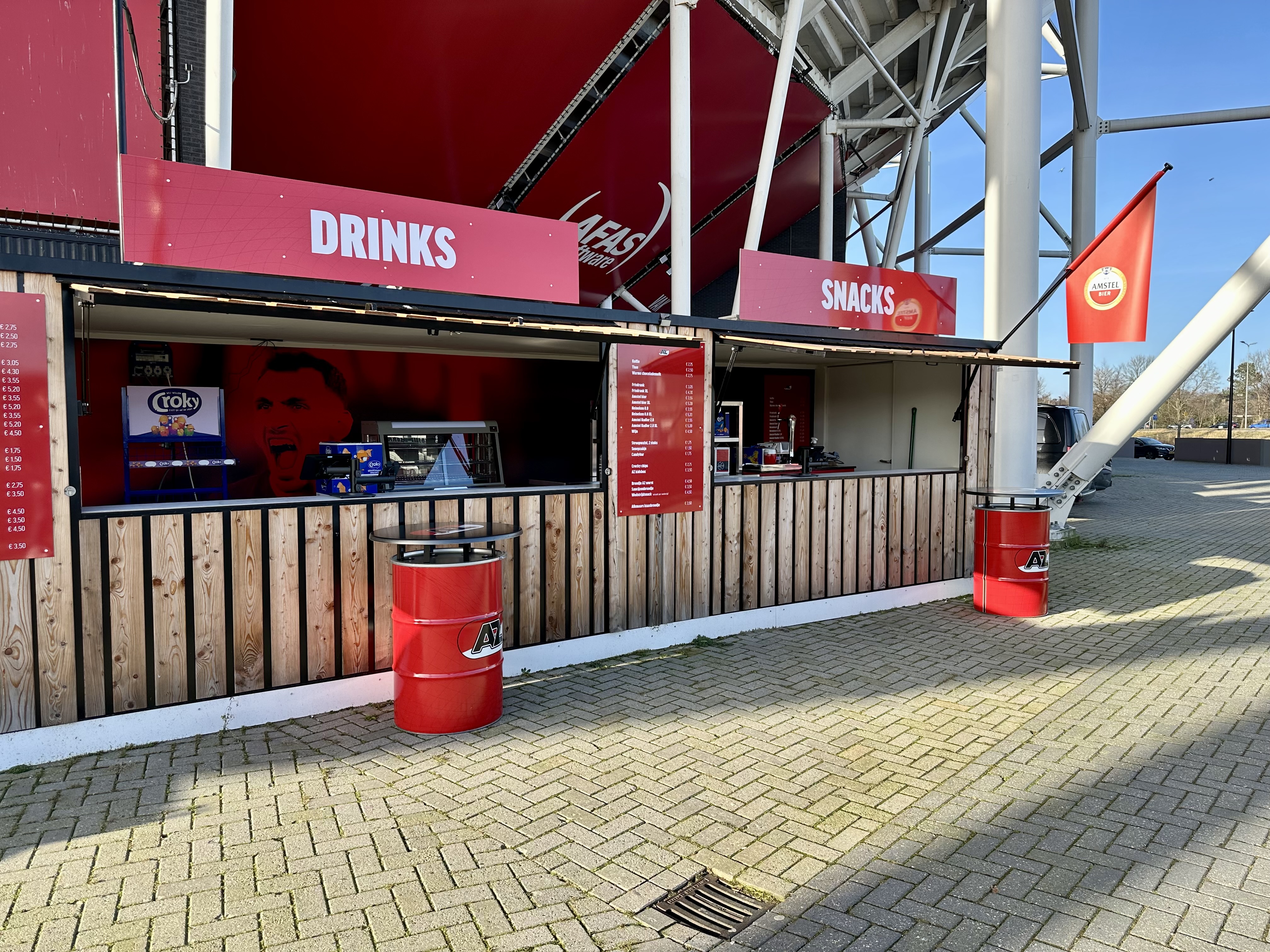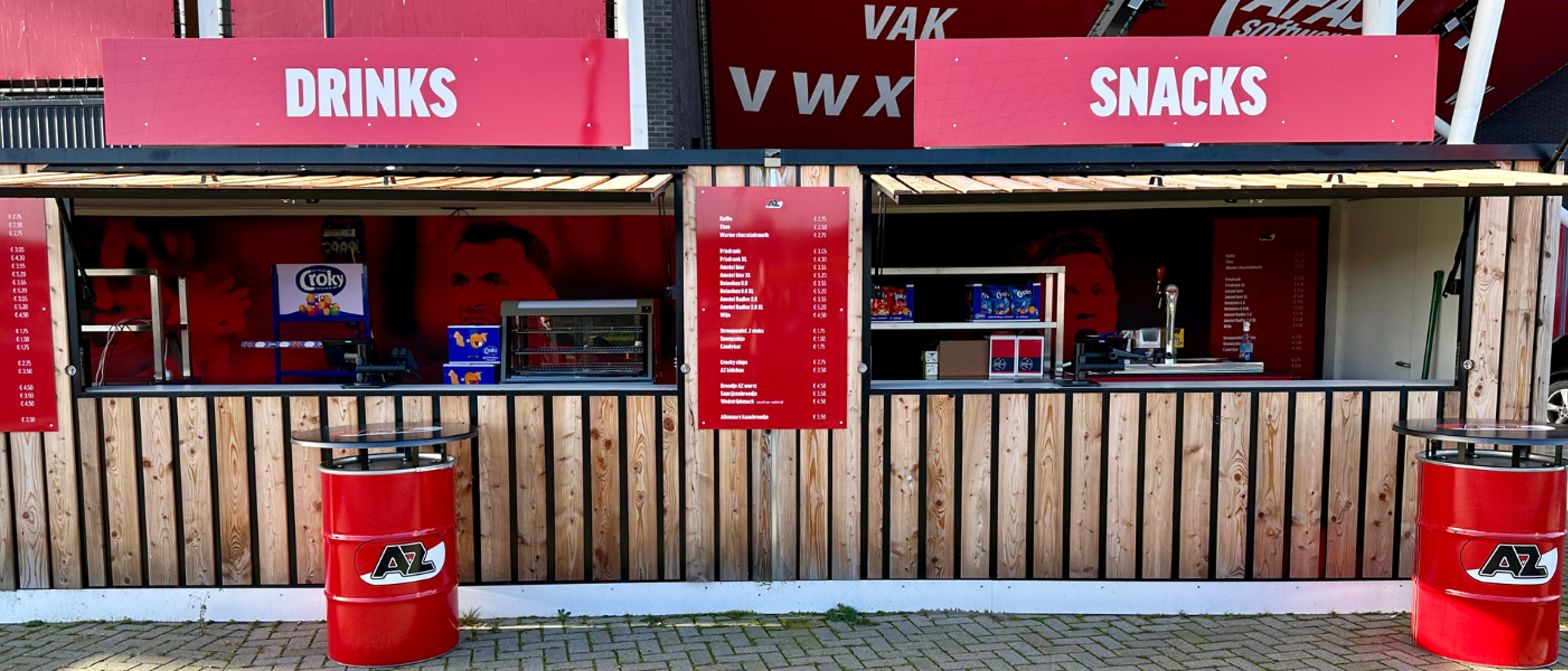 De horecapunten aan de buitenkant van het stadion zijn inmiddels voorzien van een echte AZ-uitstraling, hebben ledverlichting gekregen en er staan speciaal ontworpen AZ-statafels waar je voor de wedstrijd kan genieten van je drankje met andere supporters. Met duidelijke signing en een uitstraling die past bij de club, zijn deze horecapunten klaar voor de toekomst.