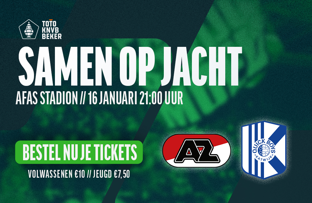 ALKMAAR- Laten we samen op jacht gaan naar succes in de beker! Op dinsdag 16 januari is Quick Boys in eigen huis de tegenstander in de achtste finales van de TOTO KNVB Beker. In de jacht naar bekersucces kan AZ alle steun gebruiken. Scoor nu jouw tickets voor dit affiche!