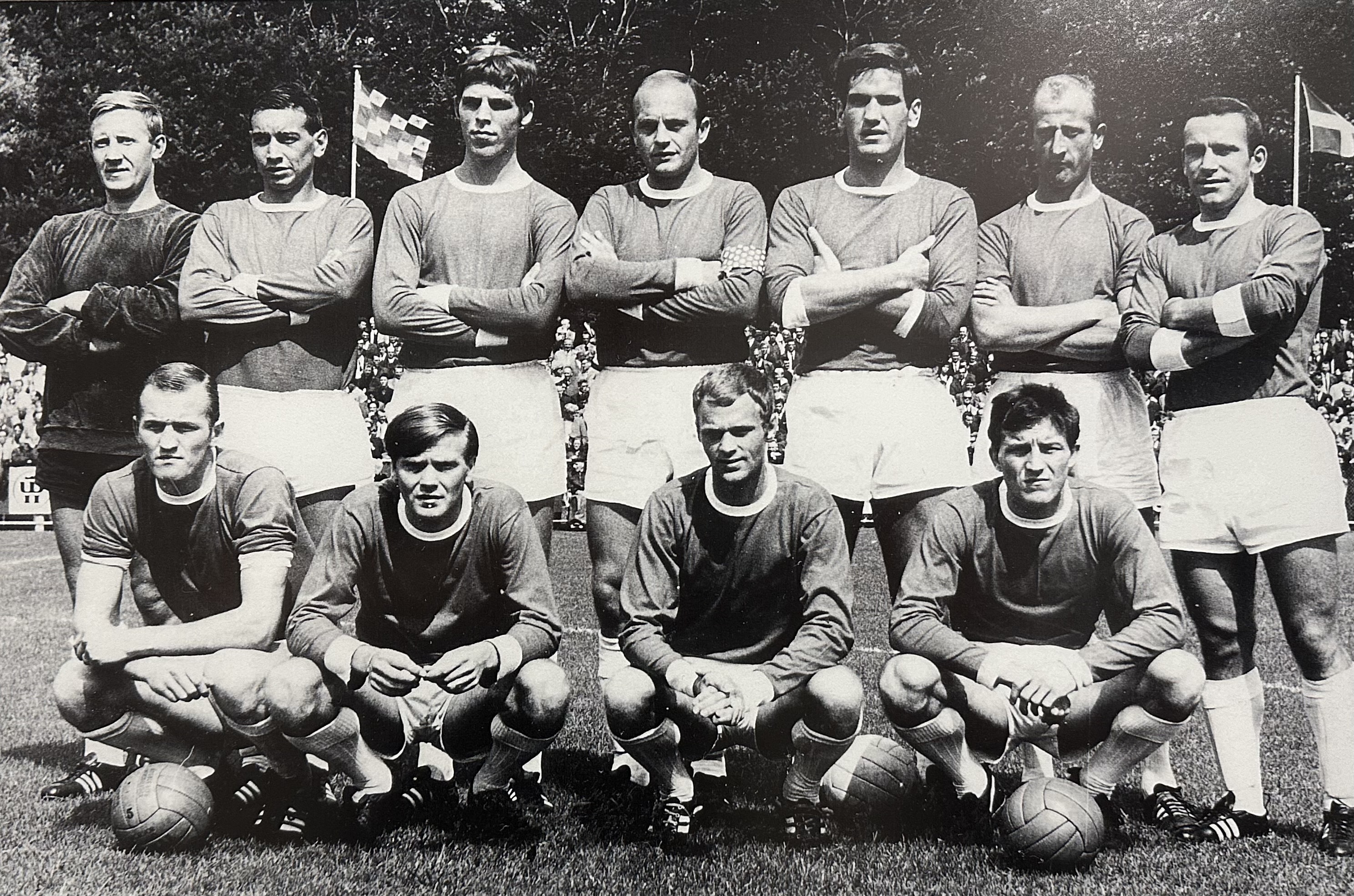 Teamfoto AZ '67 uit het seizoen 1967-1968. Arie Hersche staat uiterst rechts op de achterste rij.
