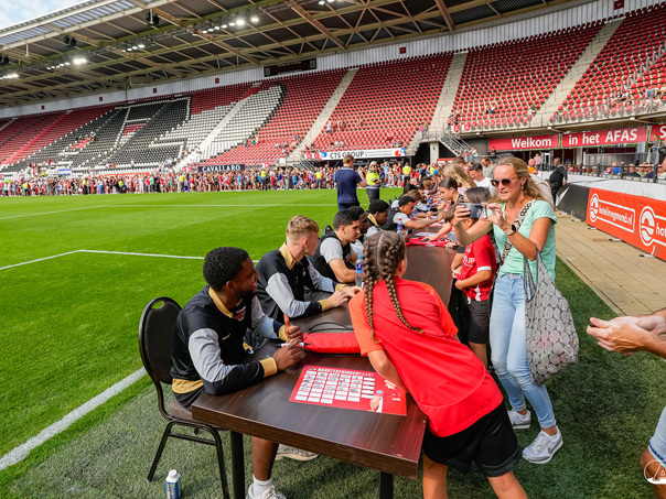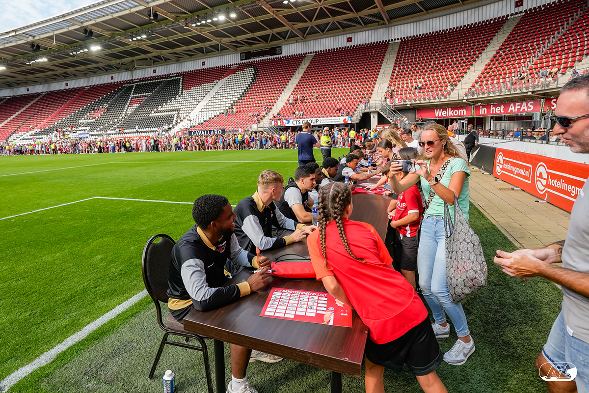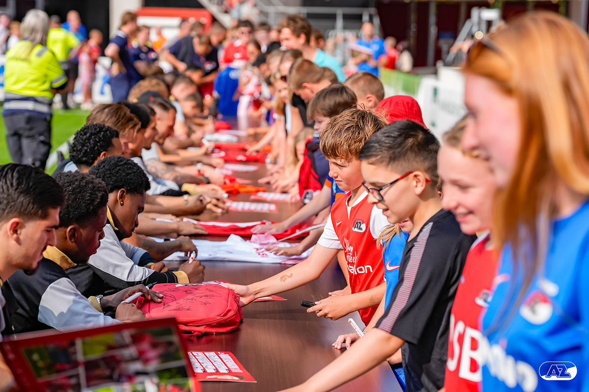 ALKMAAR- Volop entertainment op het Balans Fanplein, gevolgd door een vermakelijke oefenwedstrijd tegen Atalanta Bergamo en als kers op de taart een handtekening scoren bij de spelers van AZ. De Fandag in beeld. (Foto's: Ed van de Pol)