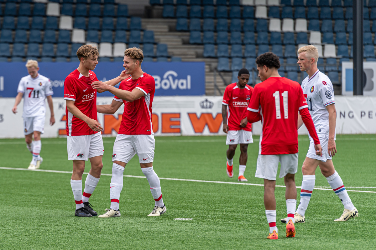 Opstelling AZ: Tristan Kuijsten (60. Kiyani Zeggen); Elijah Dijkstra (49. Jurre van Aken), Jorn Berkhout (75. Joeri Oud), Rayan Atikallah (4. Wilmer Olofsson), Jermiah Esajas (75. Sem Dekkers); Job Kalisvaart (75. Ilias Splinter), Kevin Toppenberg (75. Rio Robbemond), Kasper Boogaard (75. Lev Lenssen); Ro-Zangelo Daal (49. Adam Ait Ali Oulhaj), Sem van Duijn (49. Yoël van den Ban), Jayen Gerold (75. Anthony Smits).