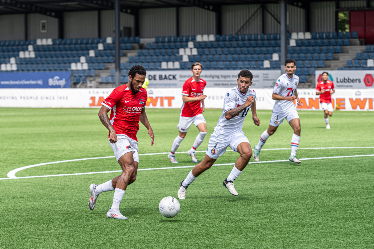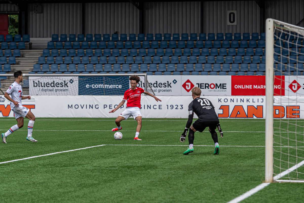 IJMUIDEN- Jong AZ boekte woensdagmiddag een ruime oefenzege op SC Telstar. In het 711 Stadion werd in totaal acht keer gescoord en eindigde het vriendschappelijke duel na honderdtwintig minuten spelen in 1-7 voor de bezoekers uit Alkmaar. Sem van Duijn, Jayen Gerold (twee keer), Yoël van den Ban, Anthony Smits en Adam Ait Ali Oulhaj (twee keer) waren trefzeker namens de beloften.