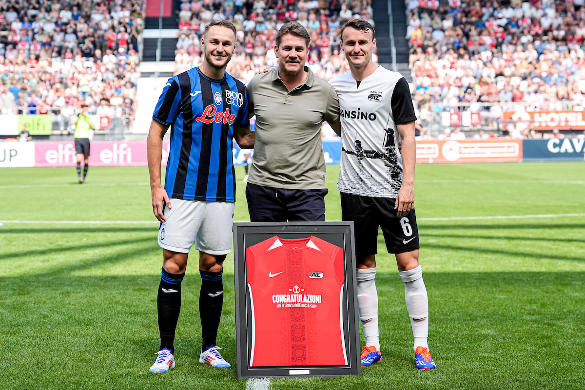 Vlak voor de wedstrijd kwamen de gebroeders Koopmeiners elkaar ook nog even tegen. Namens AZ werd een shirt overhandigd met speciale opdruk om Atalanta te feliciteren met de Europa League-winst van afgelopen seizoen.