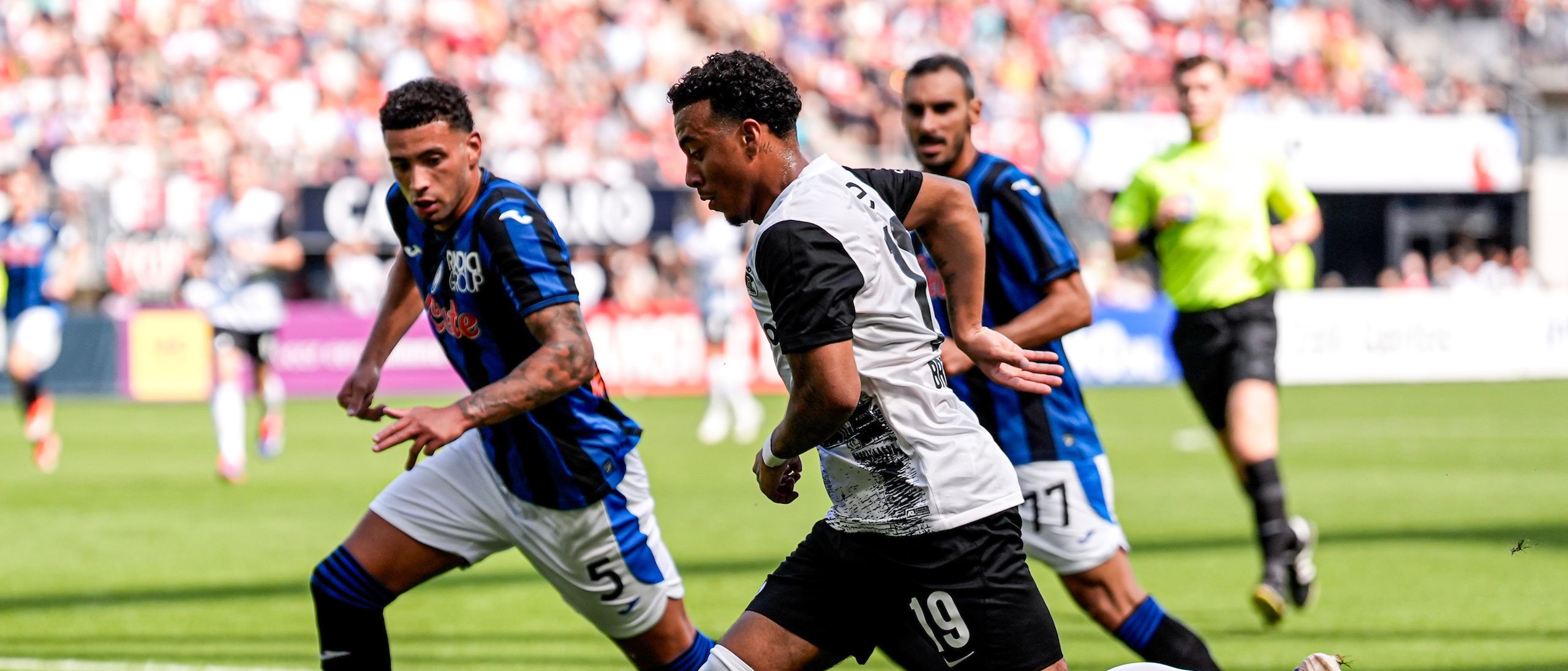 ALKMAAR- AZ heeft in het eigen AFAS Stadion gelijkgespeeld tegen Atalanta Bergamo. Op de AZ Fandag eindigde het duel met de Europa League-winnaar in 2-2. Troy Parrott en Lequincio Zeefuik waren trefzeker namens de Alkmaarders.