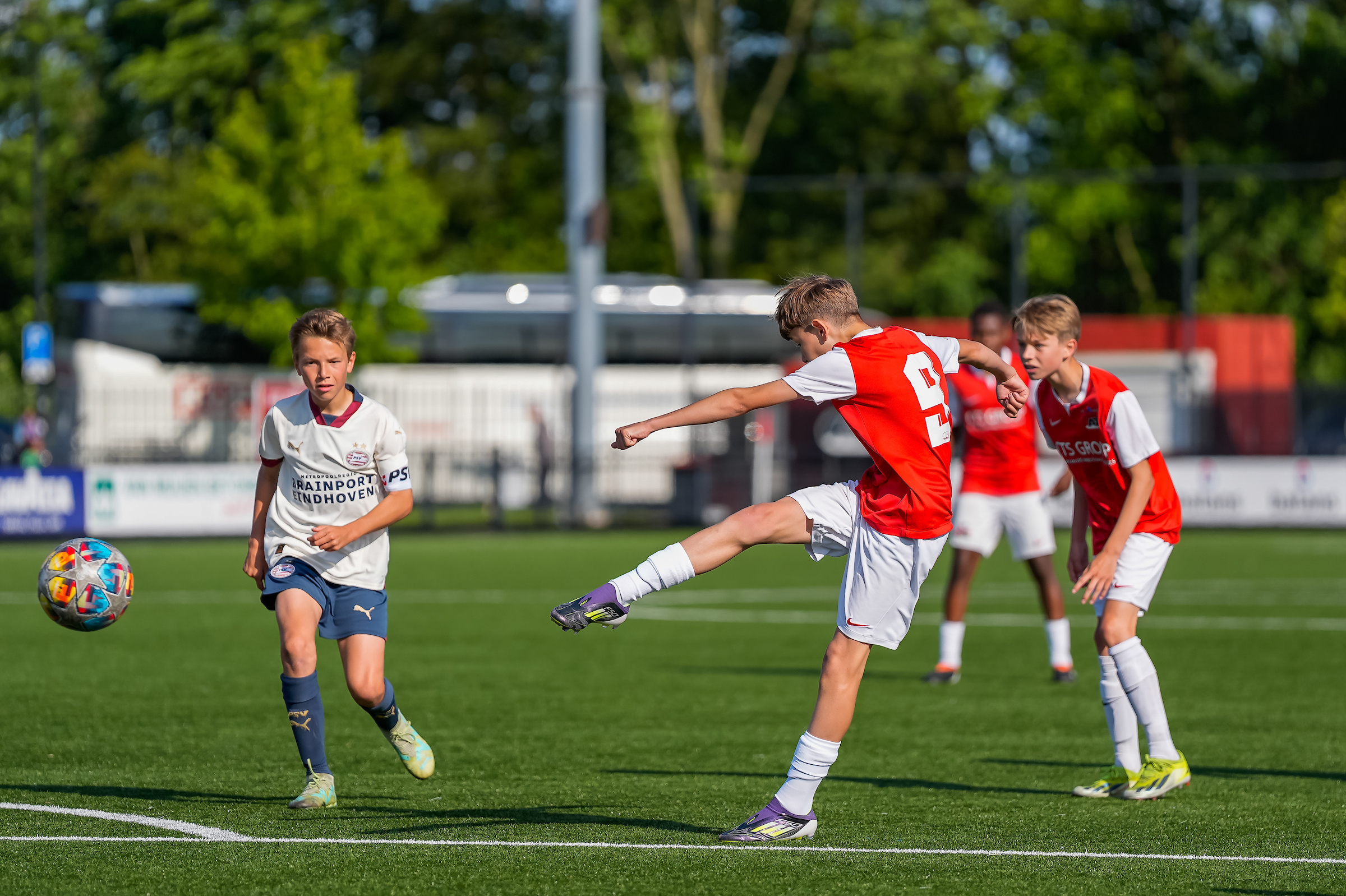 In de slotfase van de wedstrijd leek Ait Errami ook de 3-1 te maken, maar de inzet van de spits rolde langs de verkeerde kant van de paal. Hiermee bleef een derde Alkmaarse treffer uit, en ook PSV zou niet meer tot scoren komen. Zo eindigde het duel in 2-1 en mag AZ Onder 13 zich officieel kampioen van Nederland noemen!