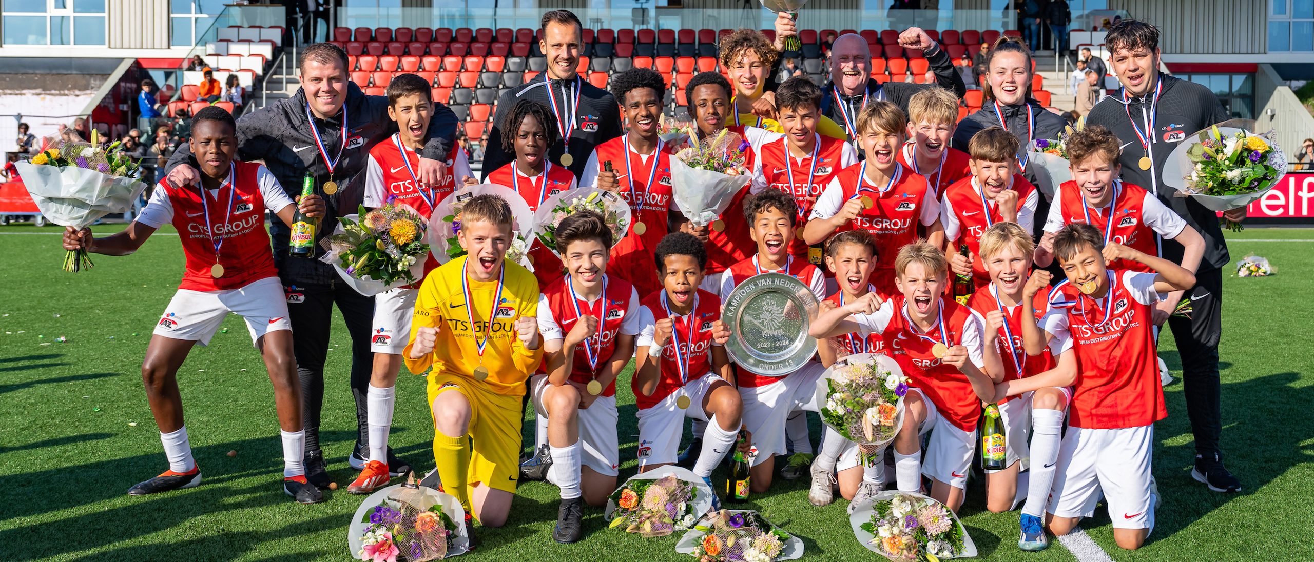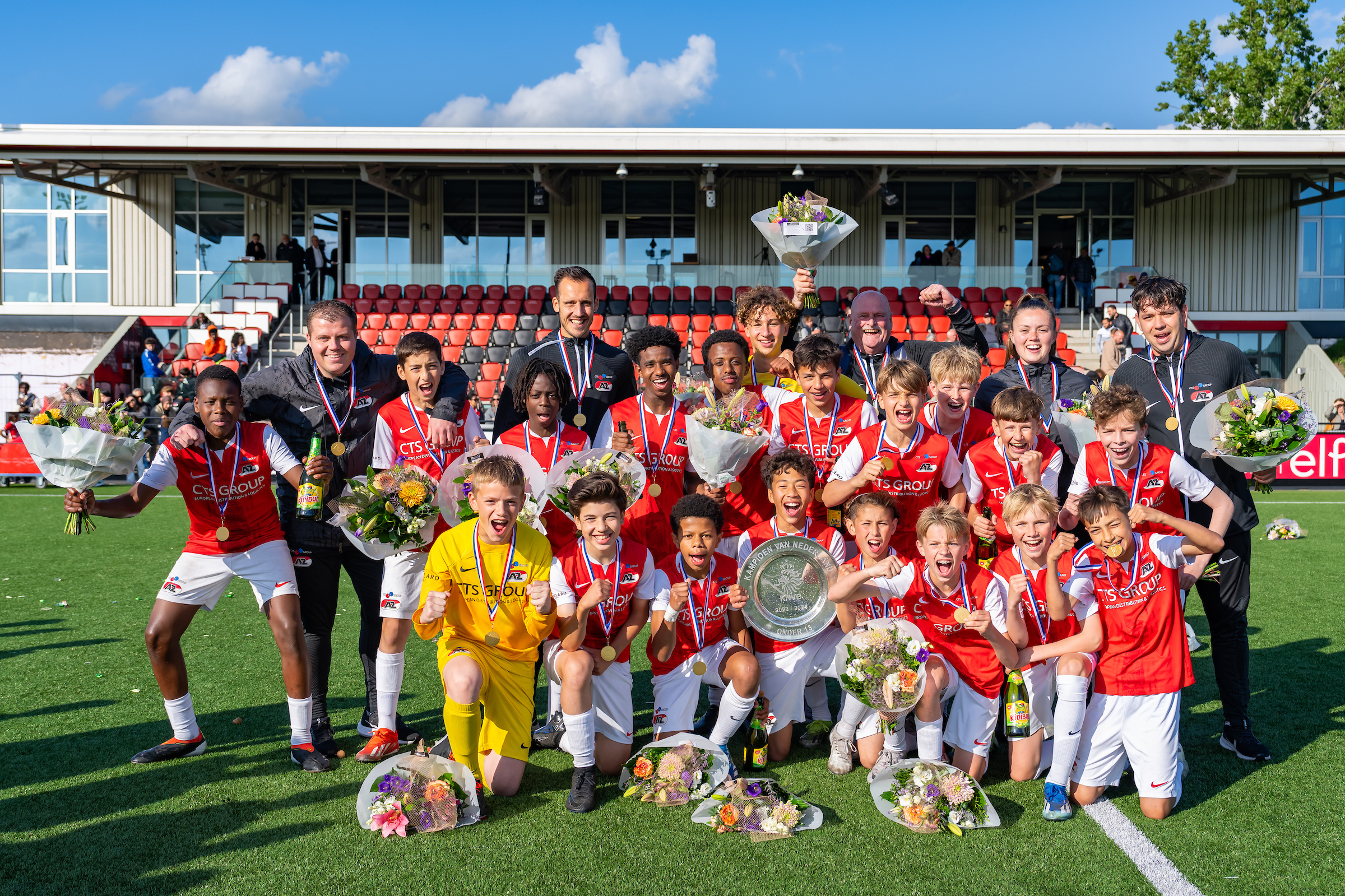 ZAANSTAD- AZ Onder 13 heeft zich woensdagavond gekroond tot landskampioen. Op het AFAS Trainingscomplex behaalde het elftal van trainer Dico Blei een 2-1 zege op tegenstander PSV en mocht het na iets meer dan zeventig minuten spelen de schaal omhoog houden.