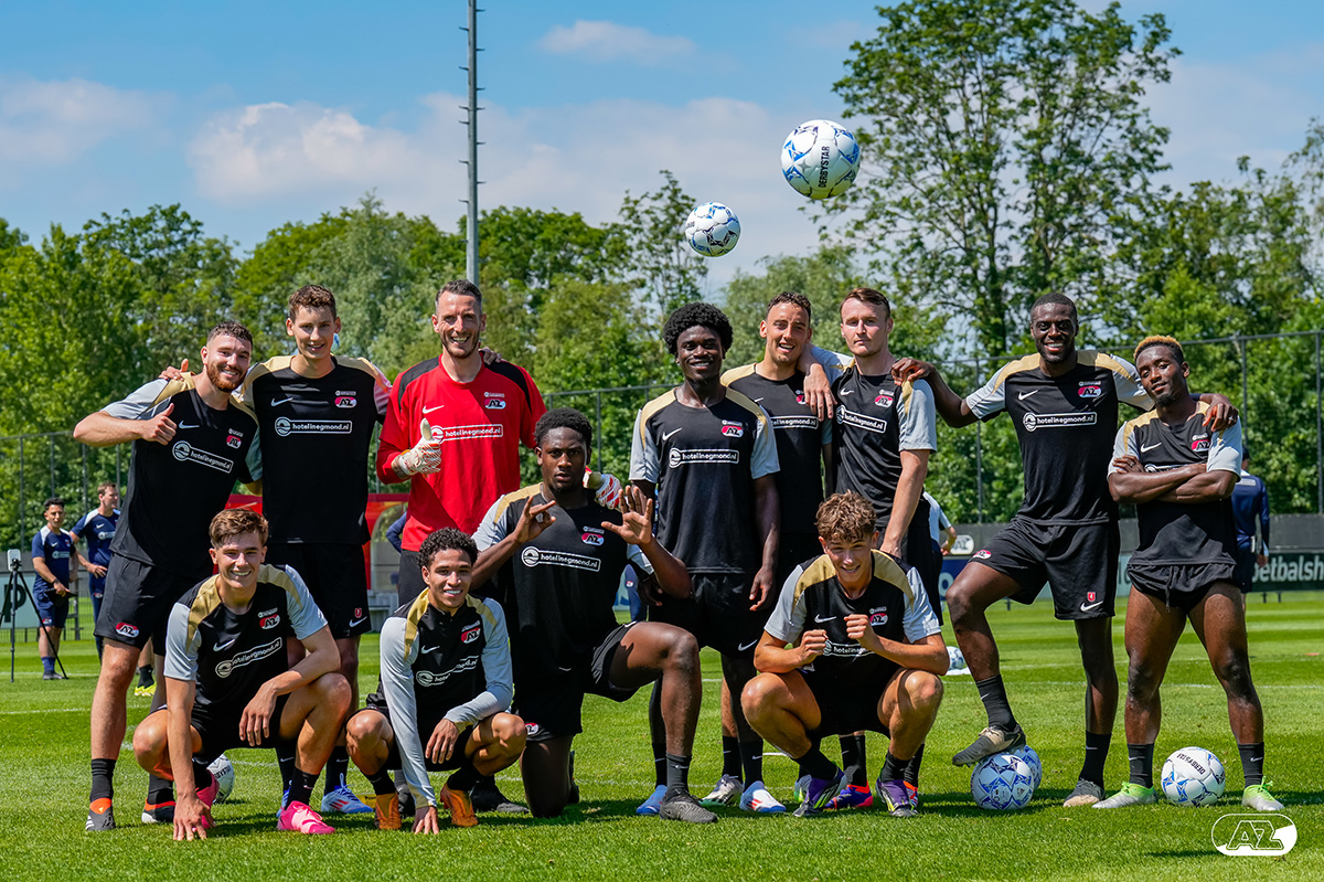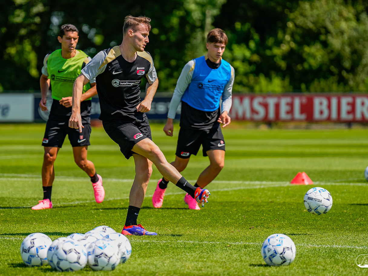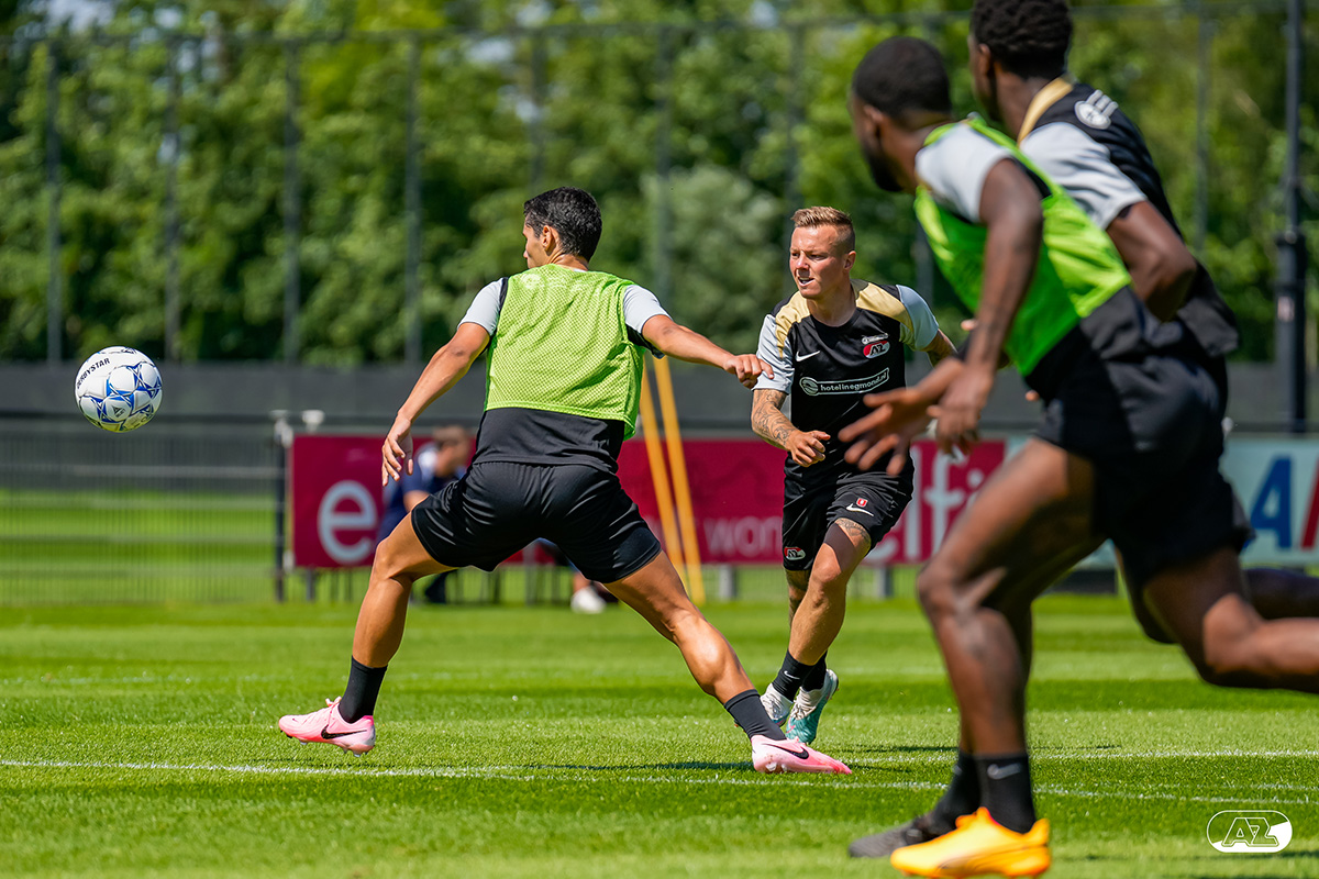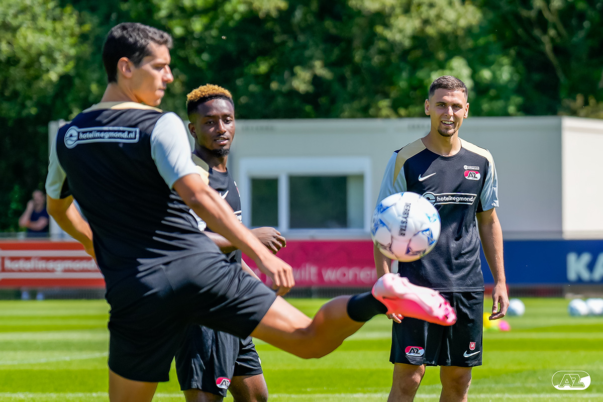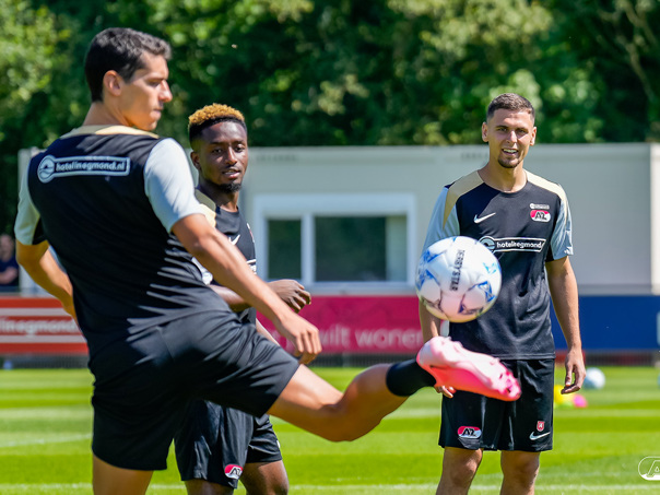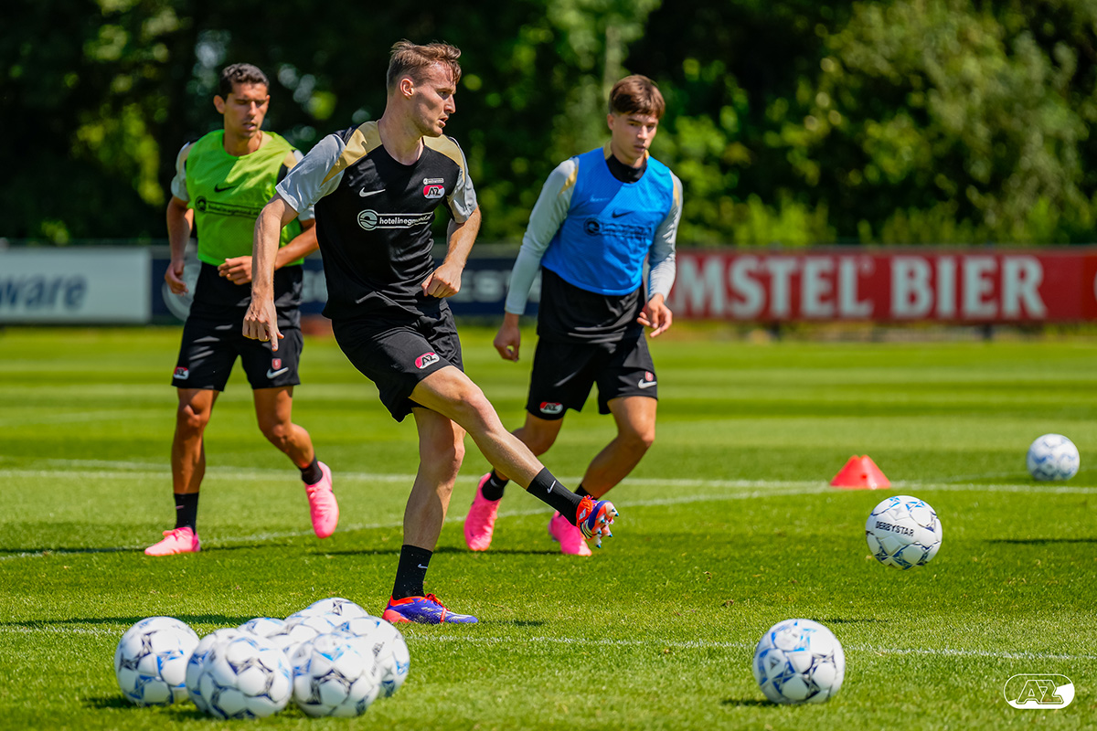 ZAANSTAD- AZ heeft maandag de eerste training van het nieuwe seizoen afgewerkt. Op een zonnig AFAS Trainingscomplex keerden de mannen van trainer Maarten Martens en zijn staf terug van vakantie en gingen zij van start met de voorbereiding. De training in beeld. (Foto's: Ed van de Pol)