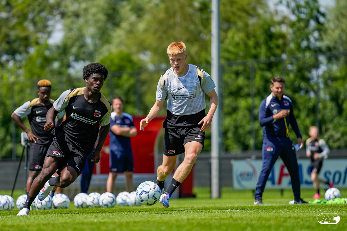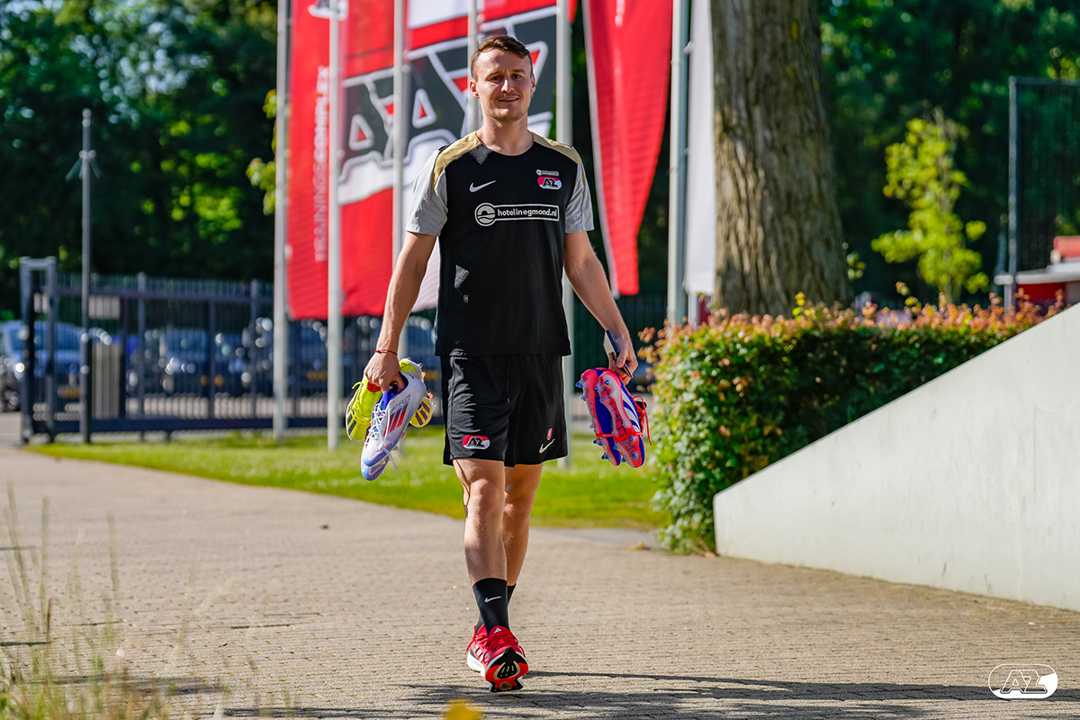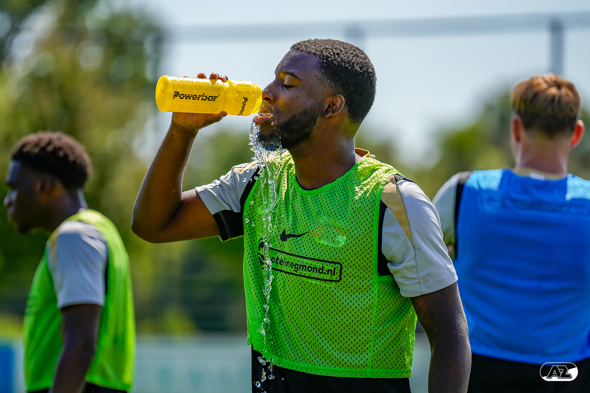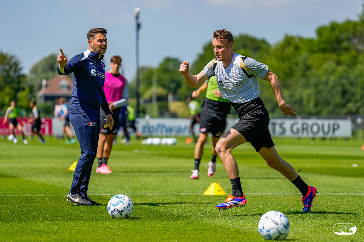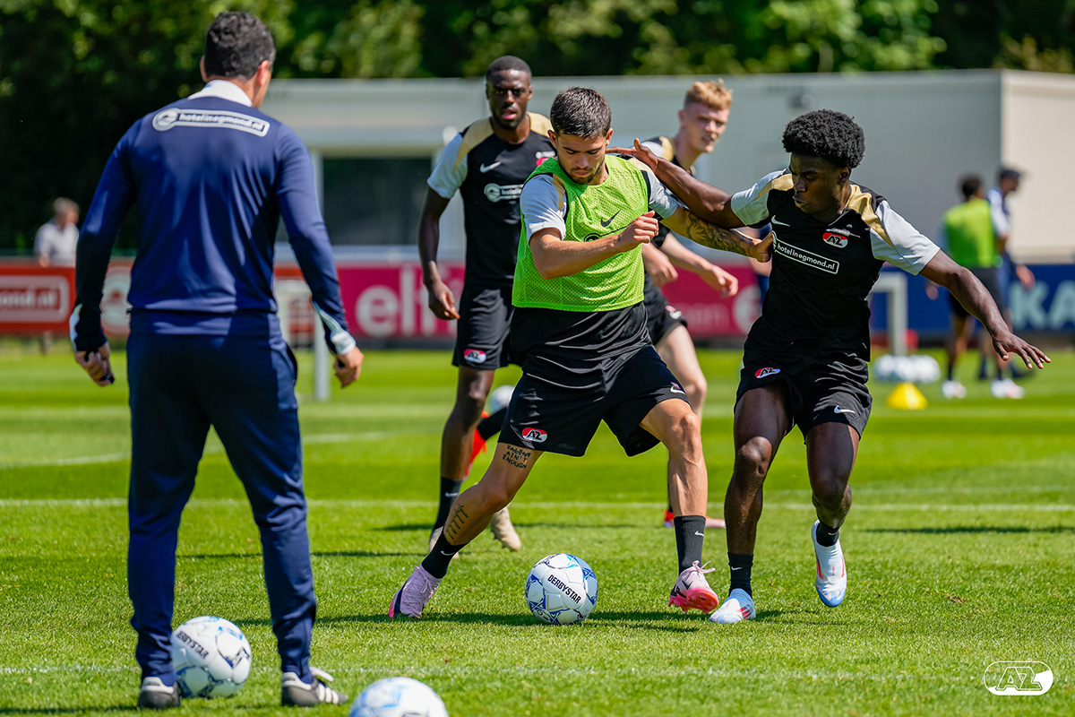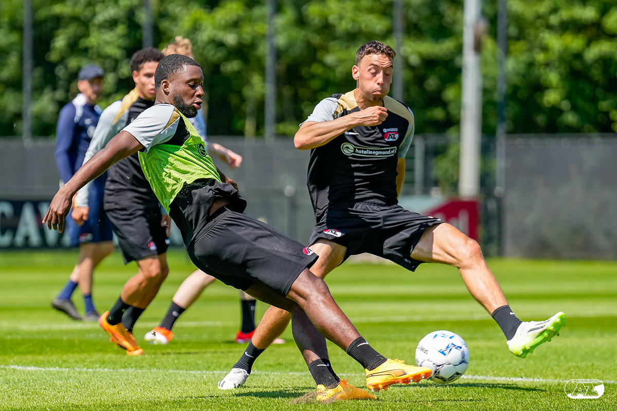 ZAANSTAD- AZ heeft maandag de eerste training van het nieuwe seizoen afgewerkt. Op een zonnig AFAS Trainingscomplex keerden de mannen van trainer Maarten Martens en zijn staf terug van vakantie en gingen zij van start met de voorbereiding. De training in beeld. (Foto's: Ed van de Pol)