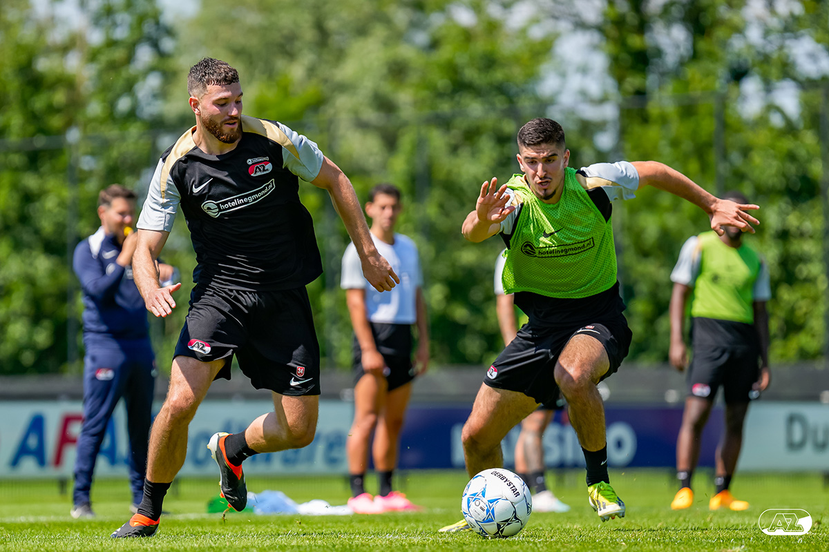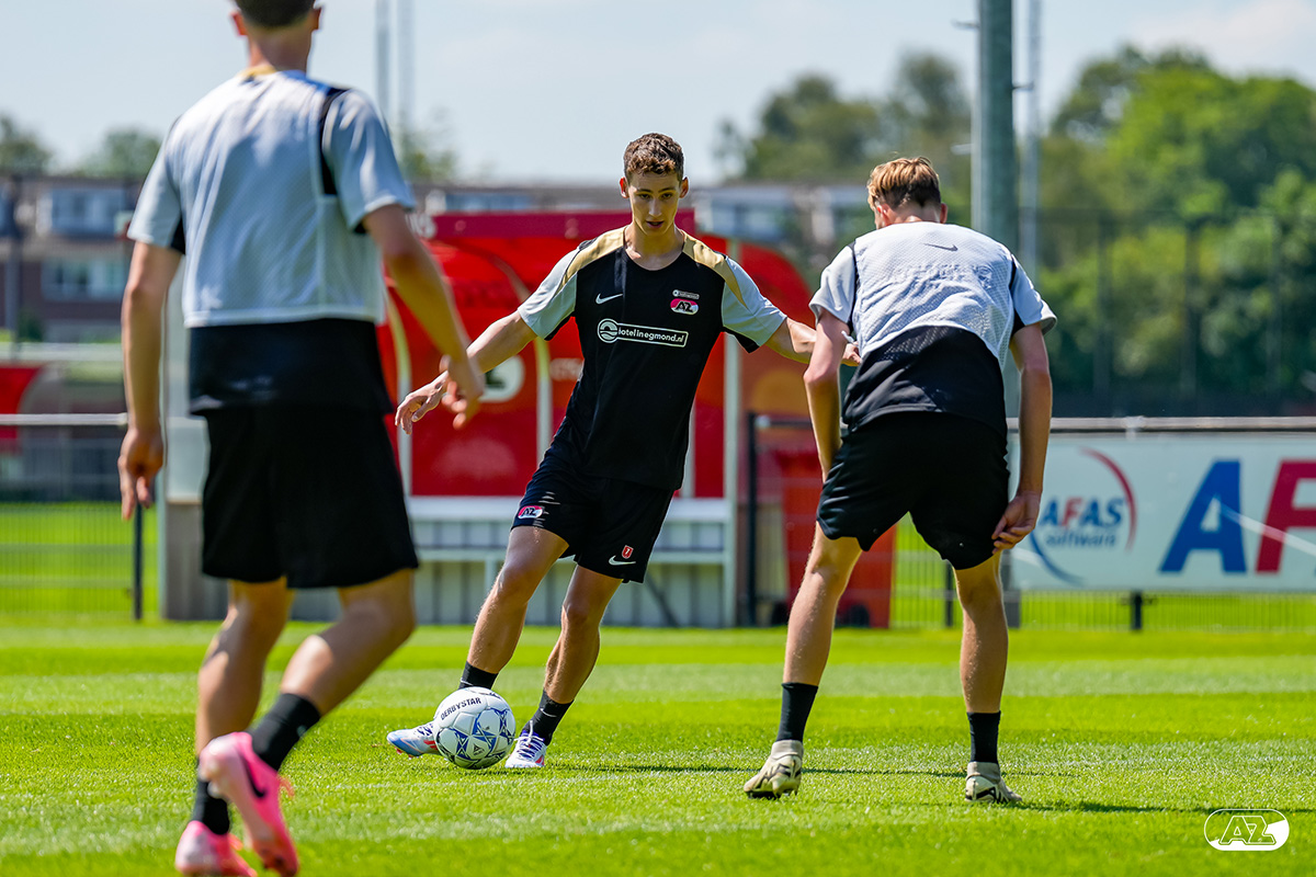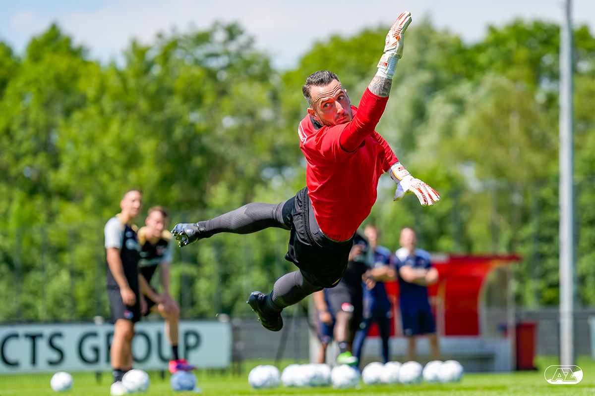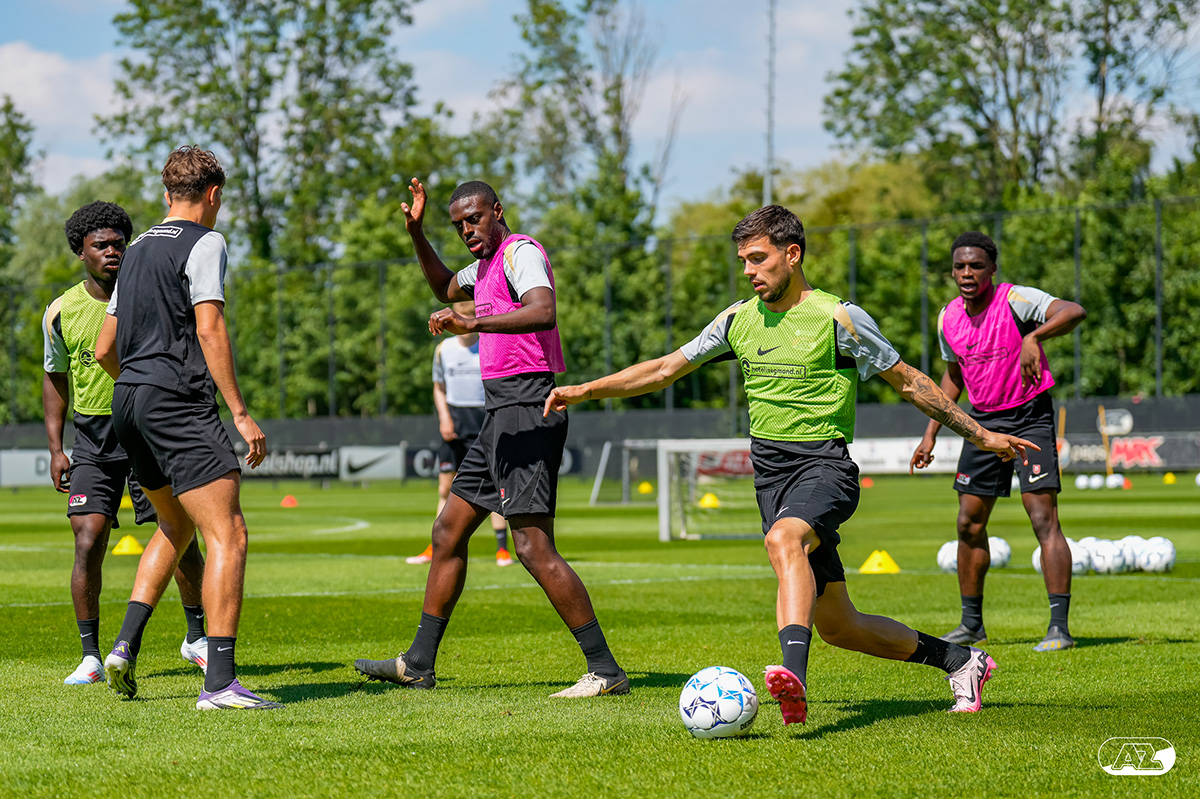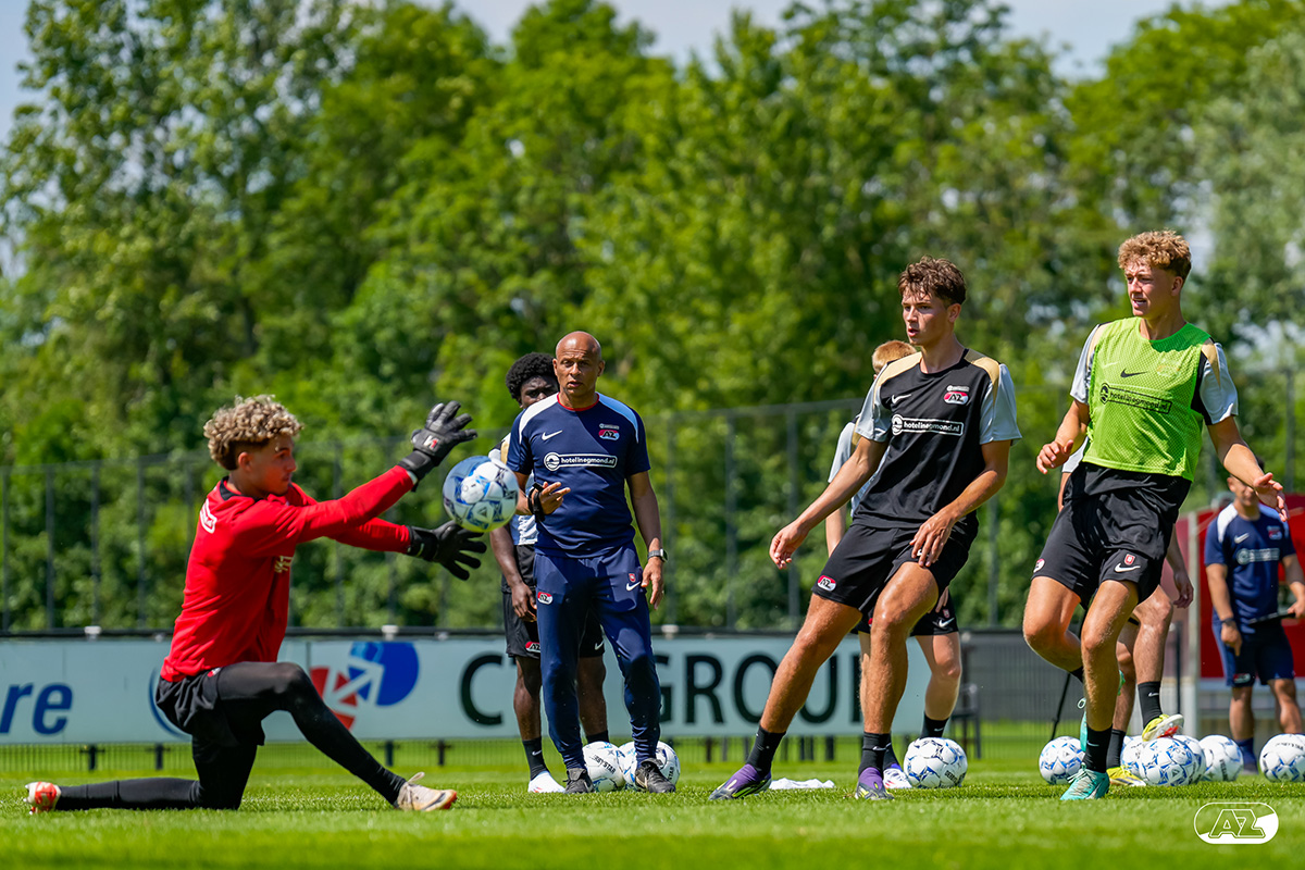 ZAANSTAD- AZ heeft maandag de eerste training van het nieuwe seizoen afgewerkt. Op een zonnig AFAS Trainingscomplex keerden de mannen van trainer Maarten Martens en zijn staf terug van vakantie en gingen zij van start met de voorbereiding. De training in beeld. (Foto's: Ed van de Pol)