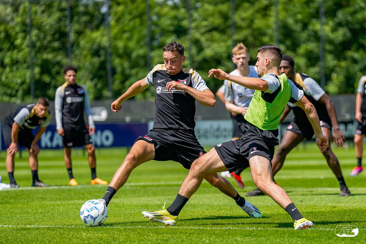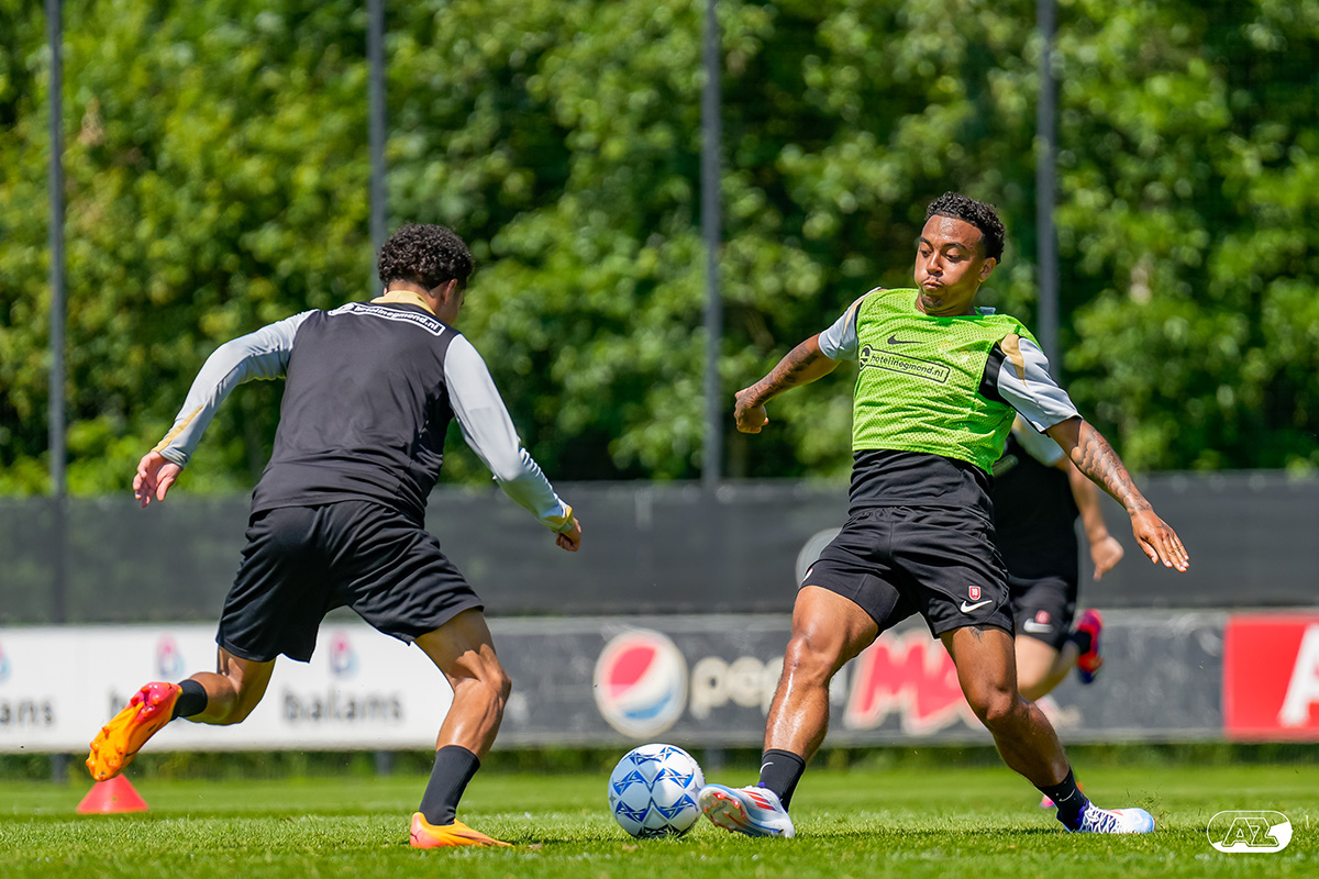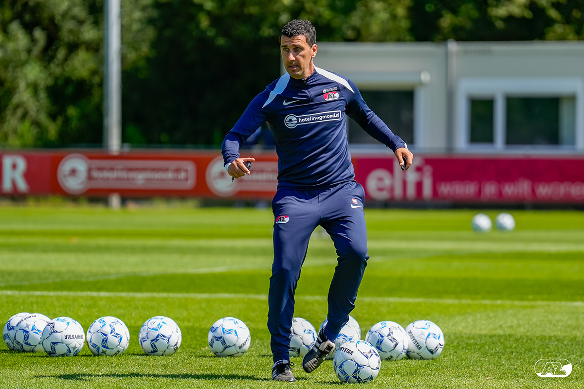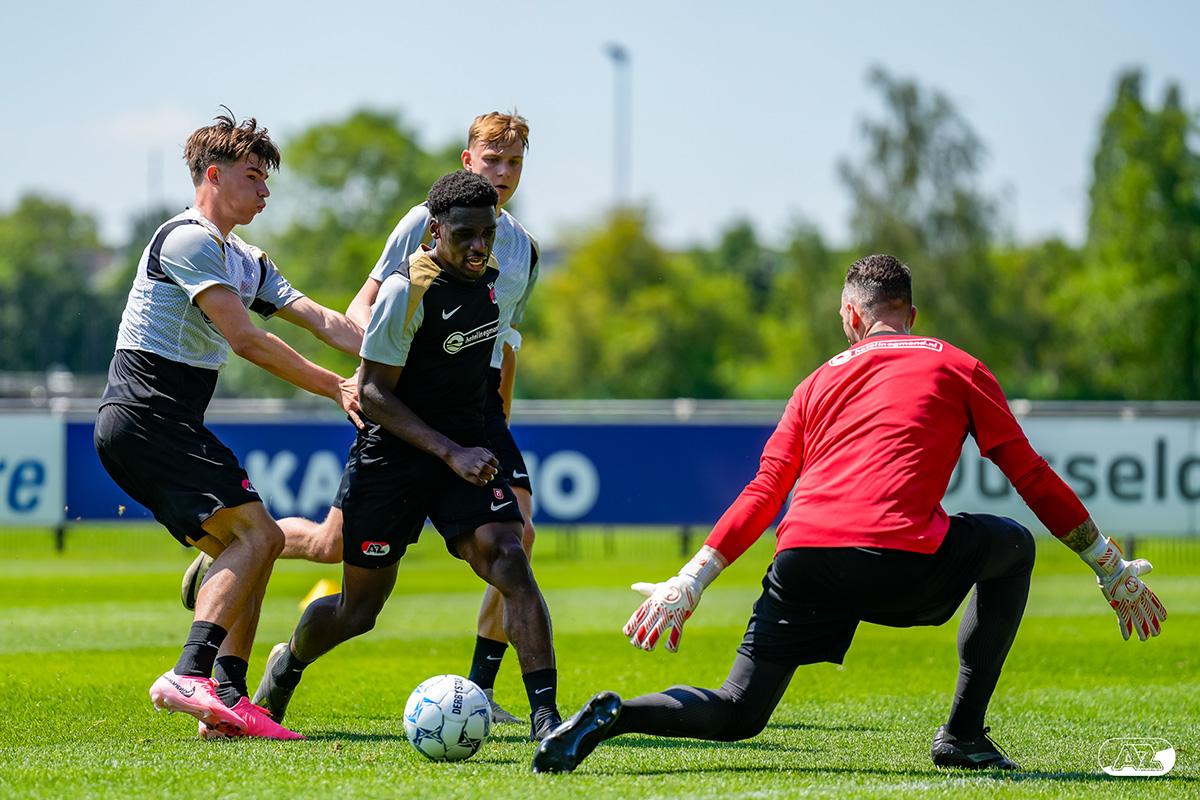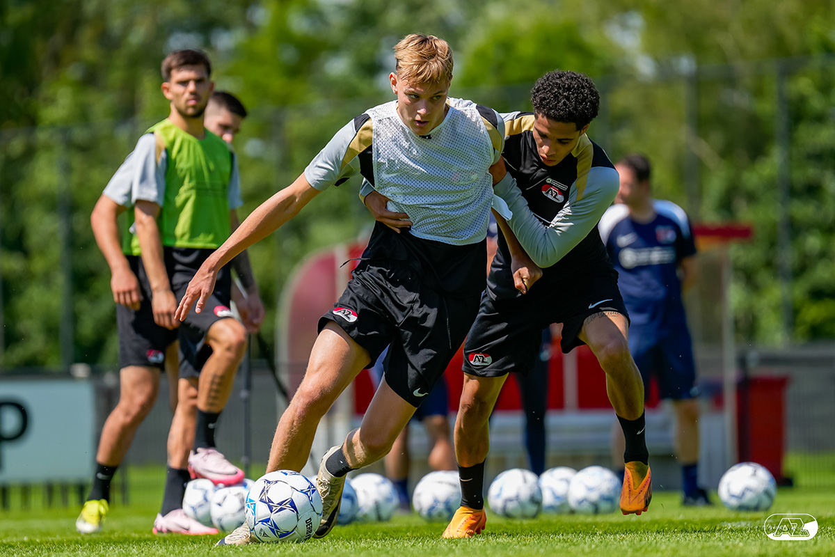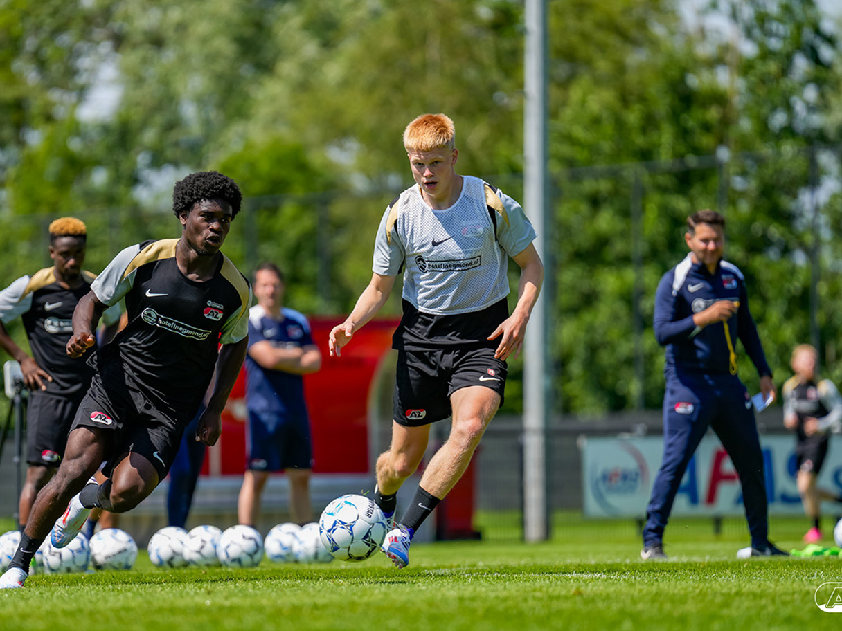 ZAANSTAD- AZ heeft maandag de eerste training van het nieuwe seizoen afgewerkt. Op een zonnig AFAS Trainingscomplex keerden de mannen van trainer Maarten Martens en zijn staf terug van vakantie en gingen zij van start met de voorbereiding. De training in beeld. (Foto's: Ed van de Pol)