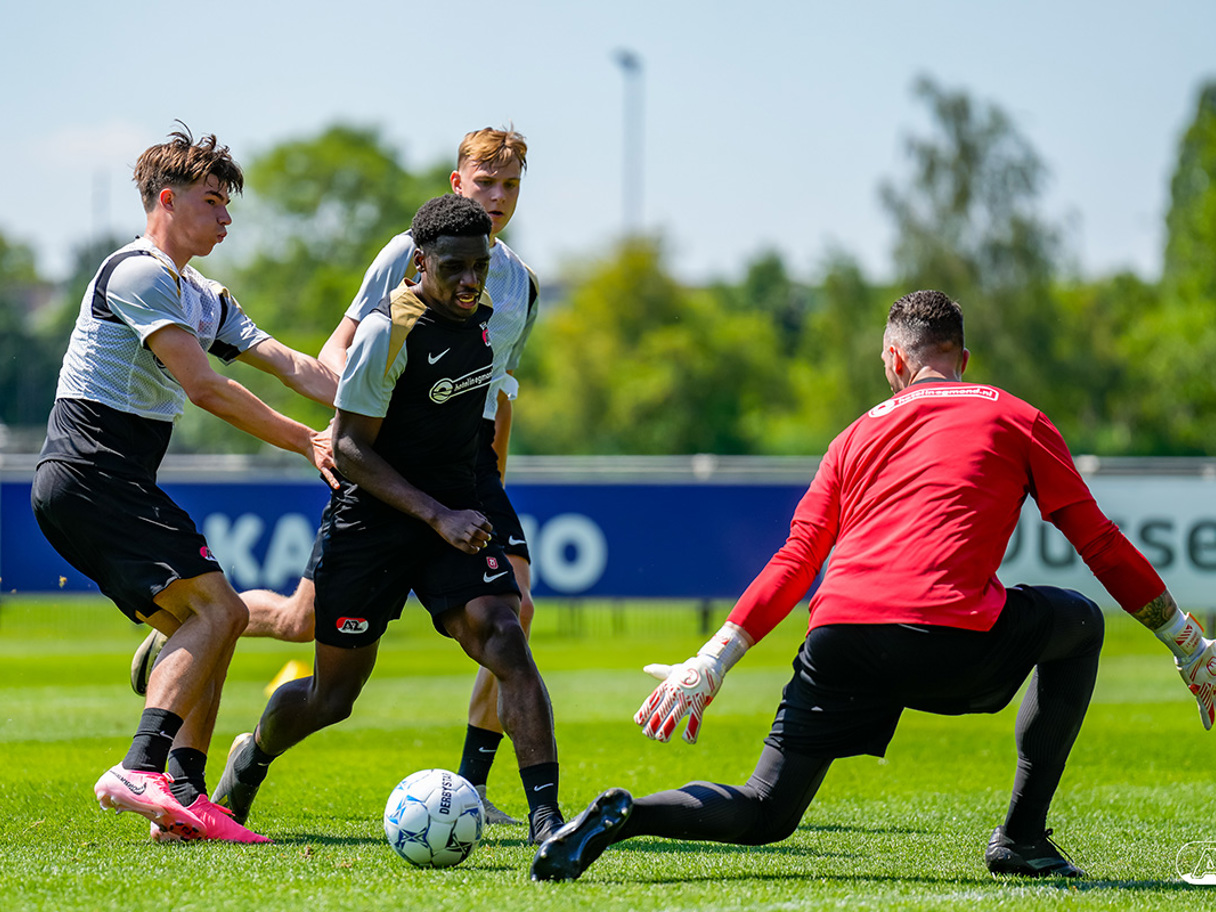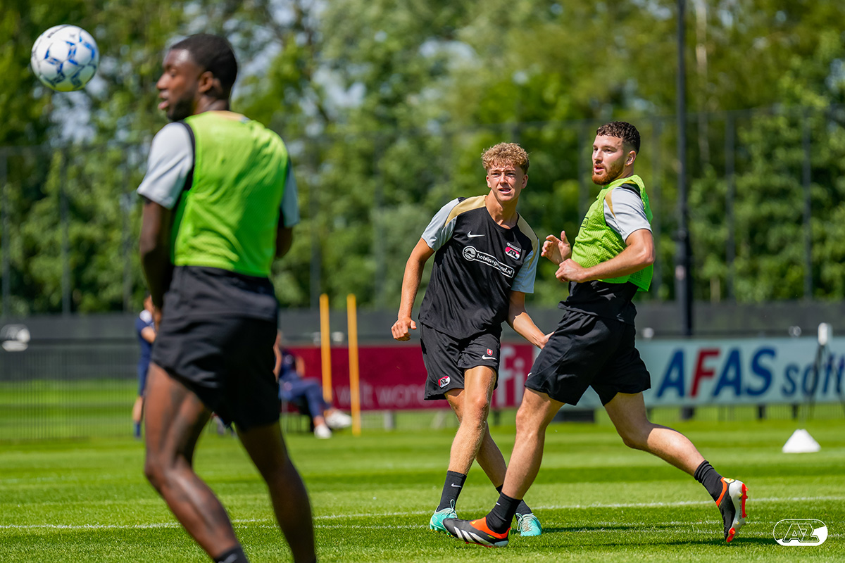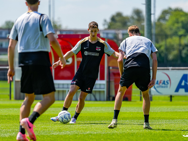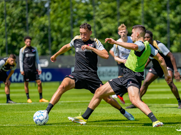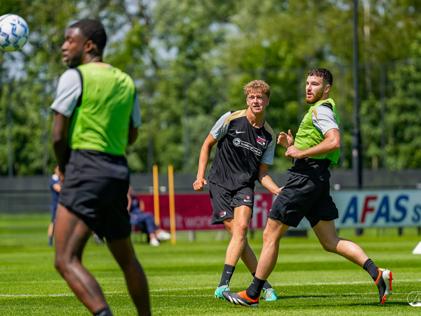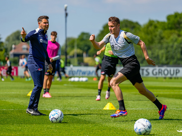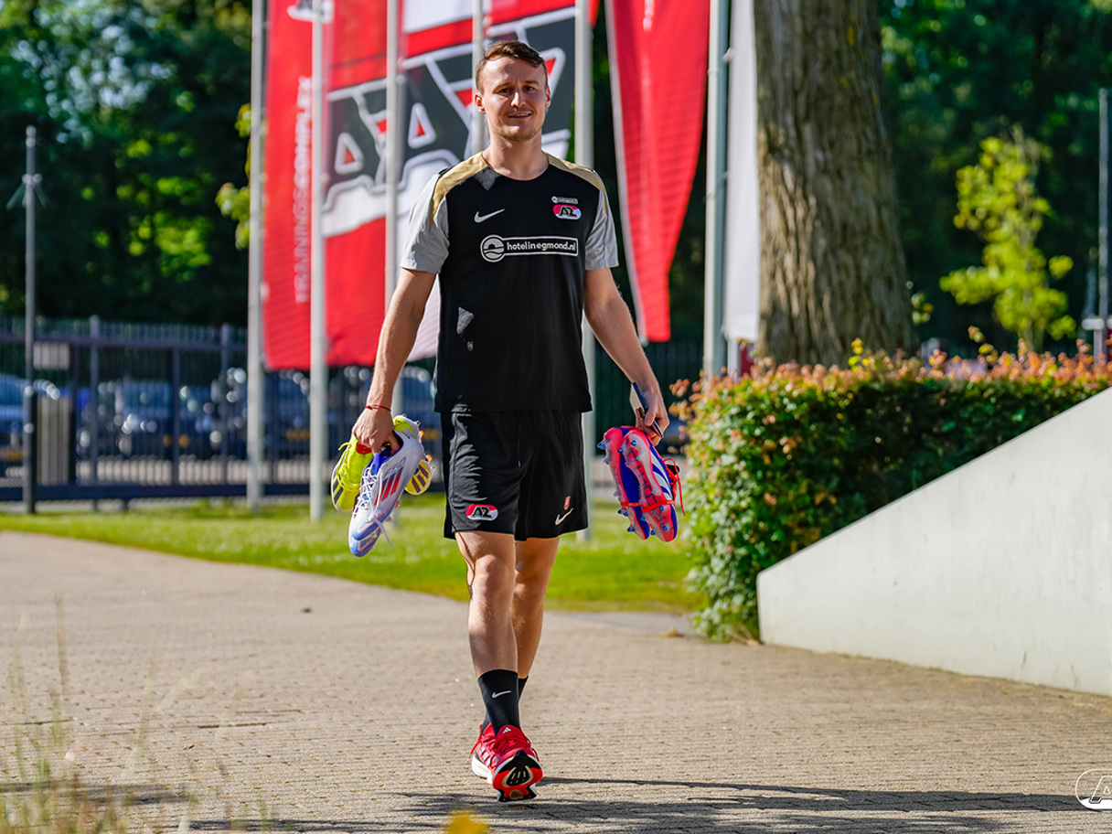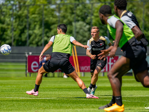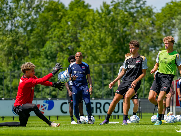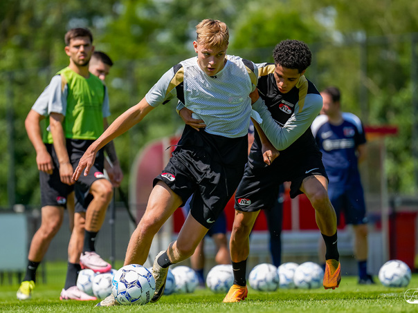 ZAANSTAD- AZ heeft maandag de eerste training van het nieuwe seizoen afgewerkt. Op een zonnig AFAS Trainingscomplex keerden de mannen van trainer Maarten Martens en zijn staf terug van vakantie en gingen zij van start met de voorbereiding. De training in beeld. (Foto's: Ed van de Pol)