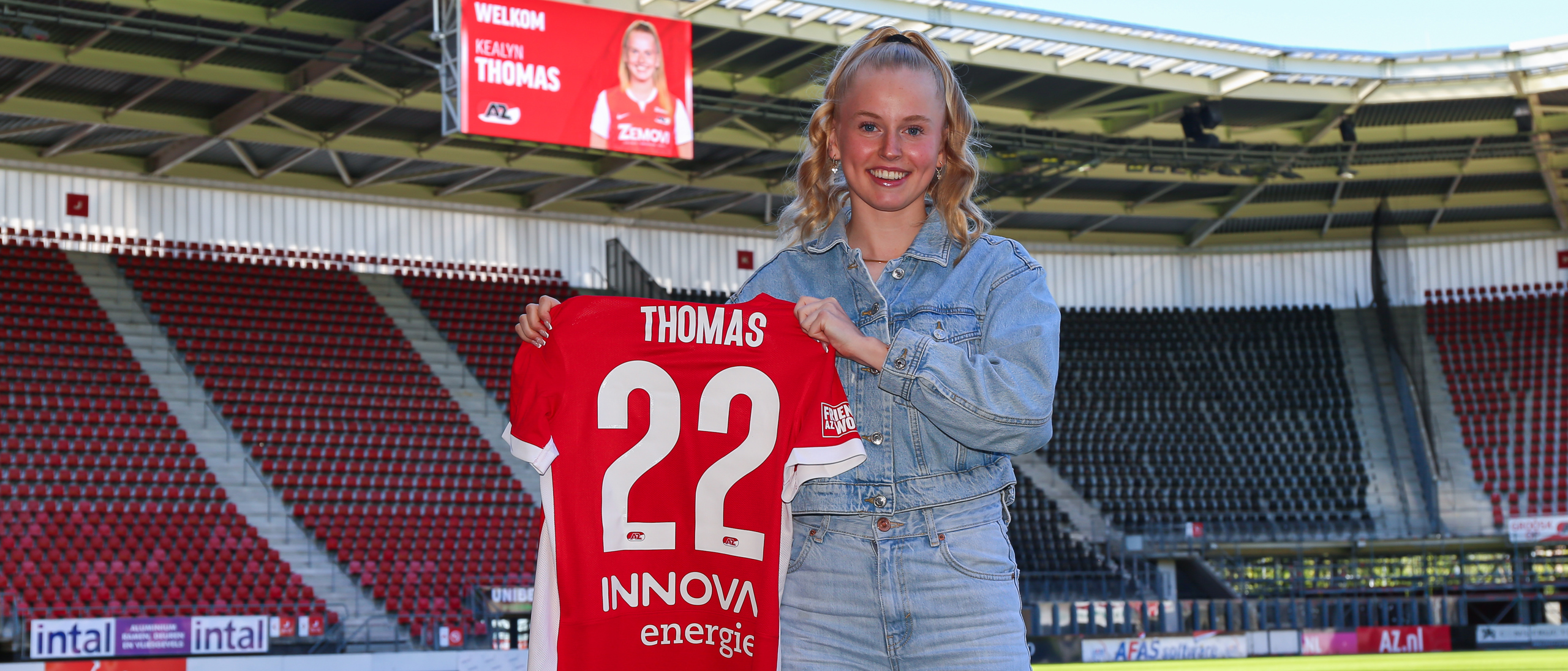 ALKMAAR- Kealyn Thomas maakt een transfer naar de AZ Vrouwen. In het AFAS Stadion zette de negentienjarige middenveldster maandagmiddag haar handtekening onder een verbintenis tot medio 2026. Thomas is deze zomer al de derde aanwinst voor de AZ Vrouwen, nadat eerder Fieke Kroese en Jasmijn van Uden werden vastgelegd.