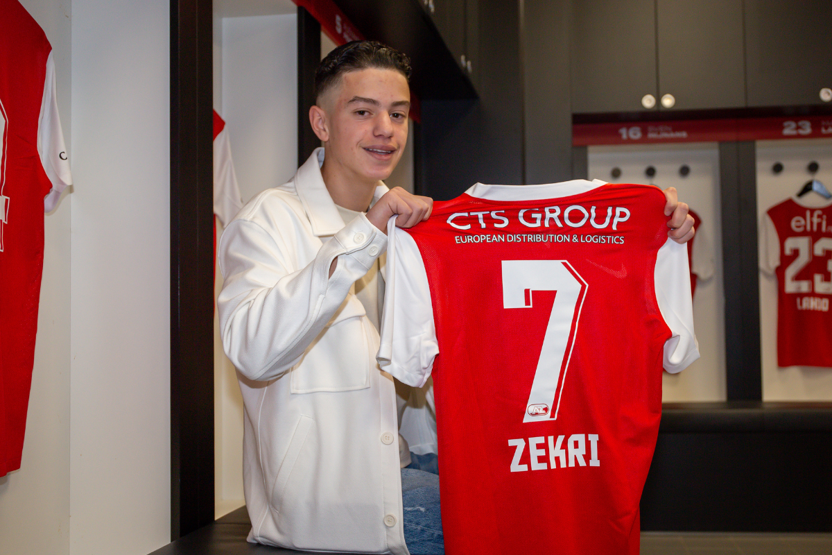 ZAANSTAD- AZ heeft donderdag de talentvolle Rayan Zekri vastgelegd. De vijftienjarige jeugdspeler ondertekende in het AFAS Stadion een verbintenis tot medio 2027. Voor de aanvaller van AZ Onder 16 is het zijn eerste contract.