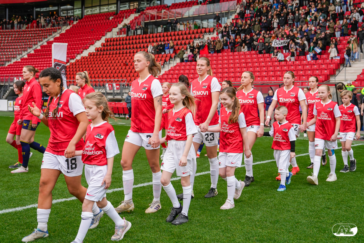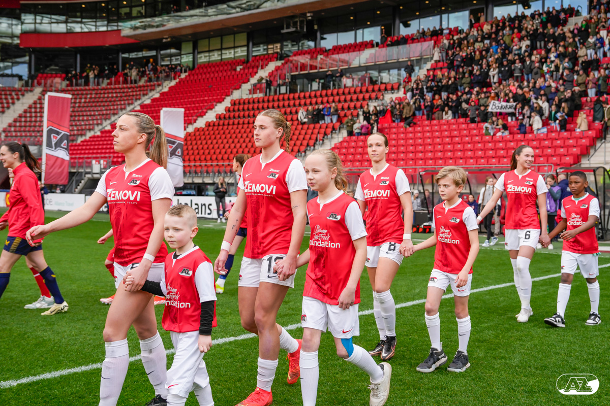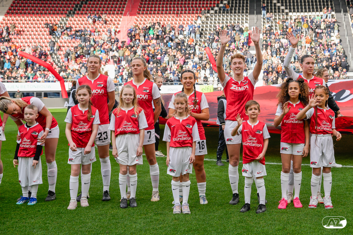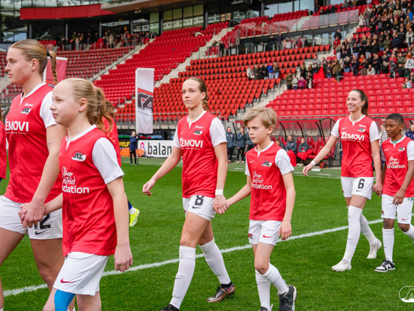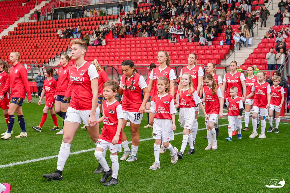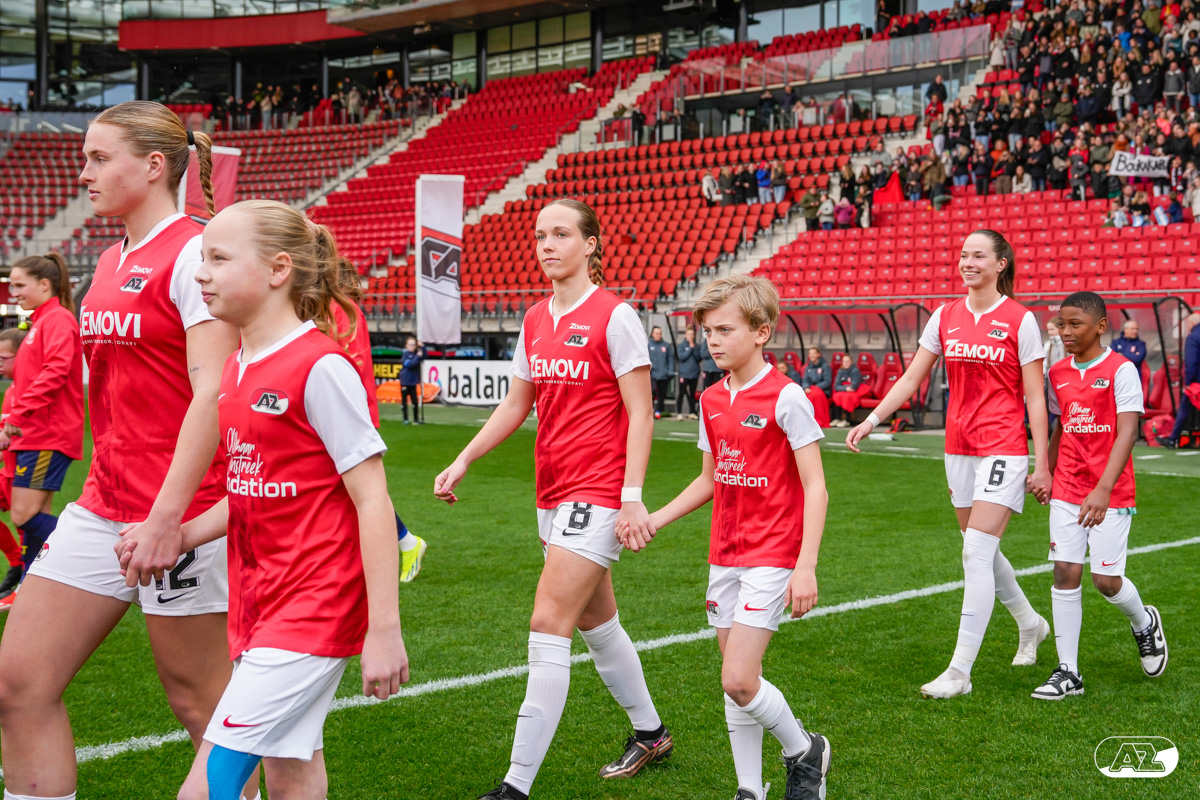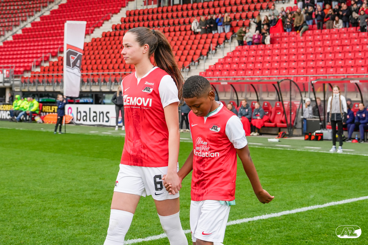 ALKMAAR- Voorafgaand aan de wedstrijd van de AZ vrouwen tegen FC Twente mochten leden van De Waaghalzen & De AllstarZ mee het veld op als spelersescorte, vlaggendrager, middencirkeldoekdrager of ballenkids! De Waaghalzen & De AllstarZ bij de wedstrijd tussen AZ en FC Twente in beeld.