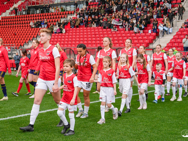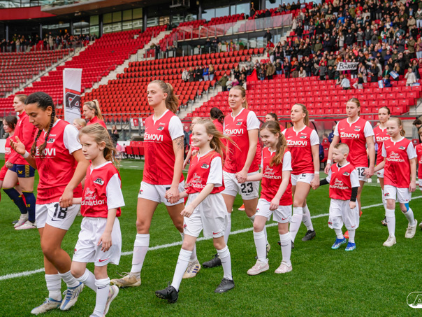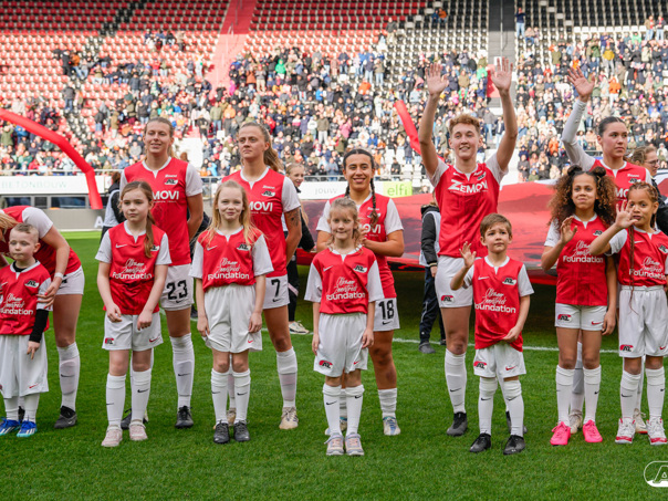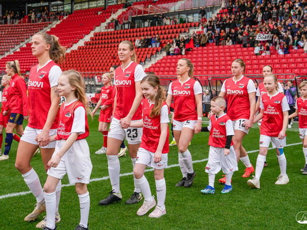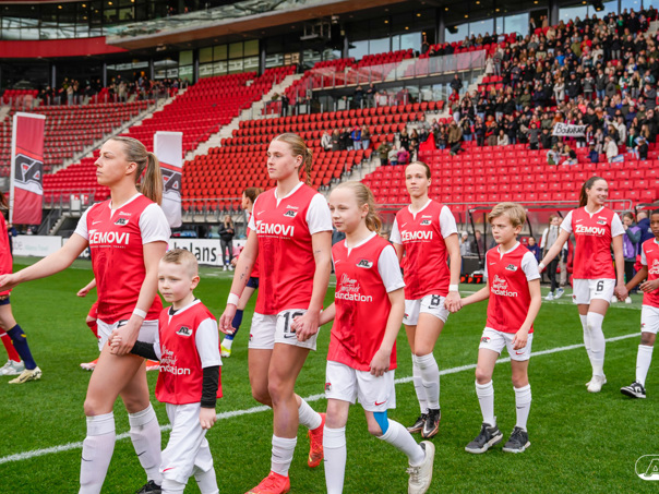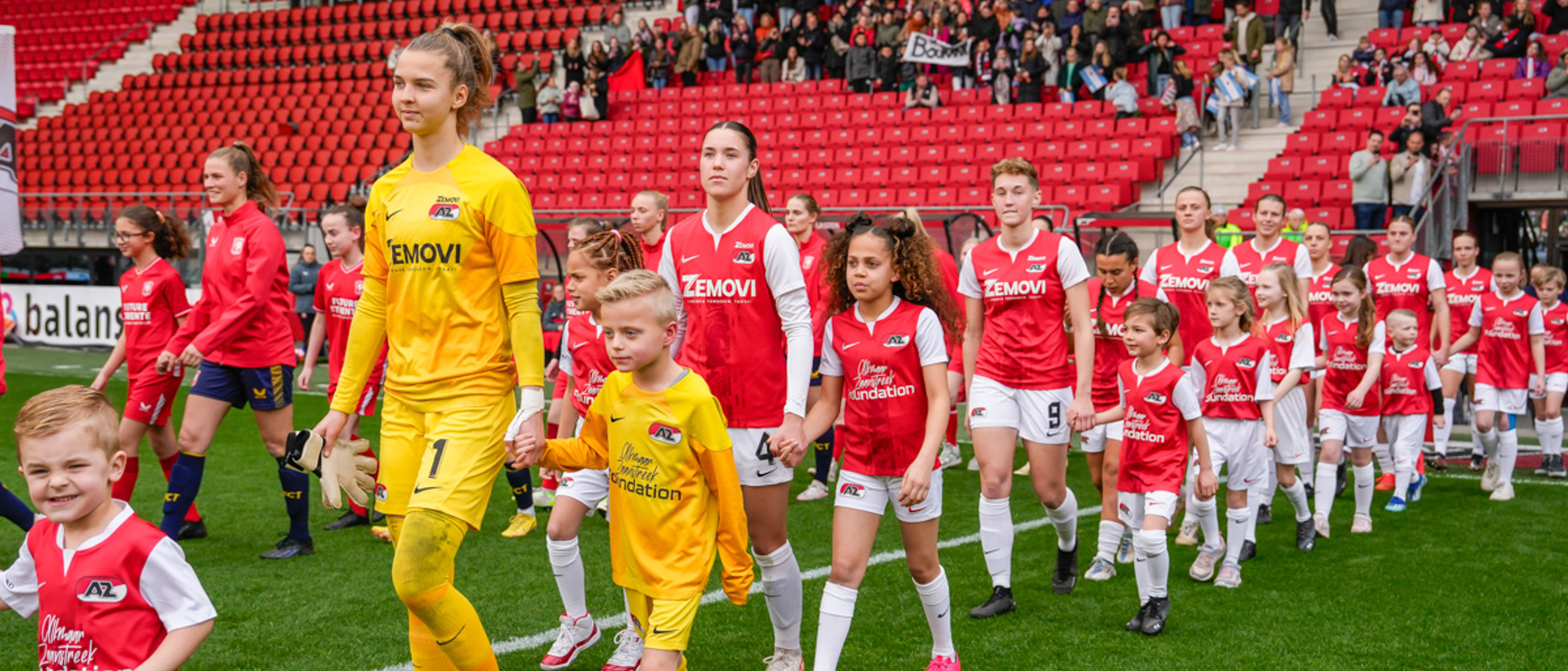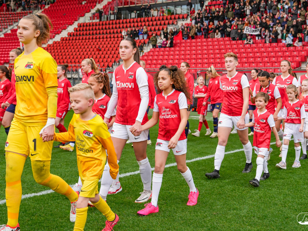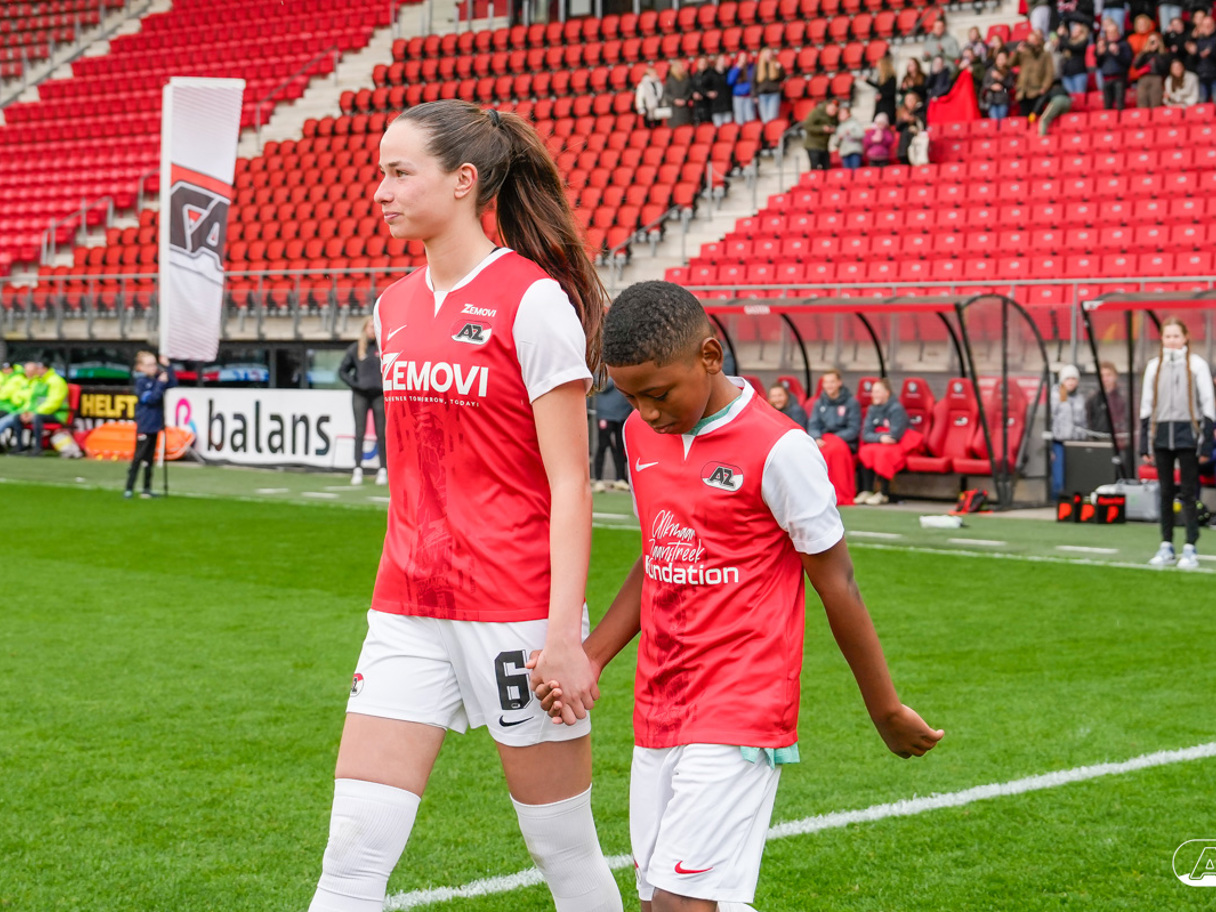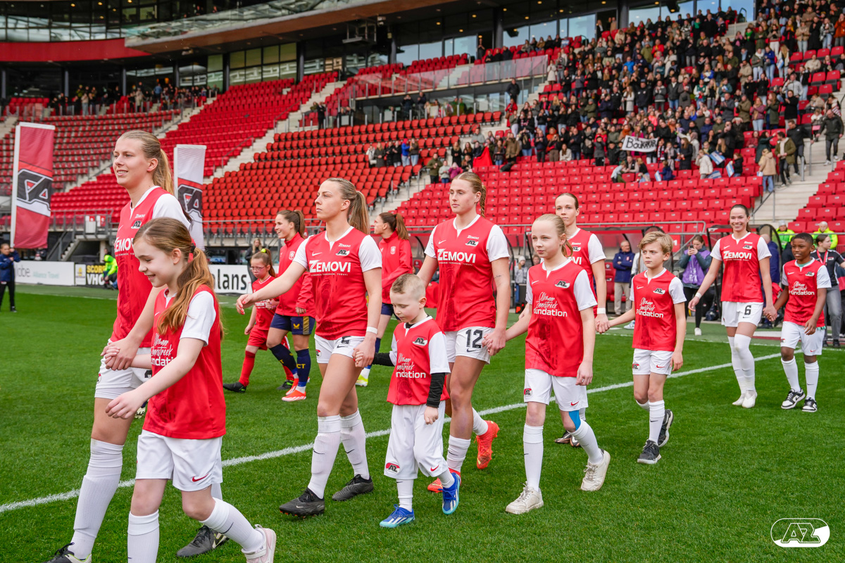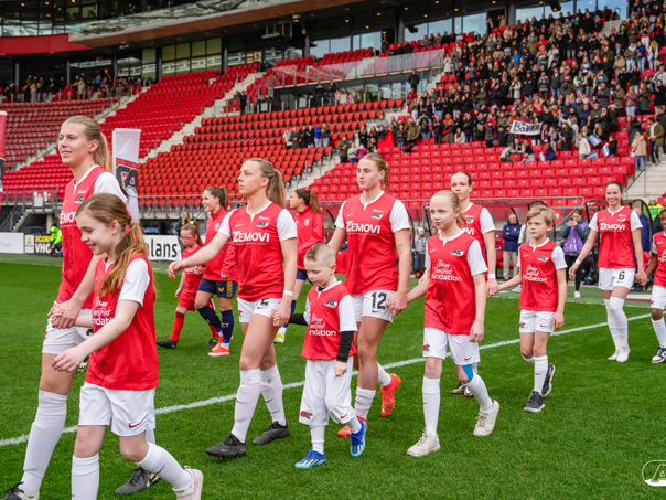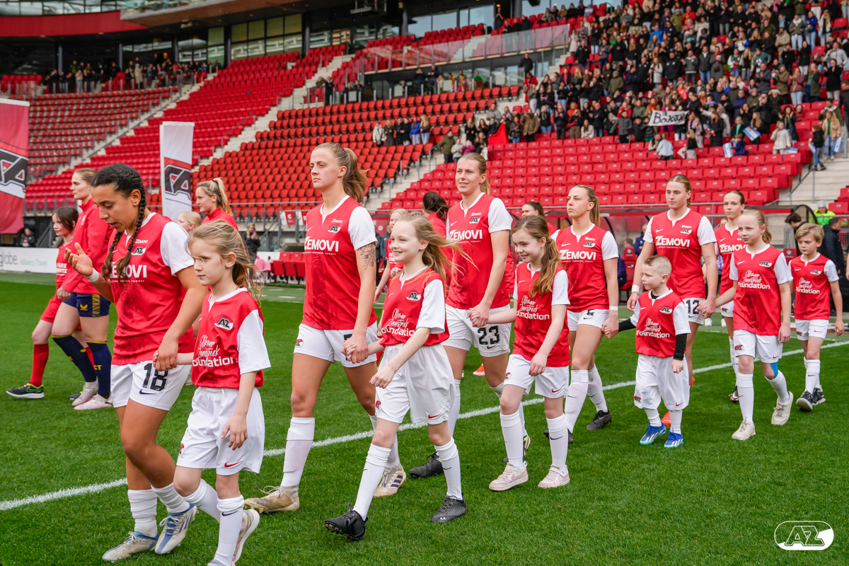 ALKMAAR- Voorafgaand aan de wedstrijd van de AZ vrouwen tegen FC Twente mochten leden van De Waaghalzen & De AllstarZ mee het veld op als spelersescorte, vlaggendrager, middencirkeldoekdrager of ballenkids! De Waaghalzen & De AllstarZ bij de wedstrijd tussen AZ en FC Twente in beeld.