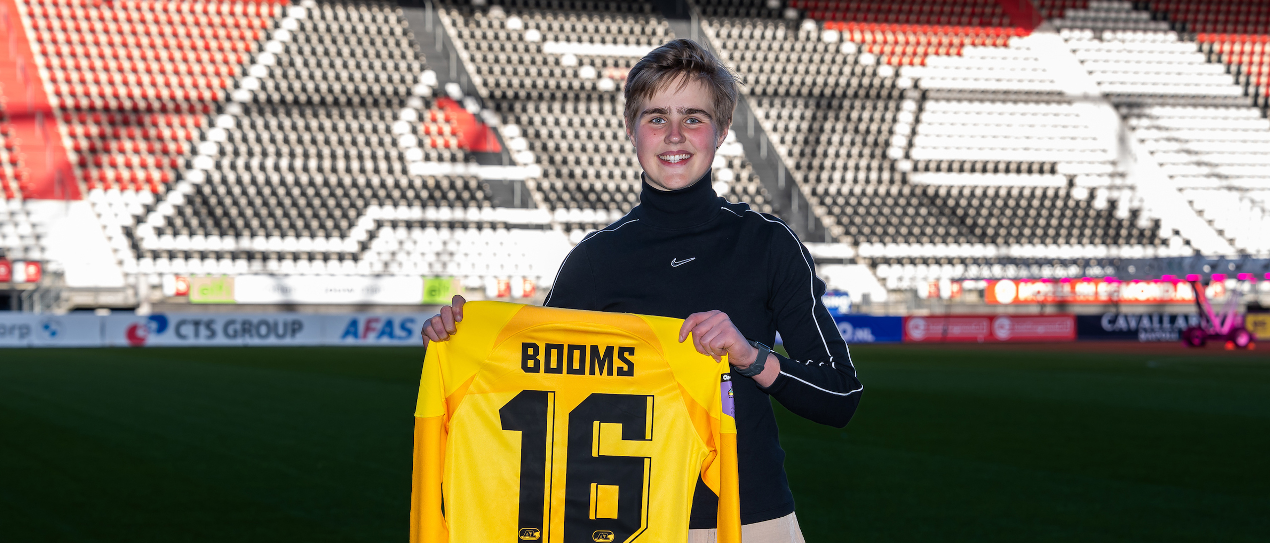 Booms kwam vorige seizoen over van VV Alkmaar, de club die door AZ werd vervangen in de Azerion Vrouwen Eredivisie. Bij VV Alkmaar speelde Booms, samen met haar zus Ina Booms in het beloftenelftal. De zeventienjarige is momenteel de eerste keus onder de lat bij Jong AZ en tevens reservekeepster van het eerste elftal.