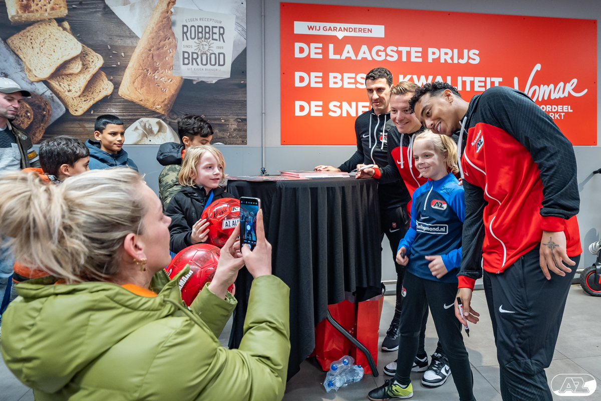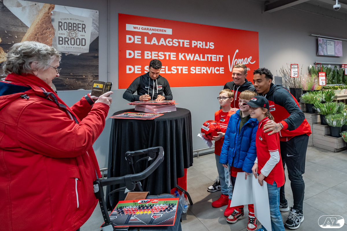 ALKMAAR- Ook dit jaar bezochten meerdere selectiespelers en stafleden van AZ 1 weer Vomar-vestigingen voor een Meet & Greet. Fans konden een foto of handtekening scoren en tevens waren er mooie prijzen te winnen. Huisfotograaf Ed van de Pol was aanwezig in Vomar De Mare en legde het allemaal vast.