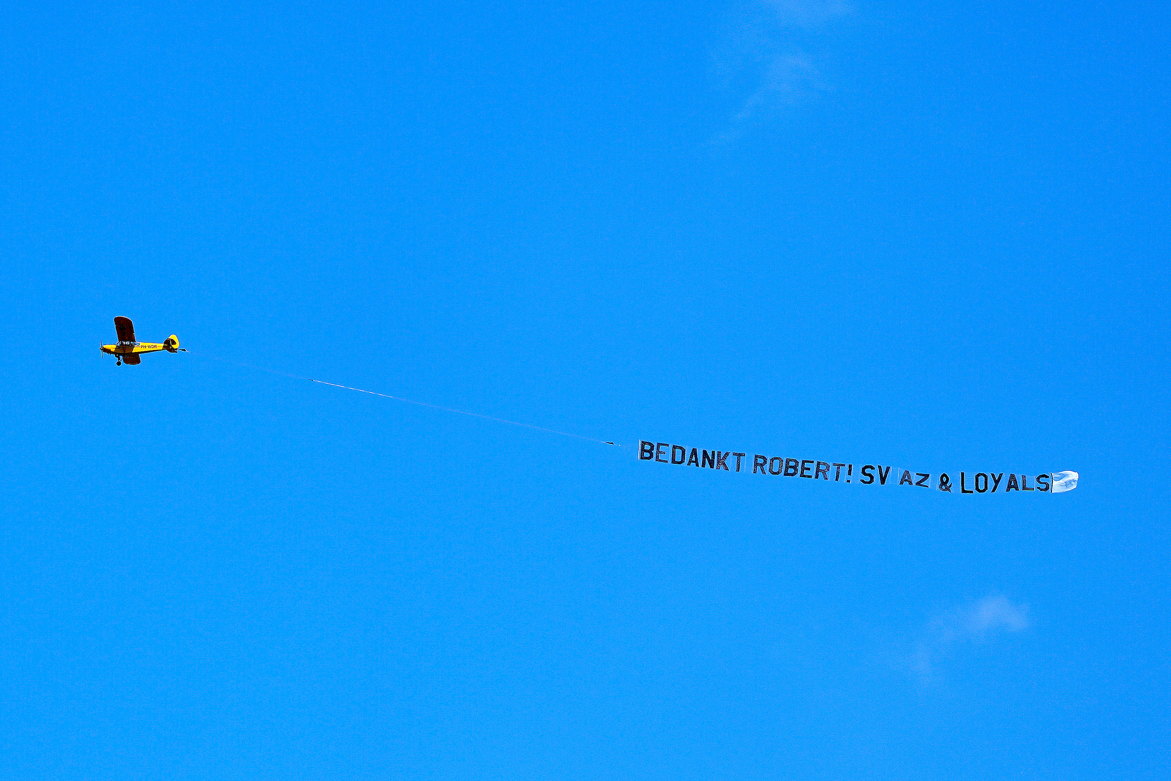 Het eerste speelkwartier werd verder gekenmerkt door een eerbetoon aan Dani de Wit. In de elfde minuut klonk er luid applaus en gezang voor de AZ’er, die naar alle waarschijnlijk bij de club gaat vertrekken. Even later ging de blik kort van het veld naar de lucht, waar een vliegtuigje namens de supportersvereniging en Ben-Side Loyals met spandoek langs vloog om Algemeen Directeur Robert Eenhoorn te bedanken voor zijn jaren in Alkmaarse dienst.