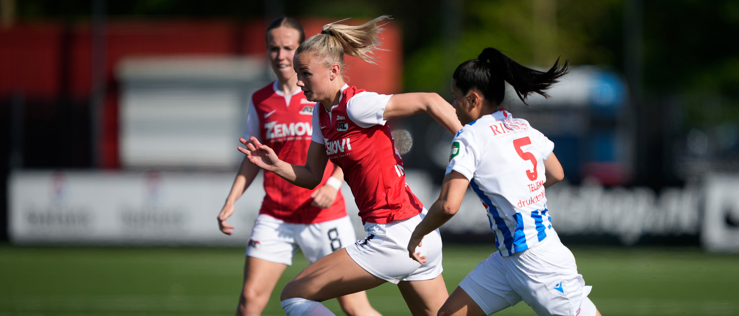WIJDEWORMER- Op een zonnig AFAS Trainingscomplex stond zaterdagmiddag het laatste Azerion Vrouwen Eredivisie duel van het seizoen op het programma voor de AZ Vrouwen. Heerenveen wist uiteindelijk in blessuretijd de overwinning binnen te slepen: 1-2. Aan AZ-zijde was Romaissa Boukakar trefzeker.