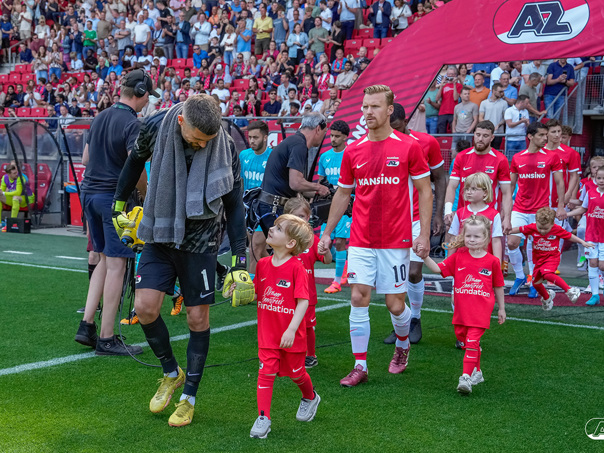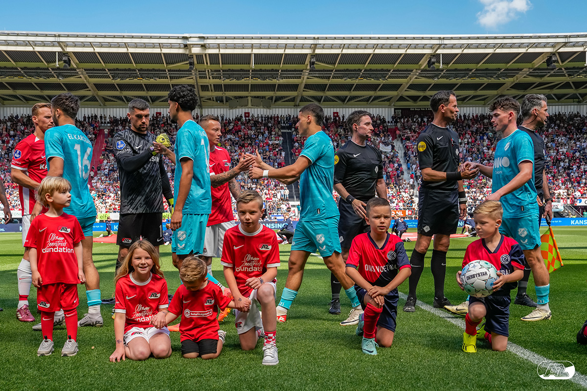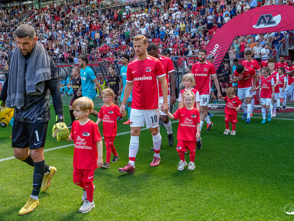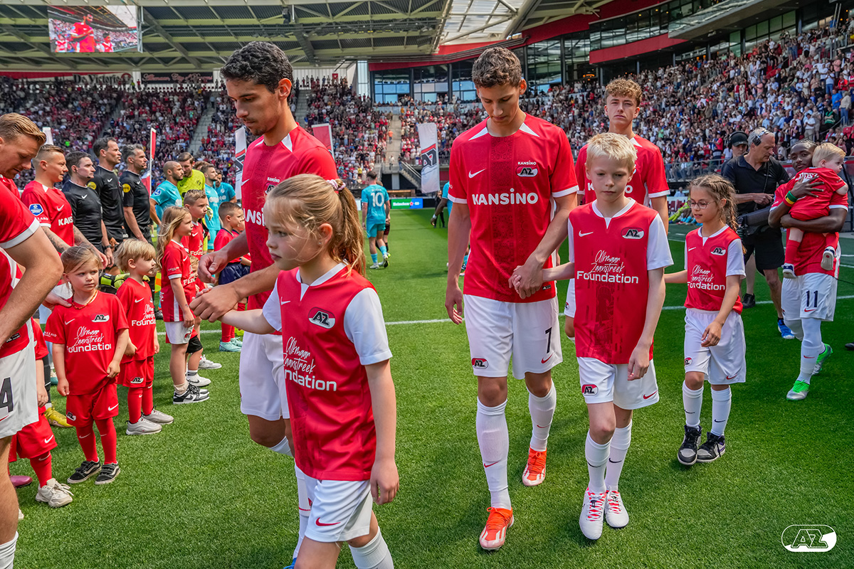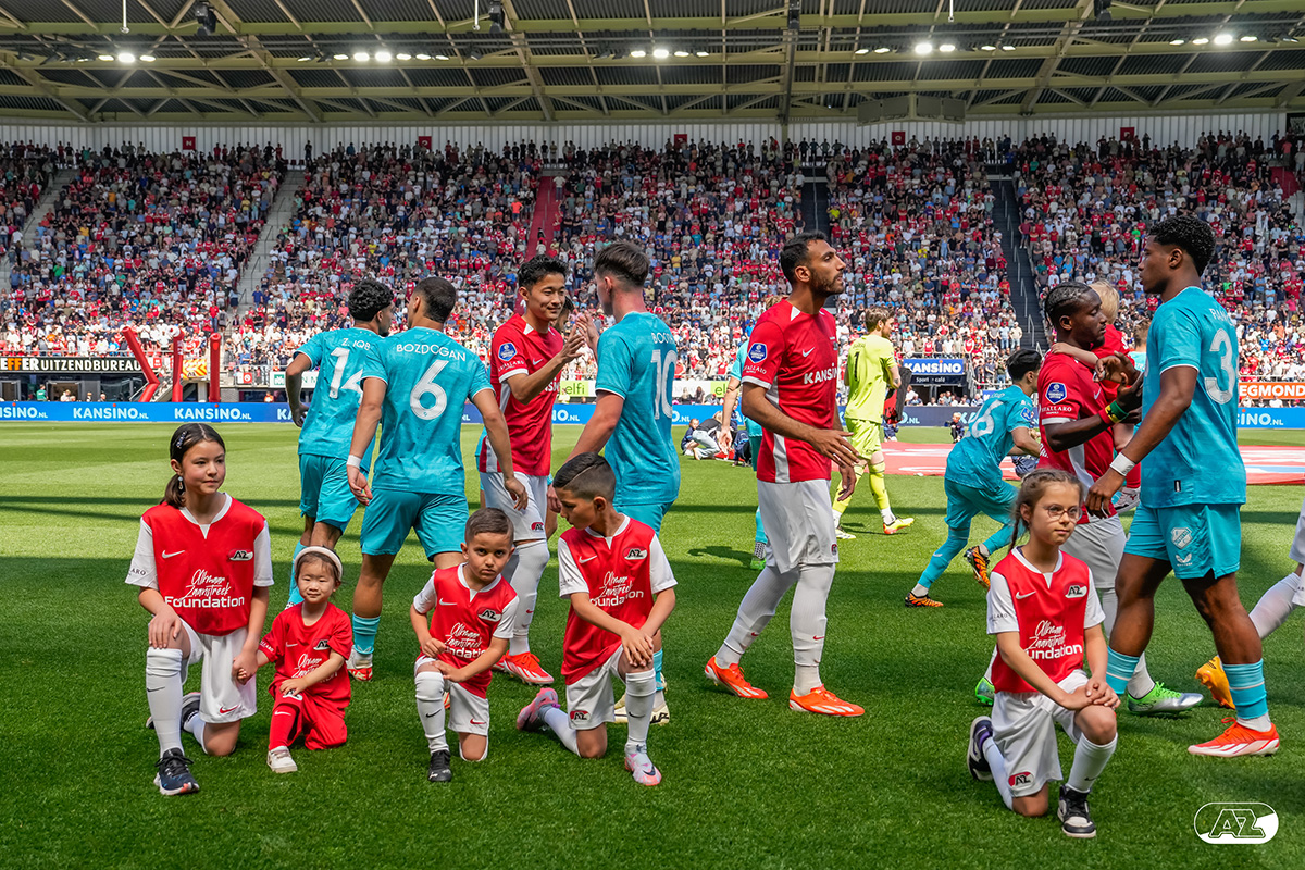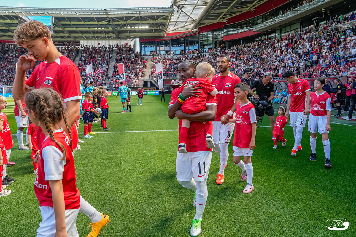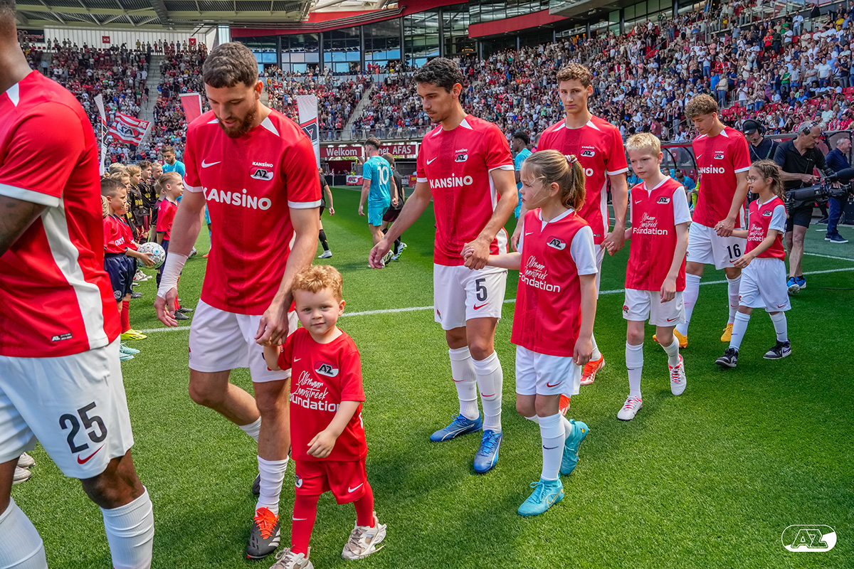 ALKMAAR- Voorafgaand aan de laatste wedstrijd van het seizoen AZ tegen FC Utrecht liepen de kinderen en bekenden van de spelers mee het veld op. De kinderen bij de wedstrijd tussen AZ en FC Utrecht in beeld.