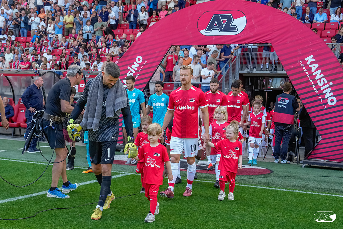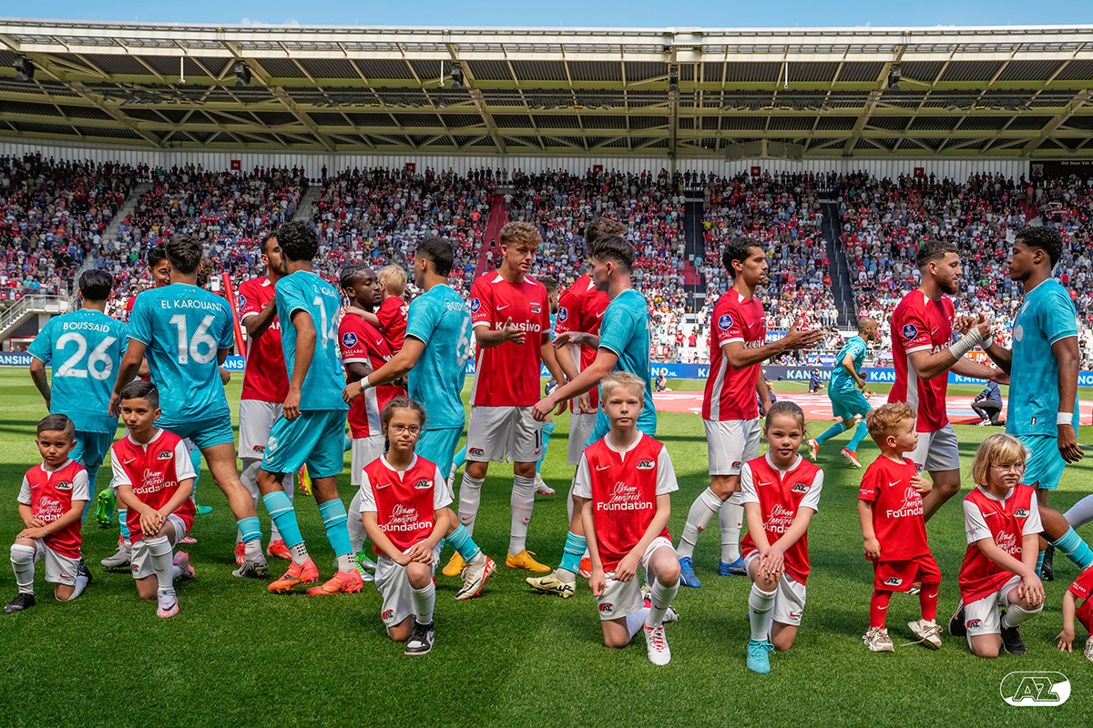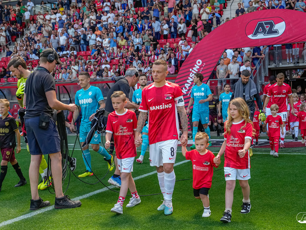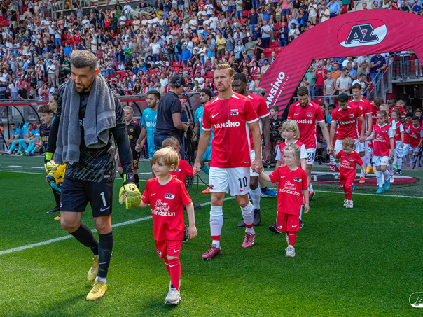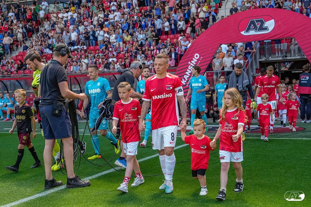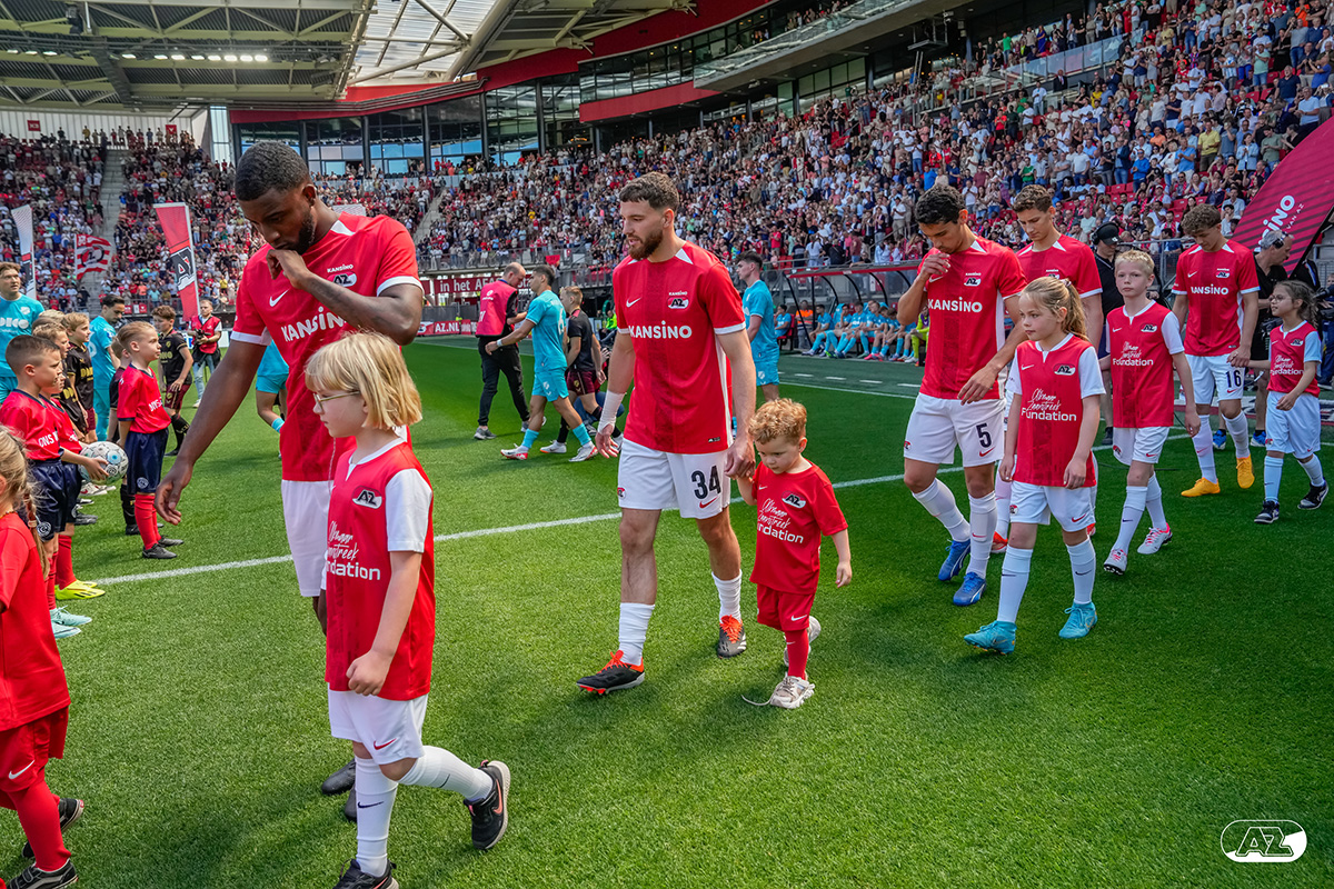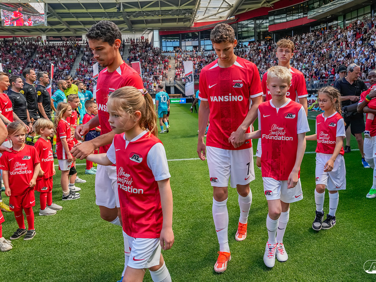 ALKMAAR- Voorafgaand aan de laatste wedstrijd van het seizoen AZ tegen FC Utrecht liepen de kinderen en bekenden van de spelers mee het veld op. De kinderen bij de wedstrijd tussen AZ en FC Utrecht in beeld.