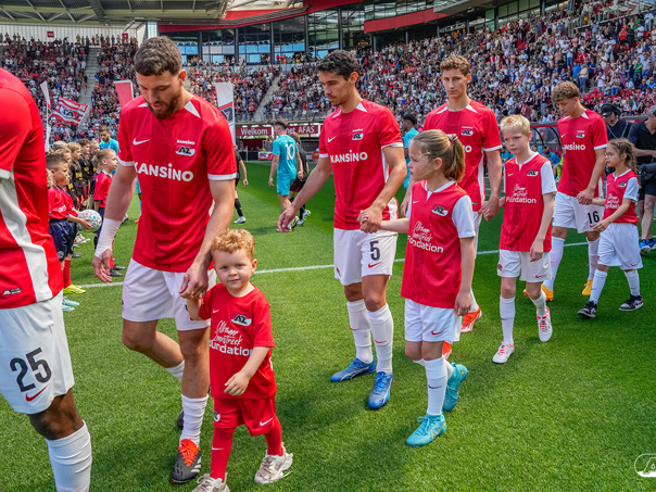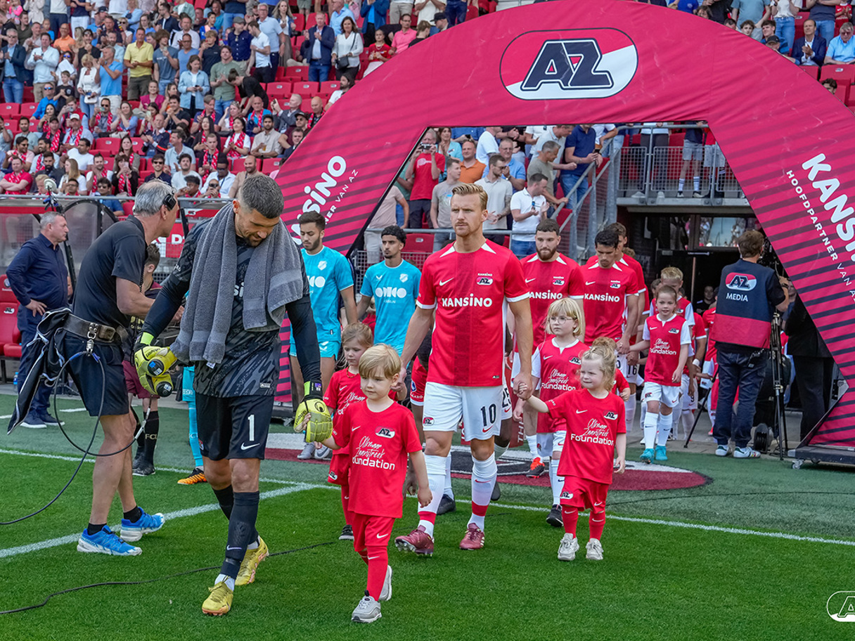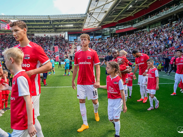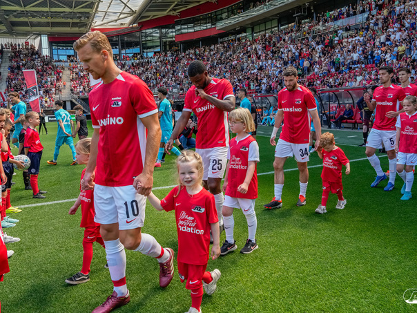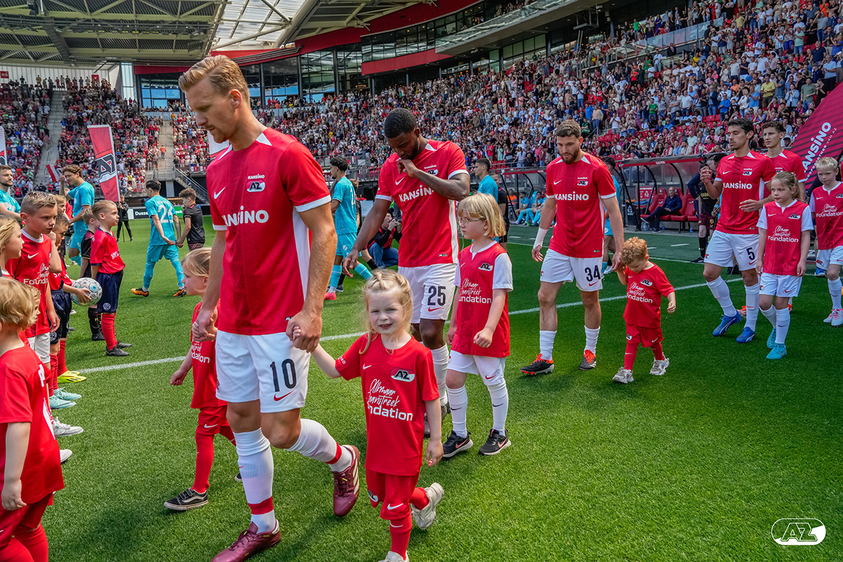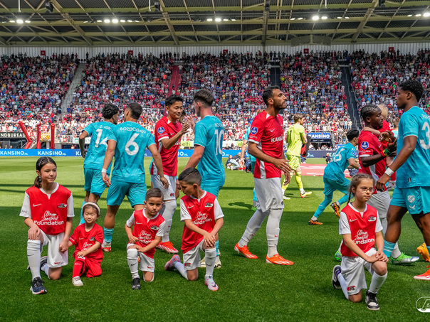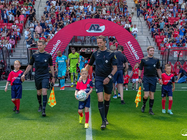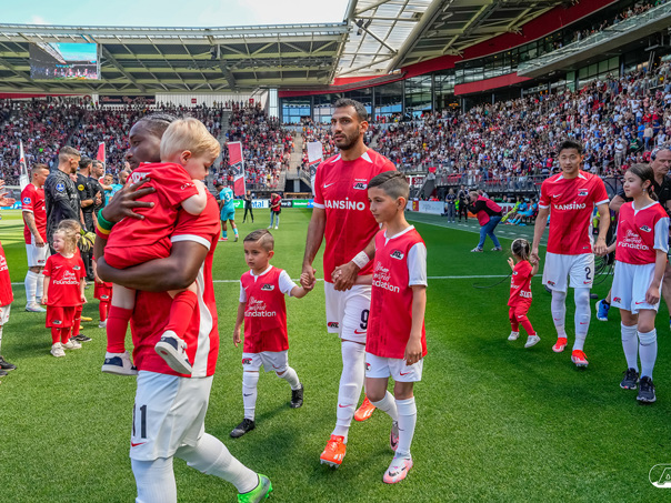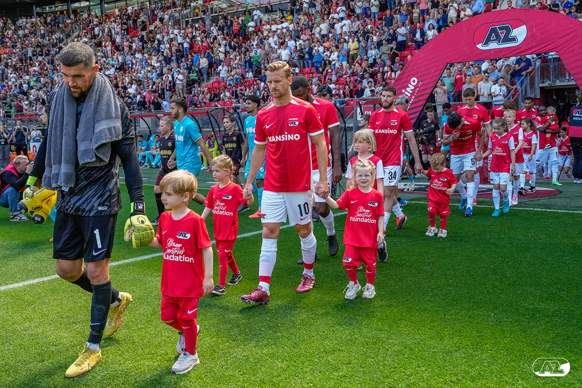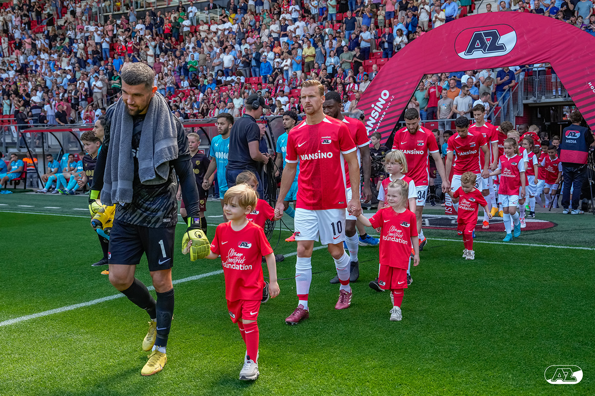 ALKMAAR- Voorafgaand aan de laatste wedstrijd van het seizoen AZ tegen FC Utrecht liepen de kinderen en bekenden van de spelers mee het veld op. De kinderen bij de wedstrijd tussen AZ en FC Utrecht in beeld.