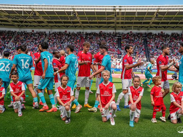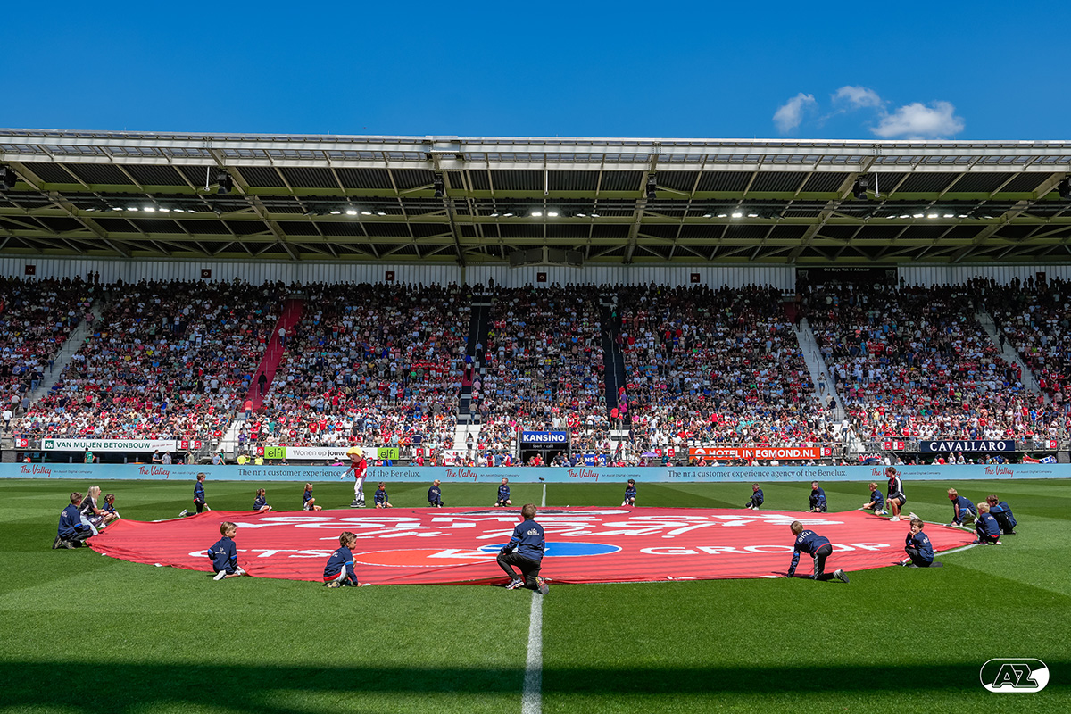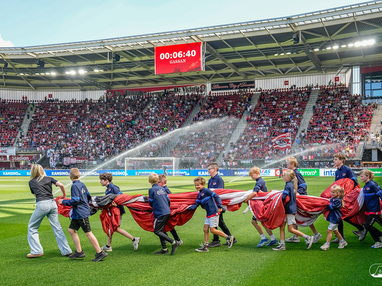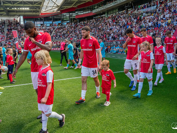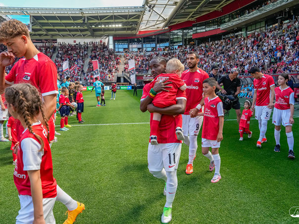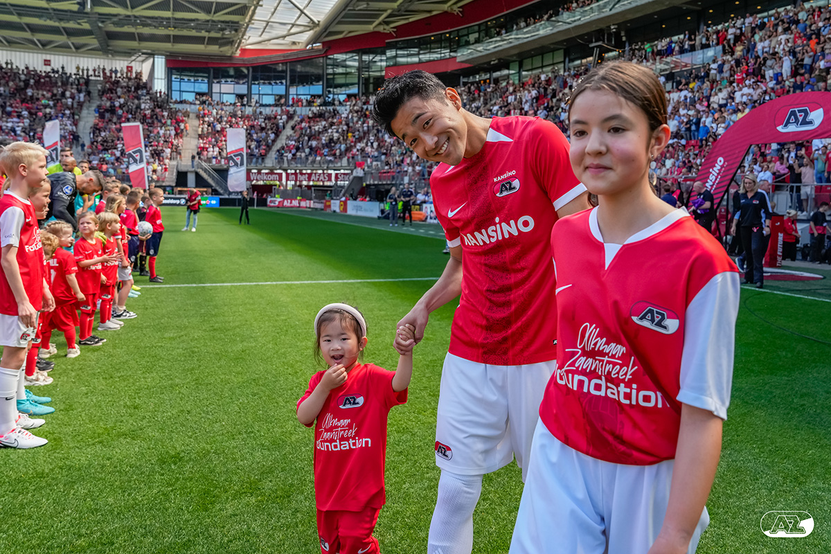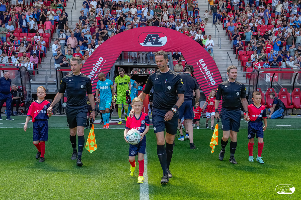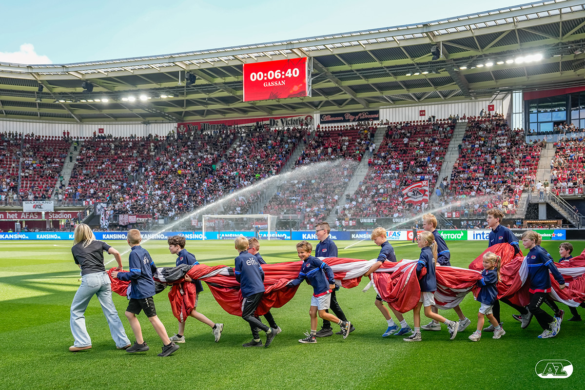 ALKMAAR- Voorafgaand aan de laatste wedstrijd van het seizoen AZ tegen FC Utrecht liepen de kinderen en bekenden van de spelers mee het veld op. De kinderen bij de wedstrijd tussen AZ en FC Utrecht in beeld.