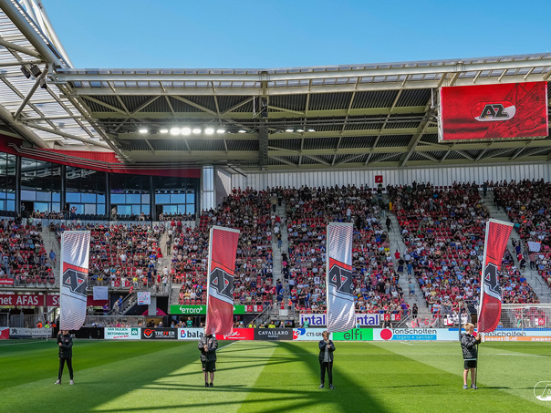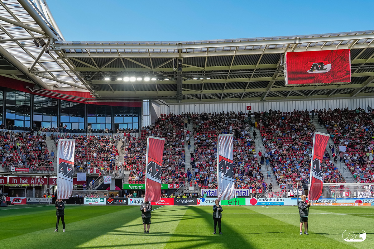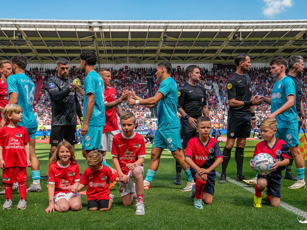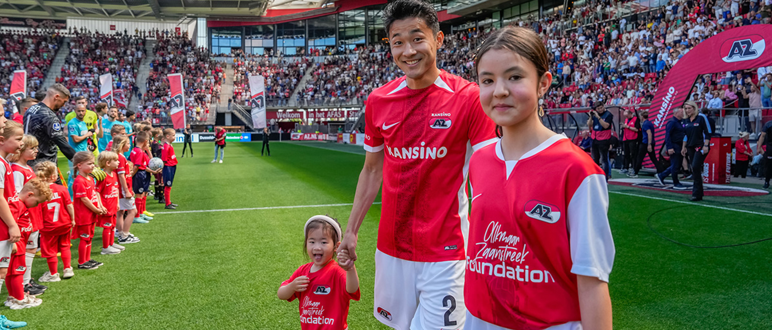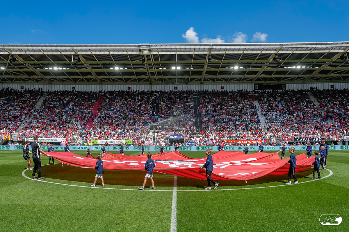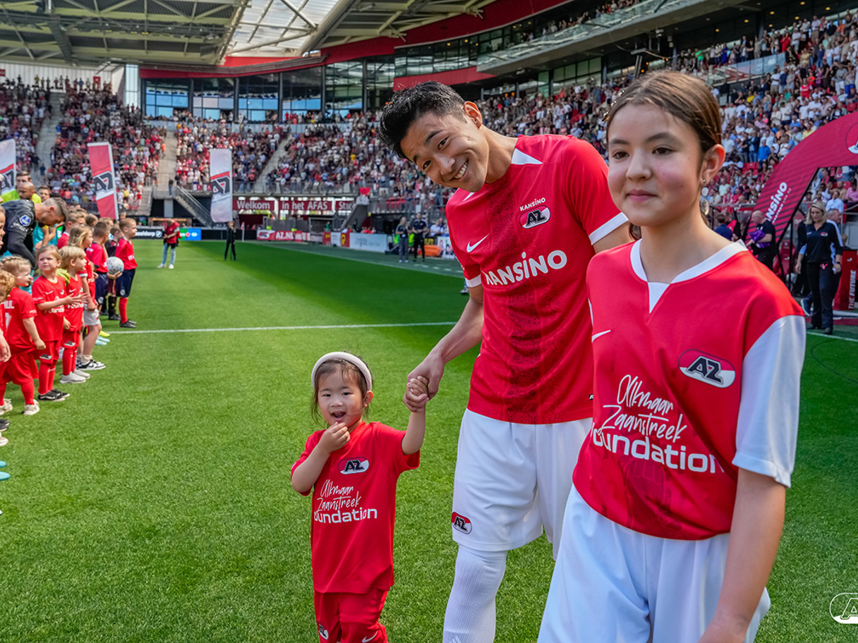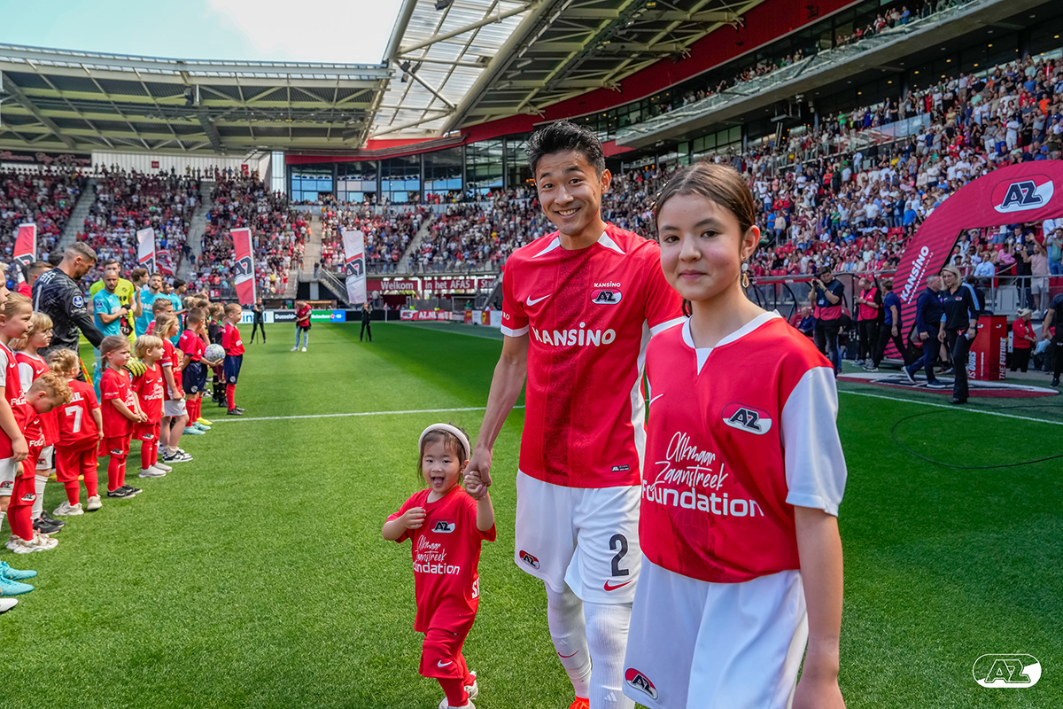 ALKMAAR- Voorafgaand aan de laatste wedstrijd van het seizoen AZ tegen FC Utrecht liepen de kinderen en bekenden van de spelers mee het veld op. De kinderen bij de wedstrijd tussen AZ en FC Utrecht in beeld.
