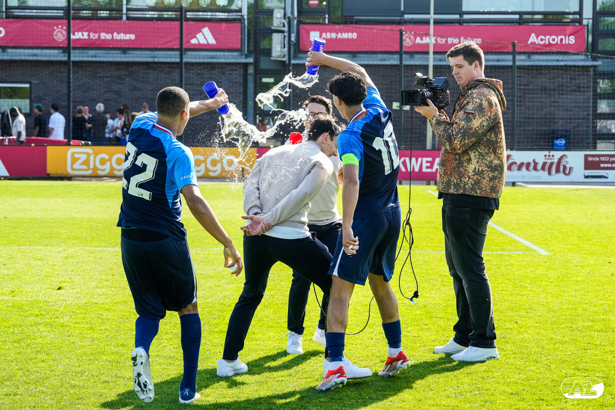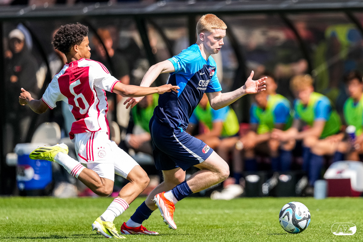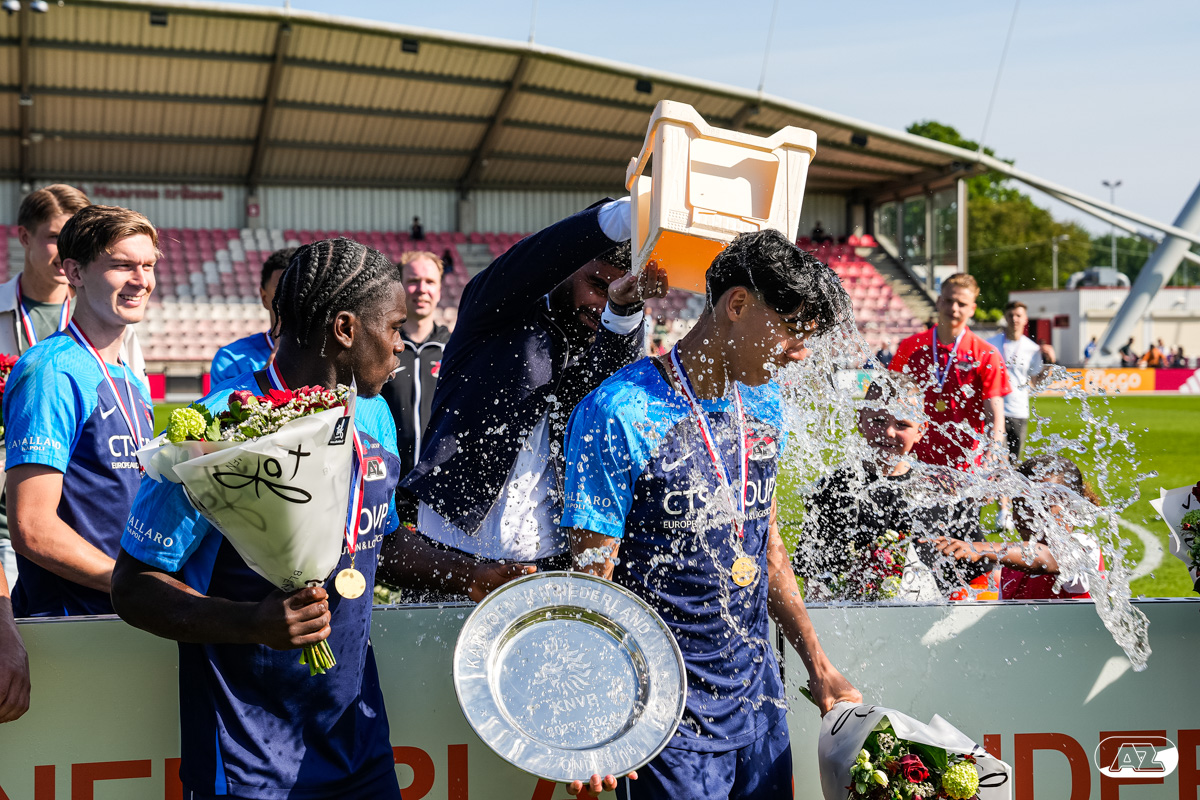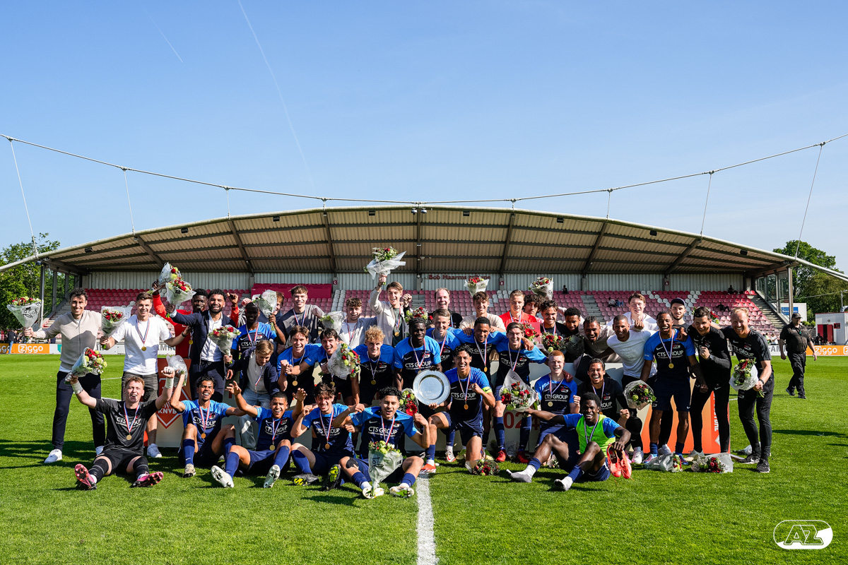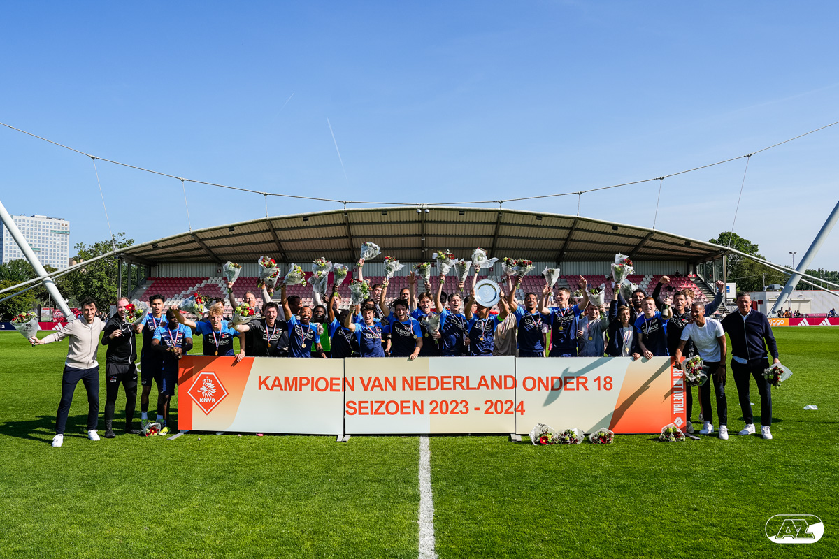 AMSTERDAM- Op sportpark de Toekomst heeft AZ Onder 18 zaterdagmiddag een 0-2 overwinning geboekt op Ajax. Kees Smit was namens AZ tweemaal trefzeker. Door de overwinning is AZ Onder 18 nu landskampioen en heeft het een ticket weten te bemachtigen voor het volgende seizoen van de Youth League. De finale in beeld (Foto's: Ed van de Pol)