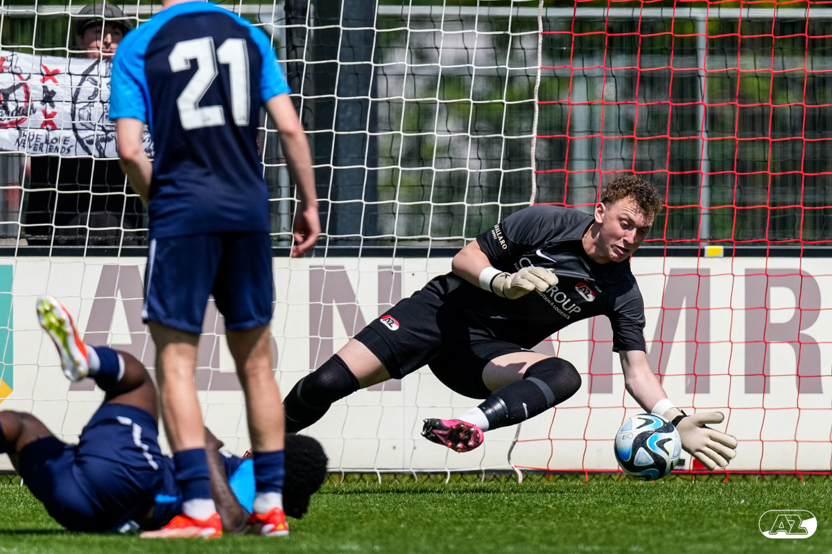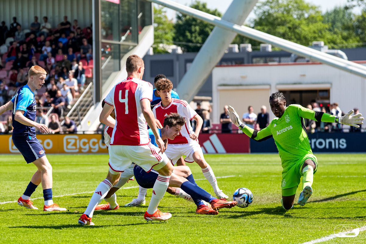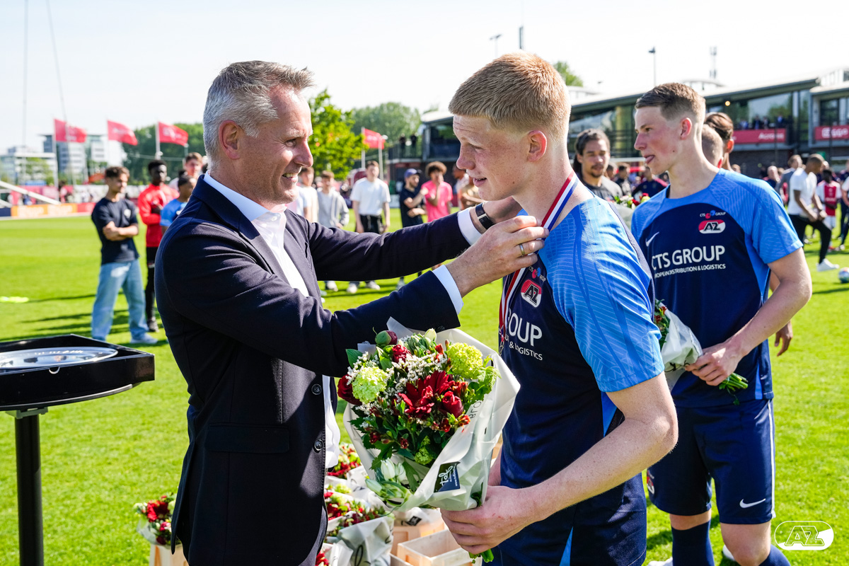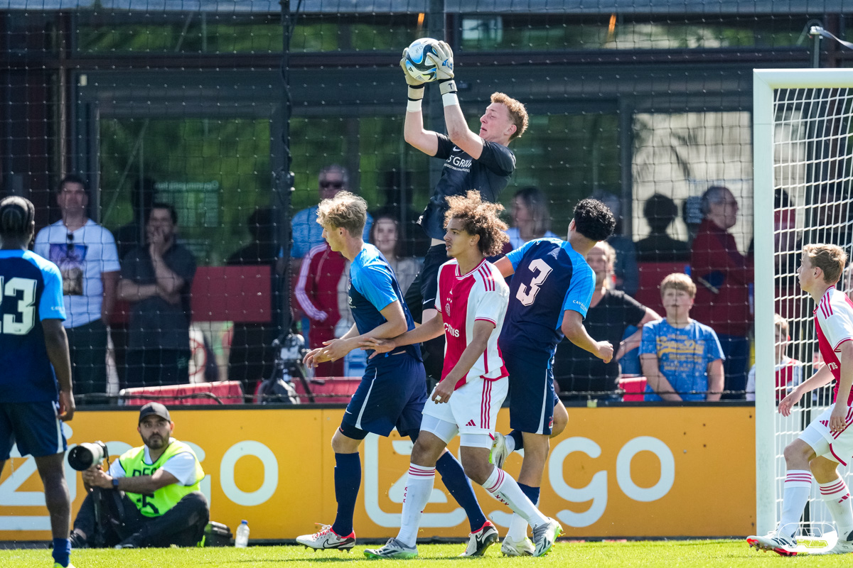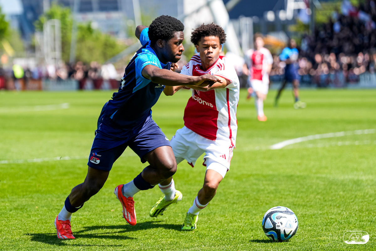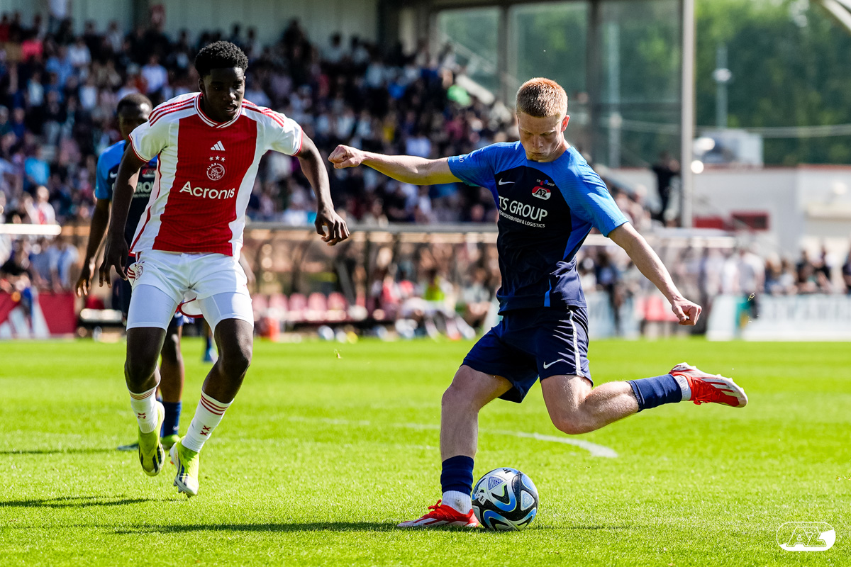 AMSTERDAM- Op sportpark de Toekomst heeft AZ Onder 18 zaterdagmiddag een 0-2 overwinning geboekt op Ajax. Kees Smit was namens AZ tweemaal trefzeker. Door de overwinning is AZ Onder 18 nu landskampioen en heeft het een ticket weten te bemachtigen voor het volgende seizoen van de Youth League. De finale in beeld (Foto's: Ed van de Pol)