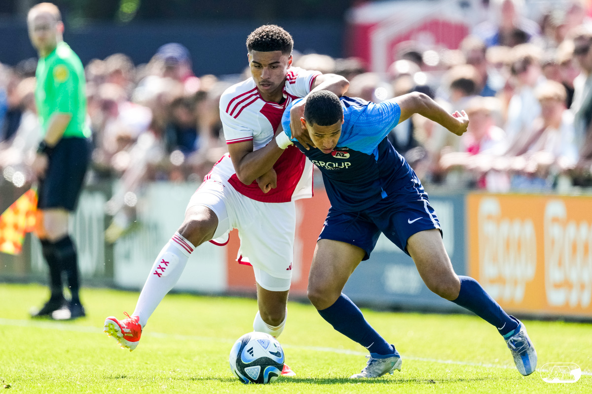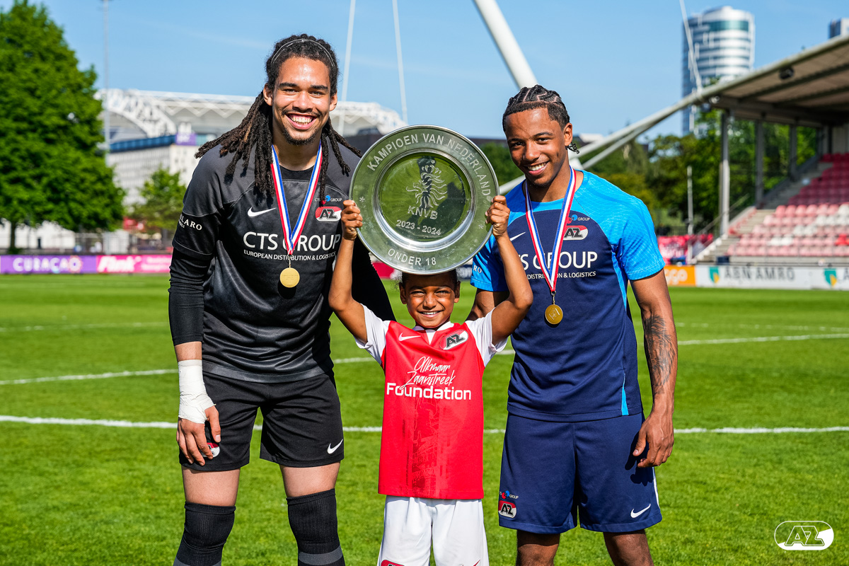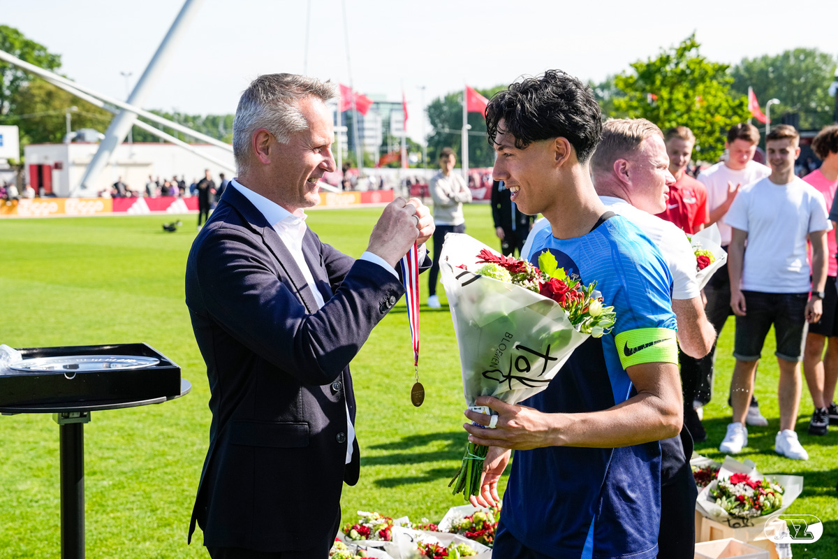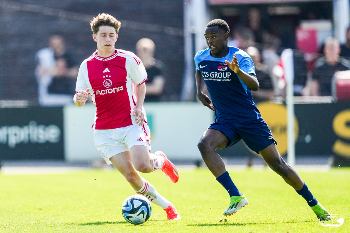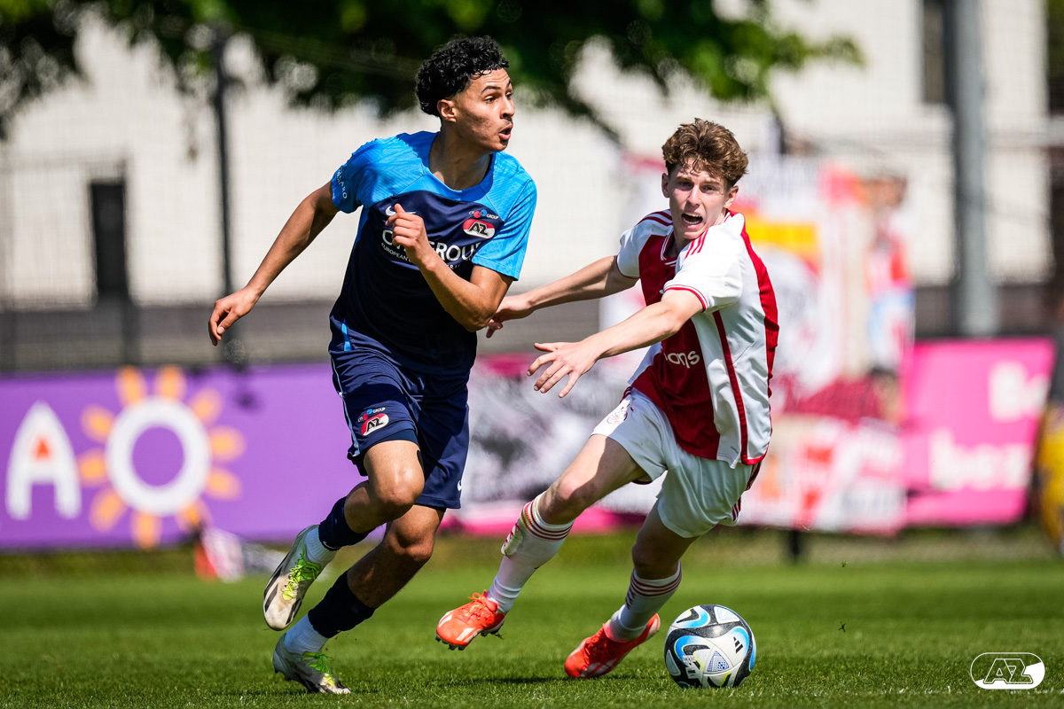 AMSTERDAM- Op sportpark de Toekomst heeft AZ Onder 18 zaterdagmiddag een 0-2 overwinning geboekt op Ajax. Kees Smit was namens AZ tweemaal trefzeker. Door de overwinning is AZ Onder 18 nu landskampioen en heeft het een ticket weten te bemachtigen voor het volgende seizoen van de Youth League. De finale in beeld (Foto's: Ed van de Pol)