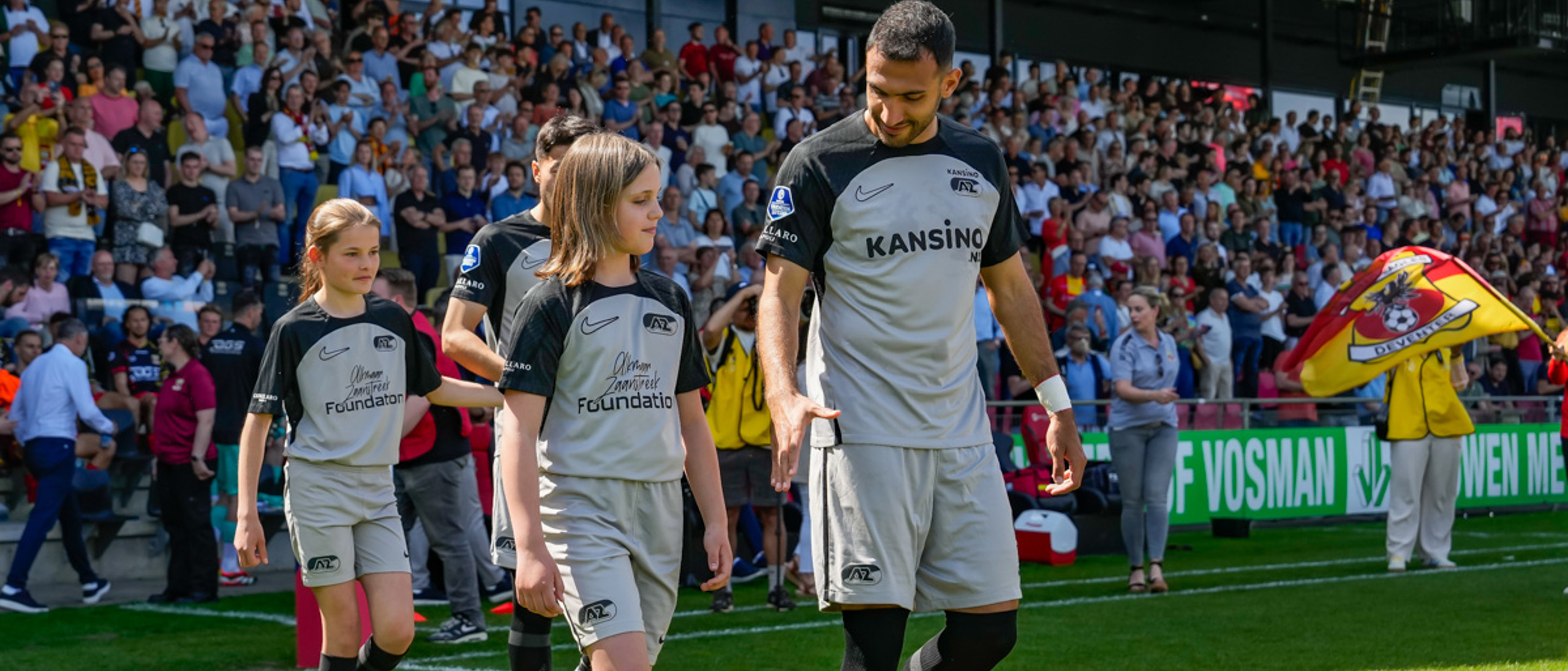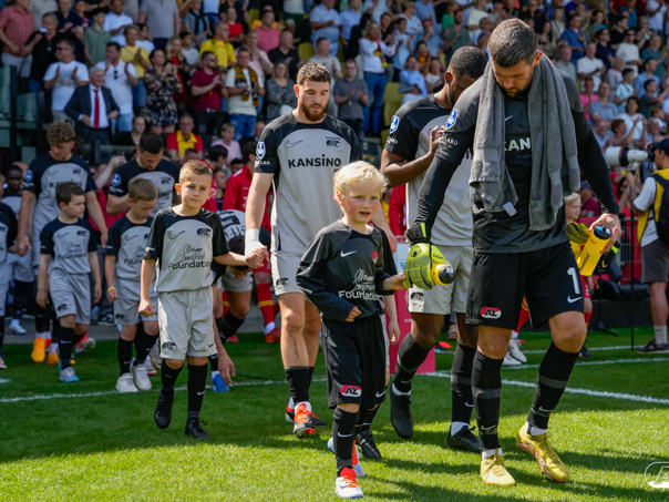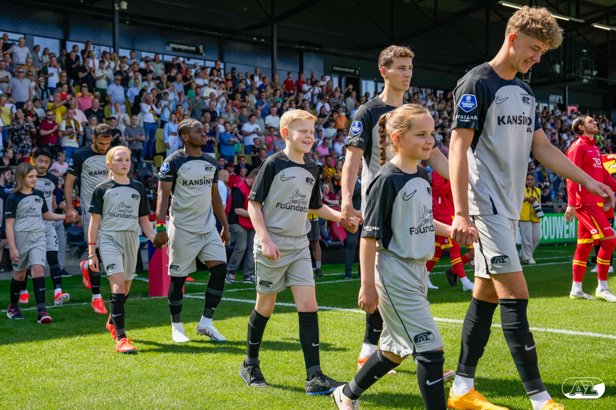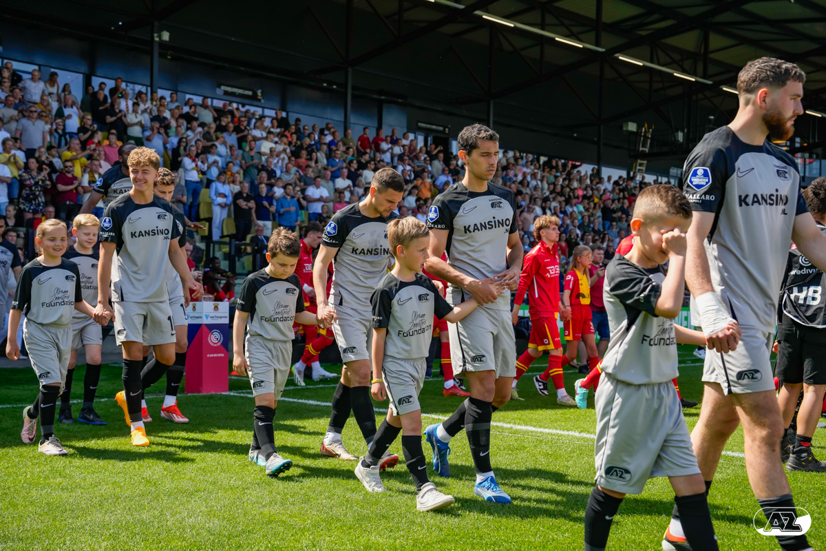 ALKMAAR- Voorafgaand aan de wedstrijd van Go Ahead Eagles tegen AZ mochten leden van De Waaghalzen & De AllstarZ mee het veld op als spelersescorte. De Waaghalzen & De AllstarZ bij de wedstrijd tussen Go Ahead Eagles en AZ in beeld.