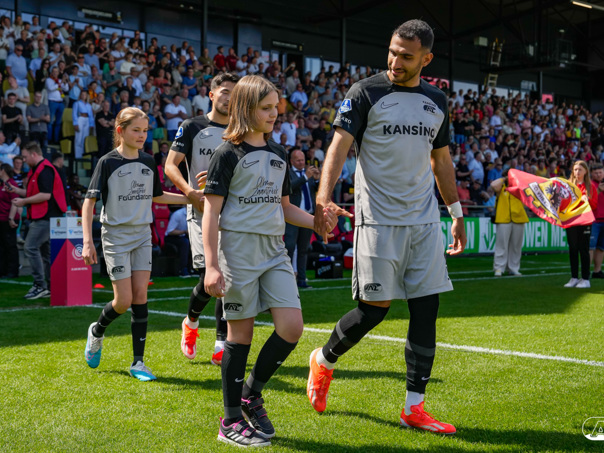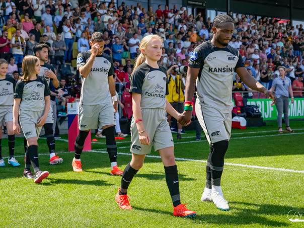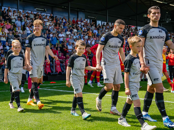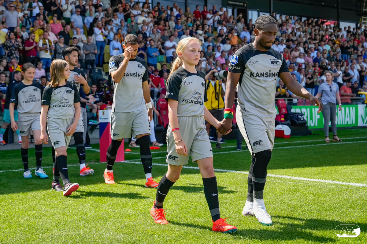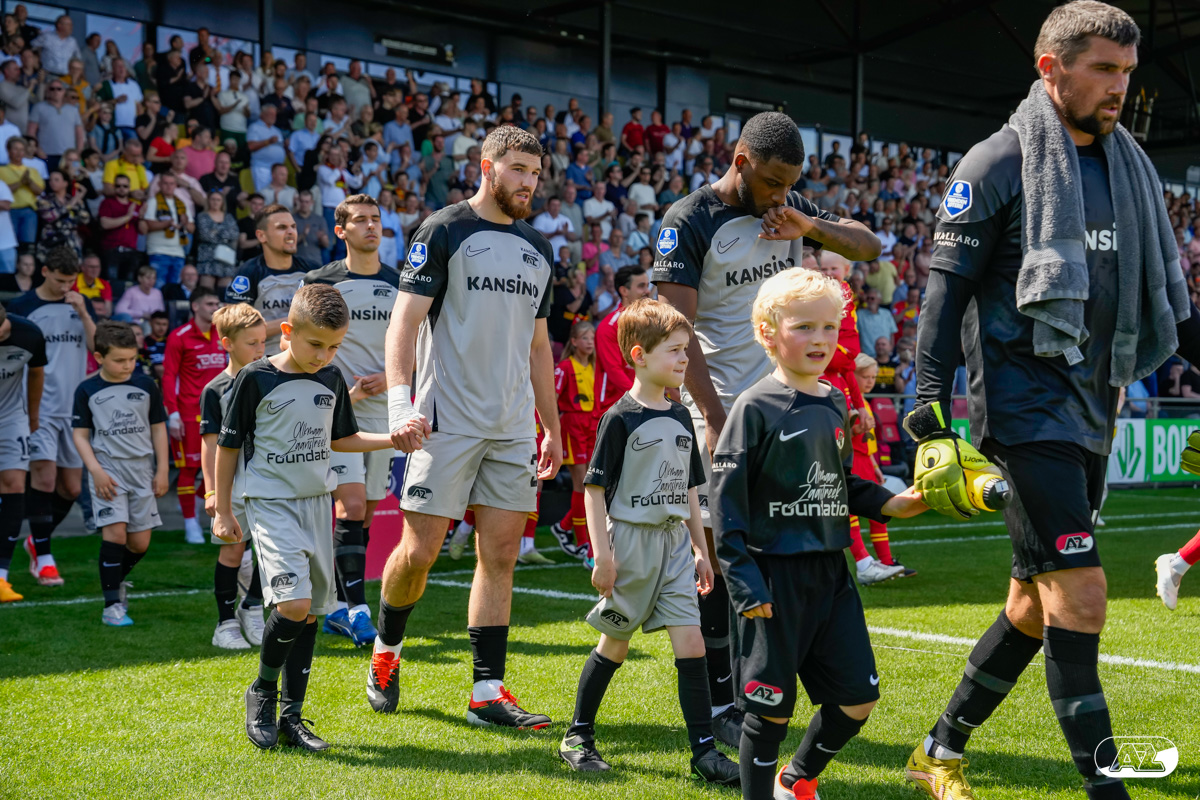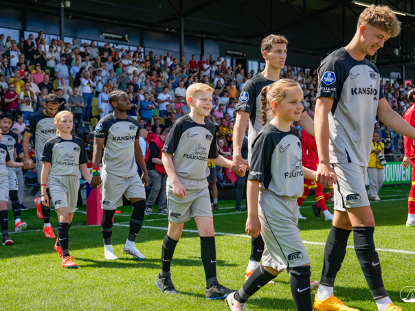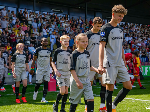 ALKMAAR- Voorafgaand aan de wedstrijd van Go Ahead Eagles tegen AZ mochten leden van De Waaghalzen & De AllstarZ mee het veld op als spelersescorte. De Waaghalzen & De AllstarZ bij de wedstrijd tussen Go Ahead Eagles en AZ in beeld.