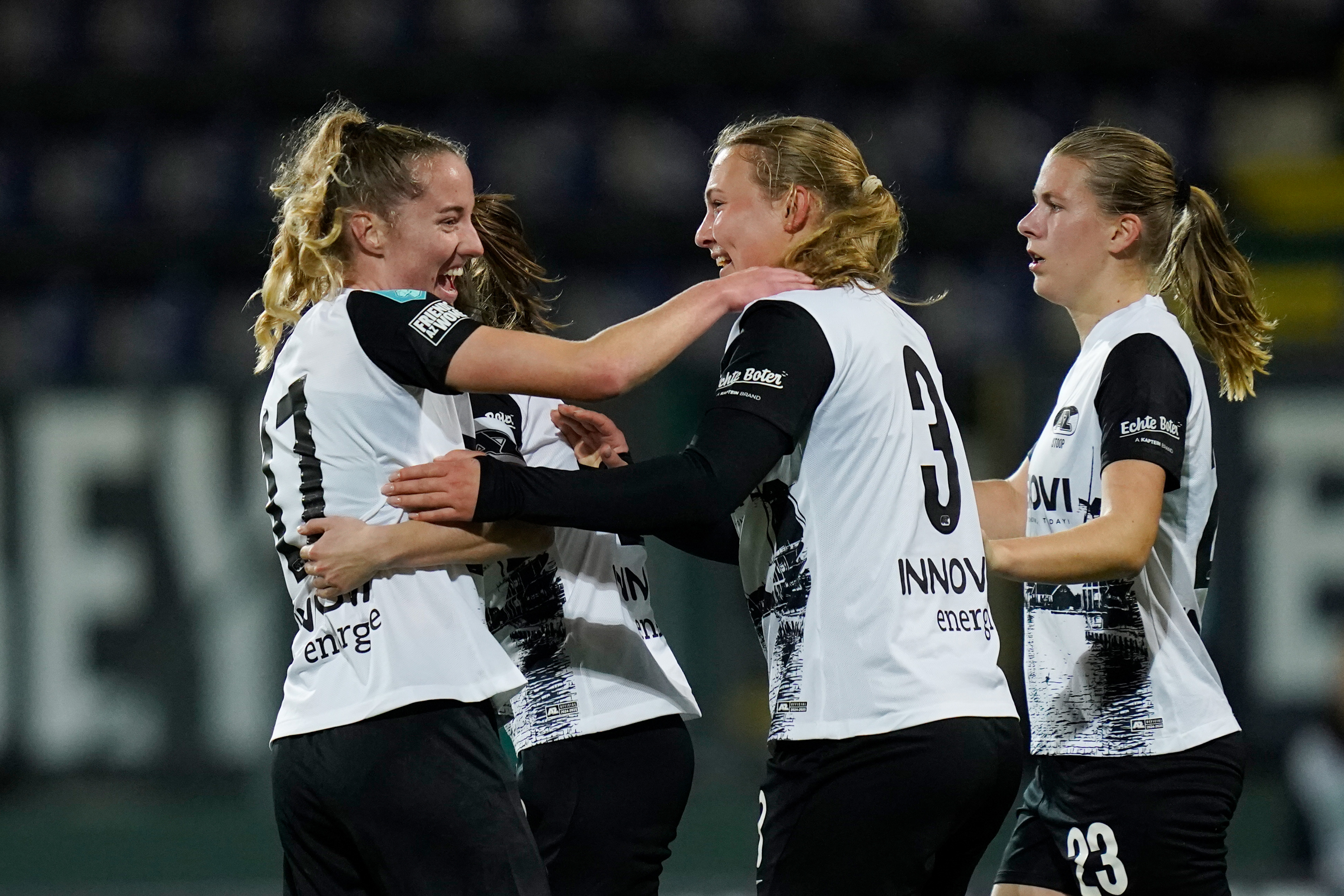 Opstelling AZ Vrouwen: Femke Liefting; Pleun Groot (63. Camie Mol), Karlijn Woons, Maudy Stoop, Ginia Caprino; Jasmijn van Uden , Mirte van Bentum (46. Romaissa Boukakar), Kealyn Thomas (84. Djoeke de Ridder); Desiree van Lunteren (80. Ilvy Zijp), Floor Spaan, Fieke Kroese (63. Isa Colin).