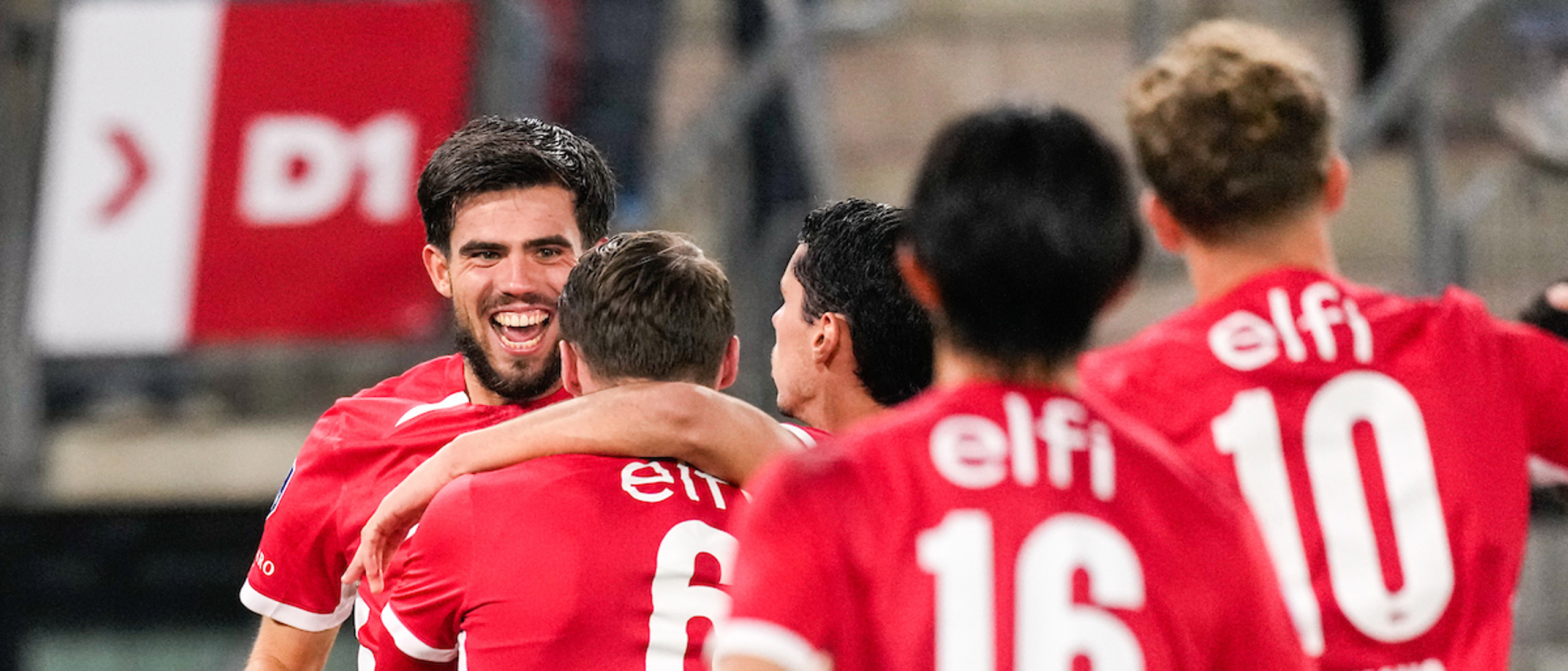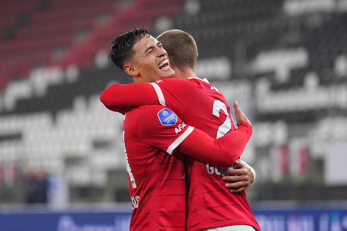 Albert Gudmundsson viert zijn goal tegen Willem II met Tijjani Reijnders. (Foto: Ed van de Pol)