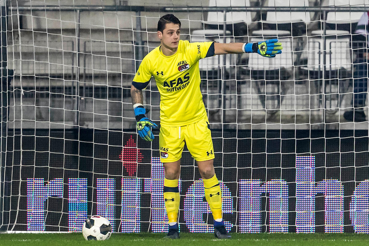 Nick Olij onder de lat in zijn debuut voor het eerste elftal van AZ tegen ASWH (foto: Ed van de Pol).