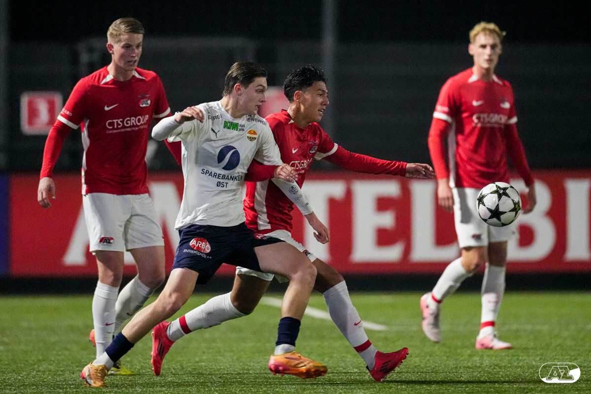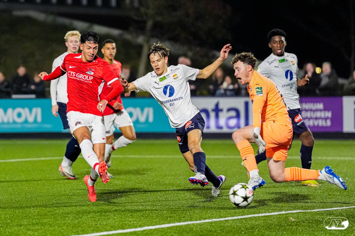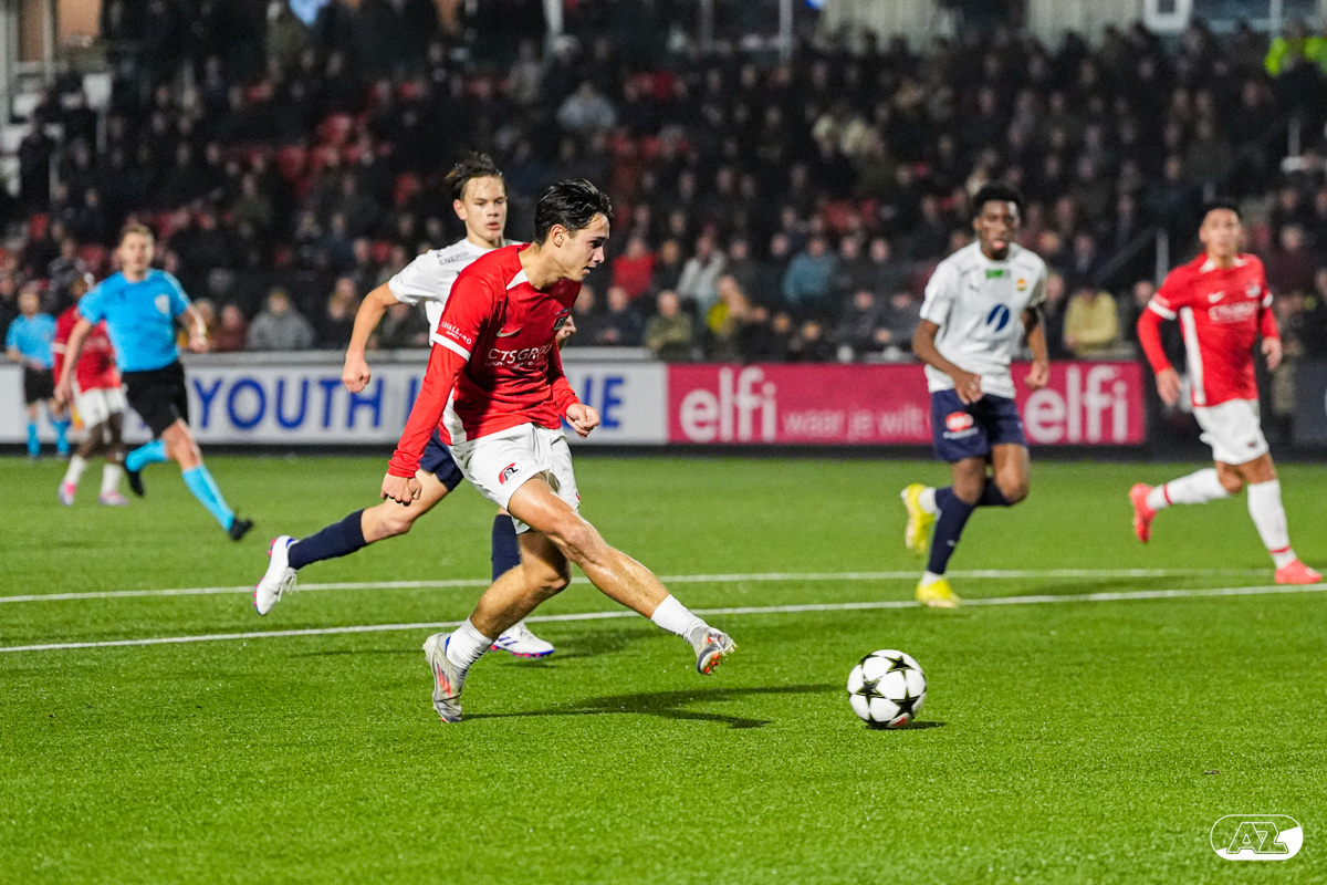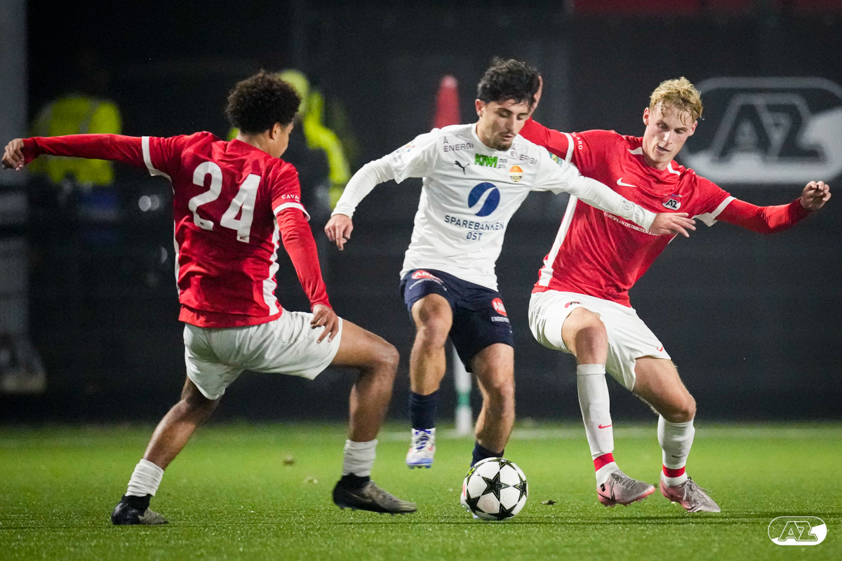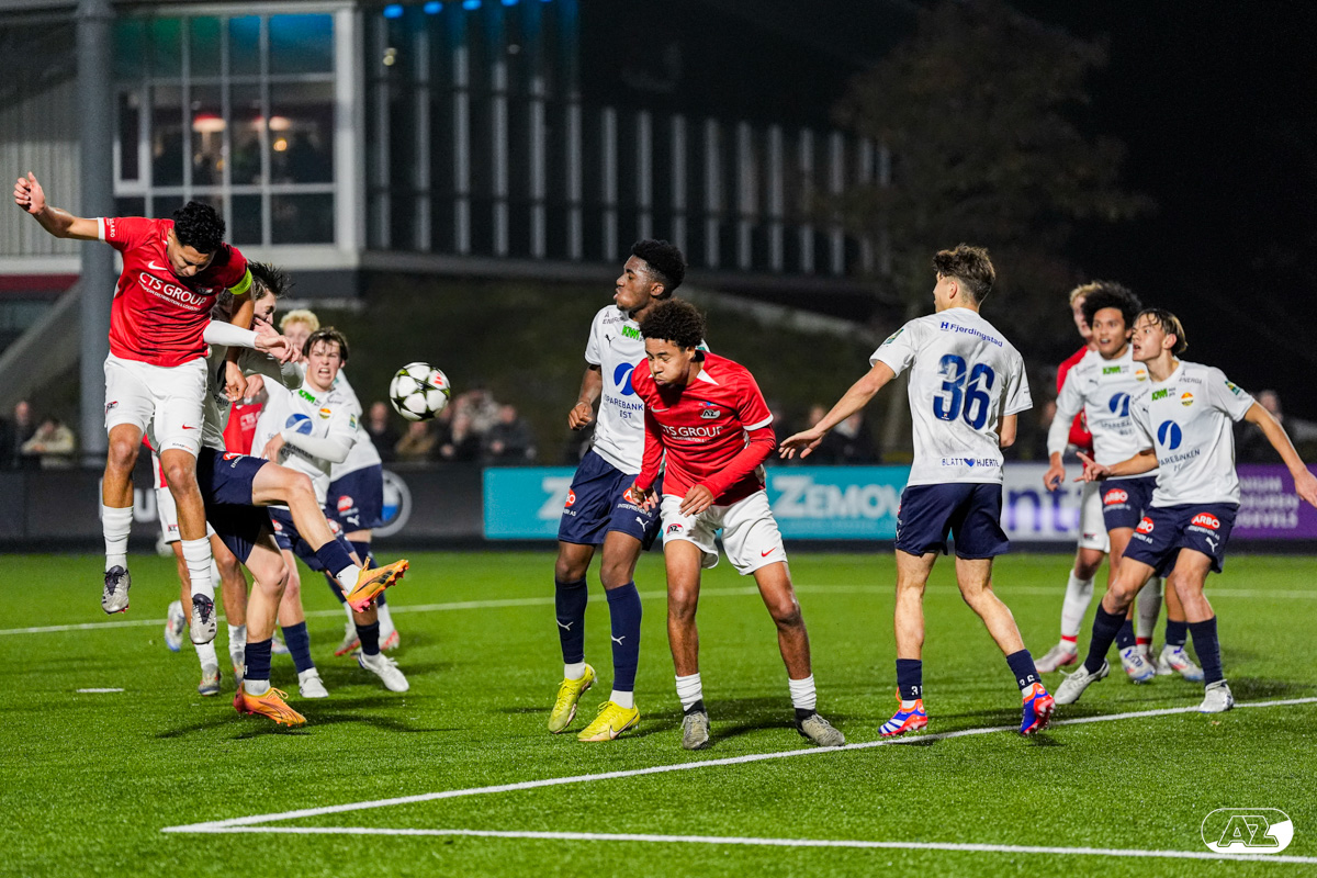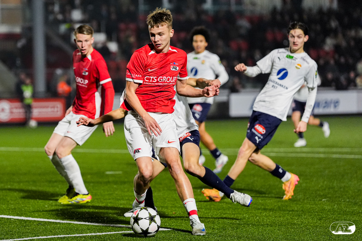 ZAANSTAD- AZ Onder 19 verzekerde zich woensdagavond van een plek in de volgende ronde van het UEFA Youth League-toernooi. Op het AFAS Trainingscomplex won de ploeg van trainer Michael van Zijtveld met 4-1 van het Noorse Strømsgodset IF. De wedstrijd in beeld. (Foto's: Ed van de Pol)