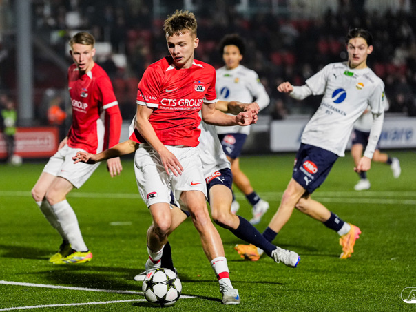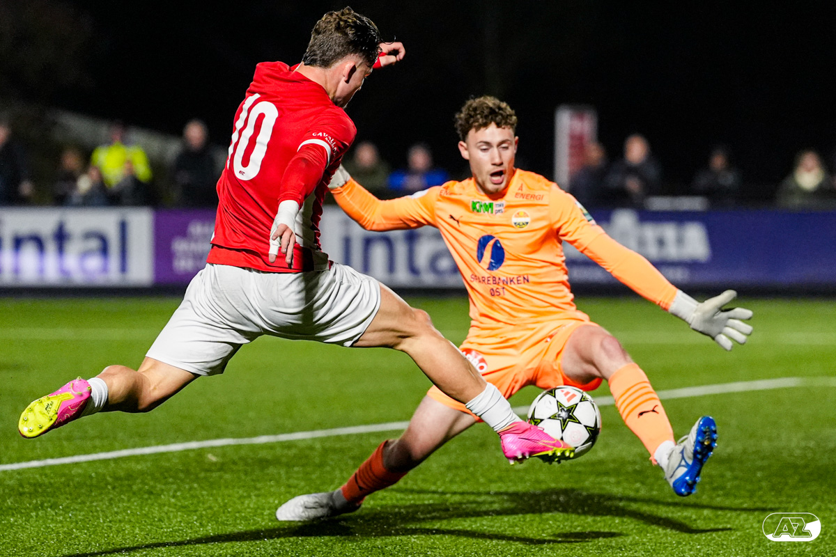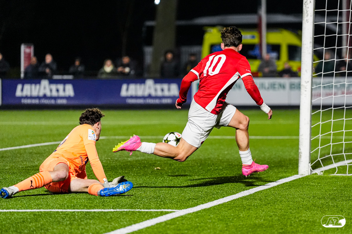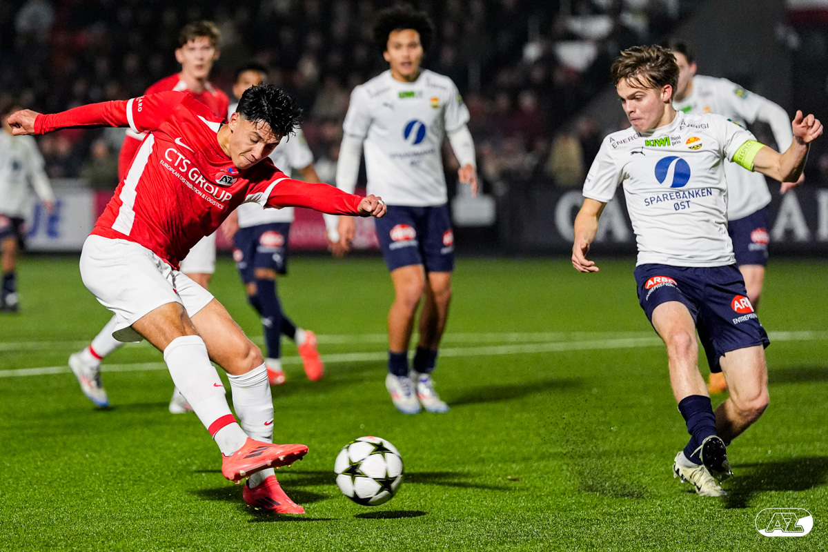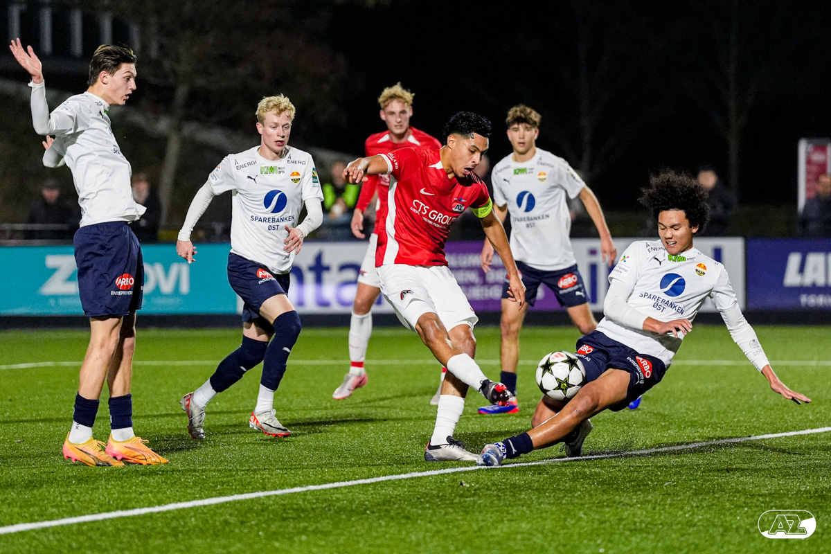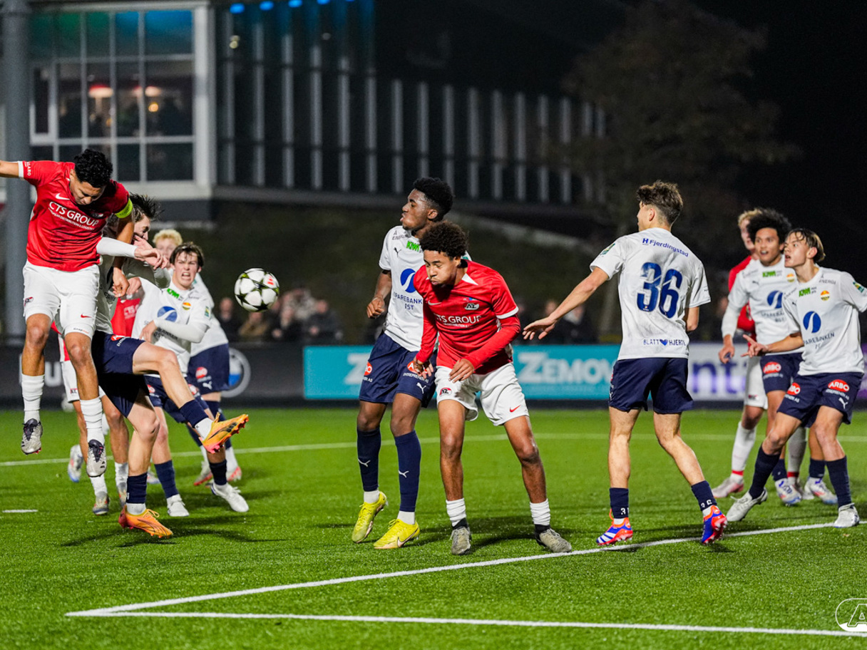 ZAANSTAD- AZ Onder 19 verzekerde zich woensdagavond van een plek in de volgende ronde van het UEFA Youth League-toernooi. Op het AFAS Trainingscomplex won de ploeg van trainer Michael van Zijtveld met 4-1 van het Noorse Strømsgodset IF. De wedstrijd in beeld. (Foto's: Ed van de Pol)