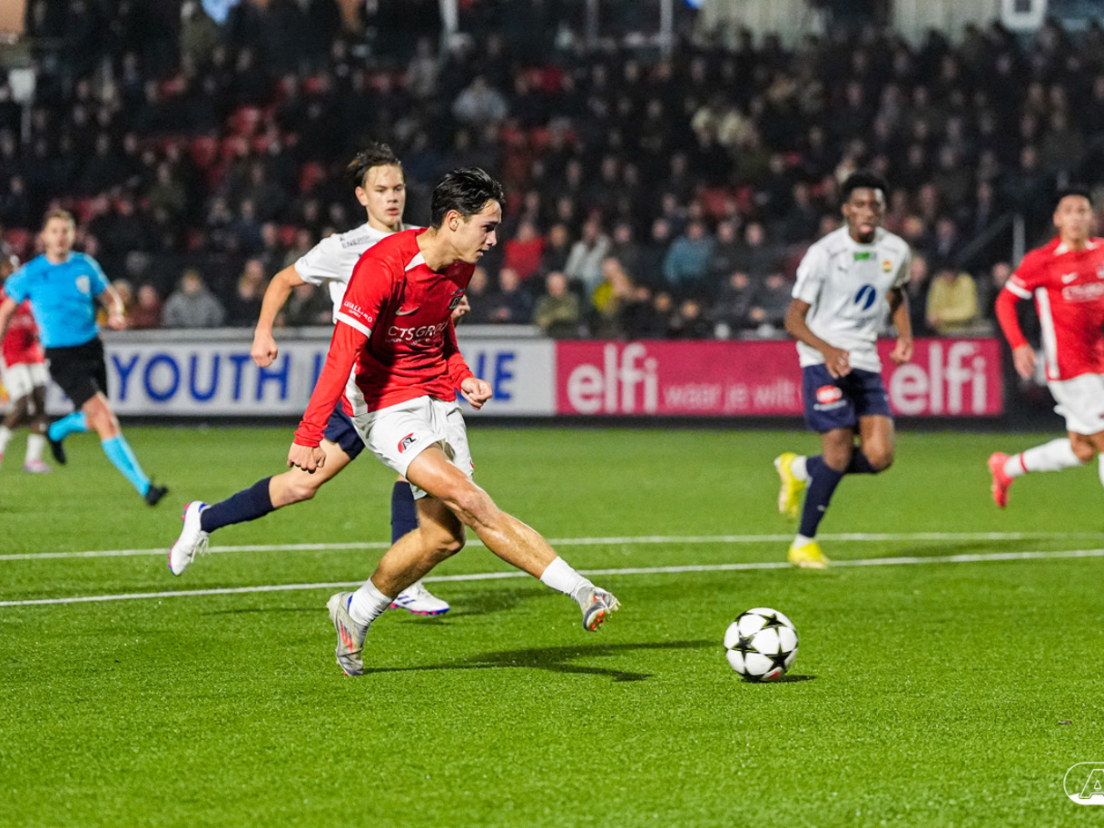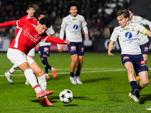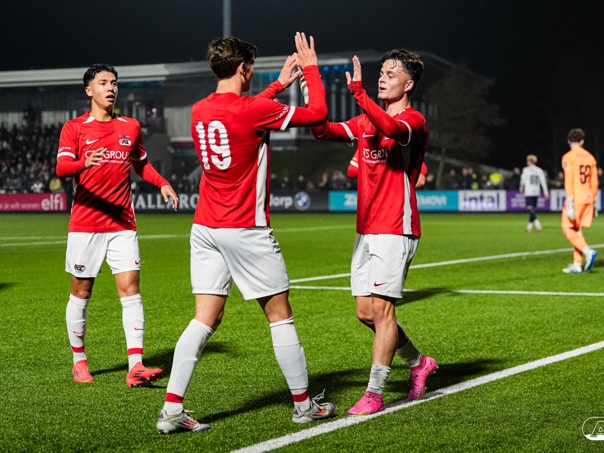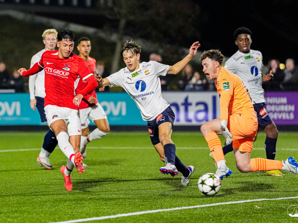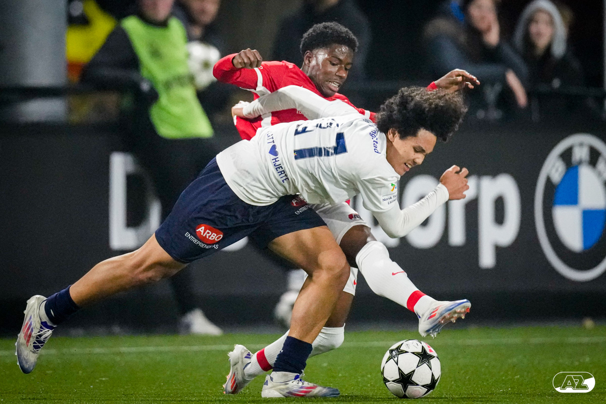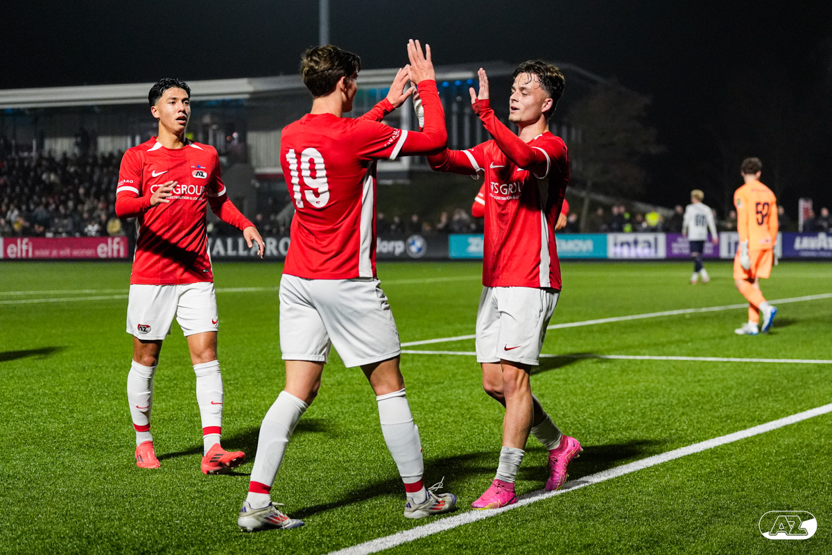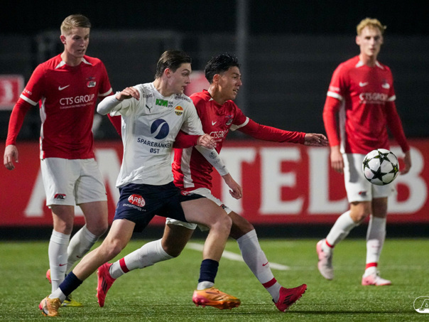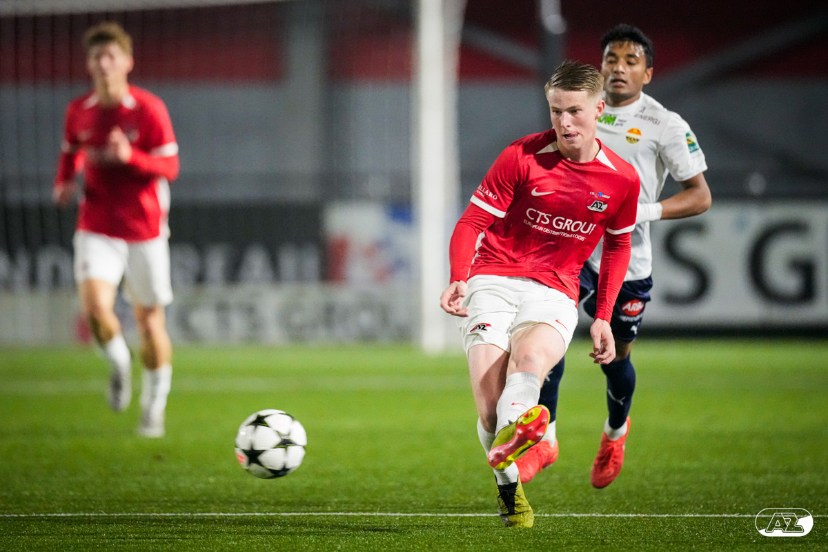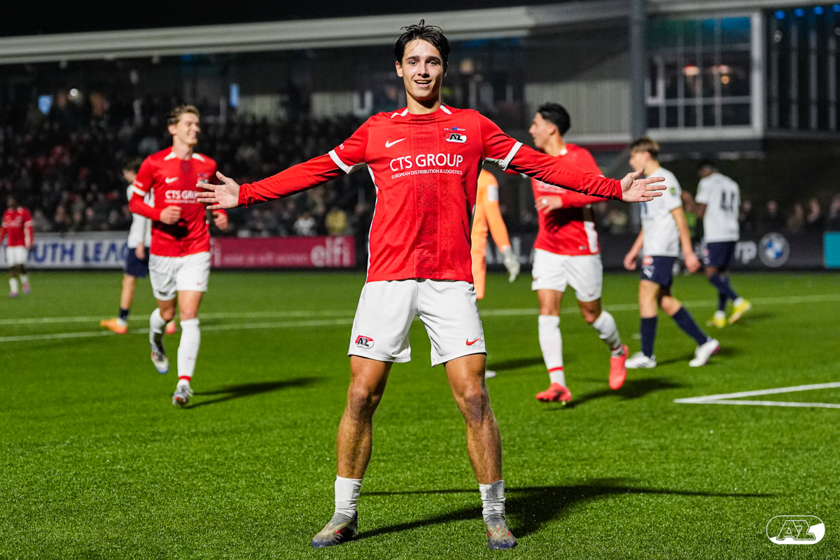 ZAANSTAD- AZ Onder 19 verzekerde zich woensdagavond van een plek in de volgende ronde van het UEFA Youth League-toernooi. Op het AFAS Trainingscomplex won de ploeg van trainer Michael van Zijtveld met 4-1 van het Noorse Strømsgodset IF. De wedstrijd in beeld. (Foto's: Ed van de Pol)