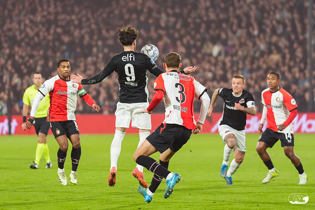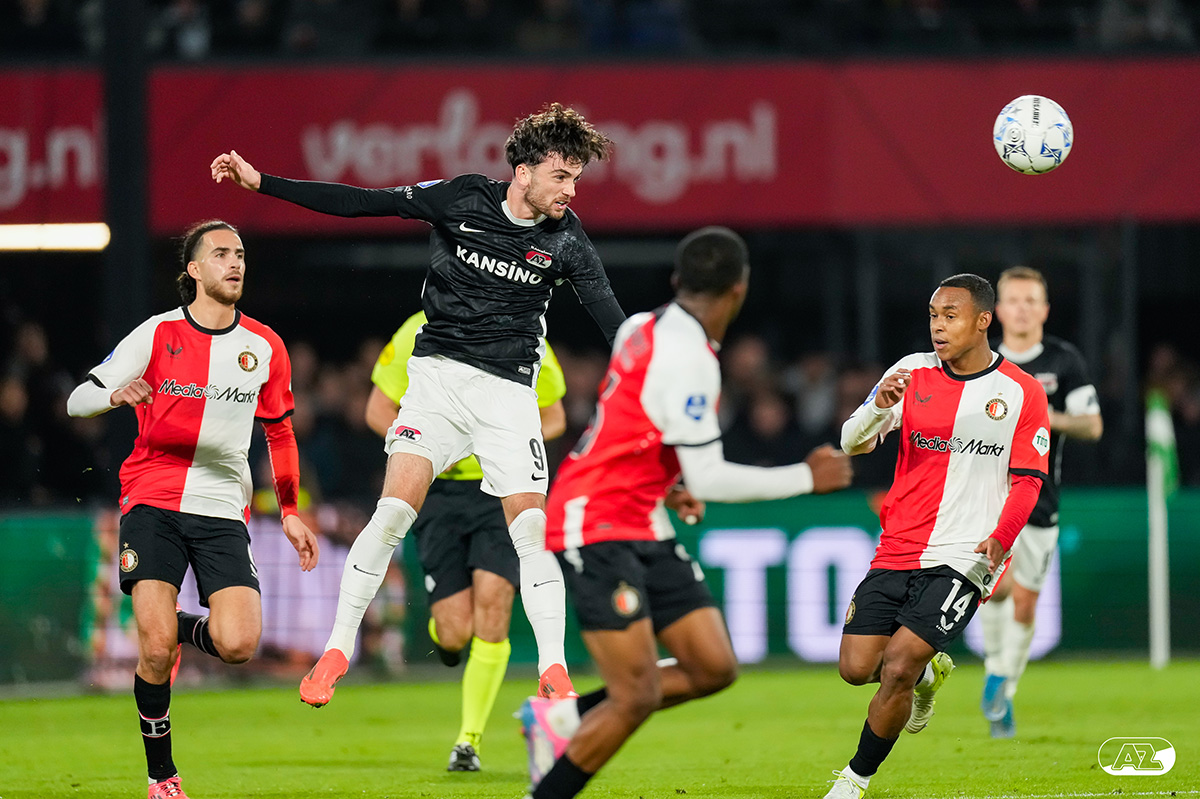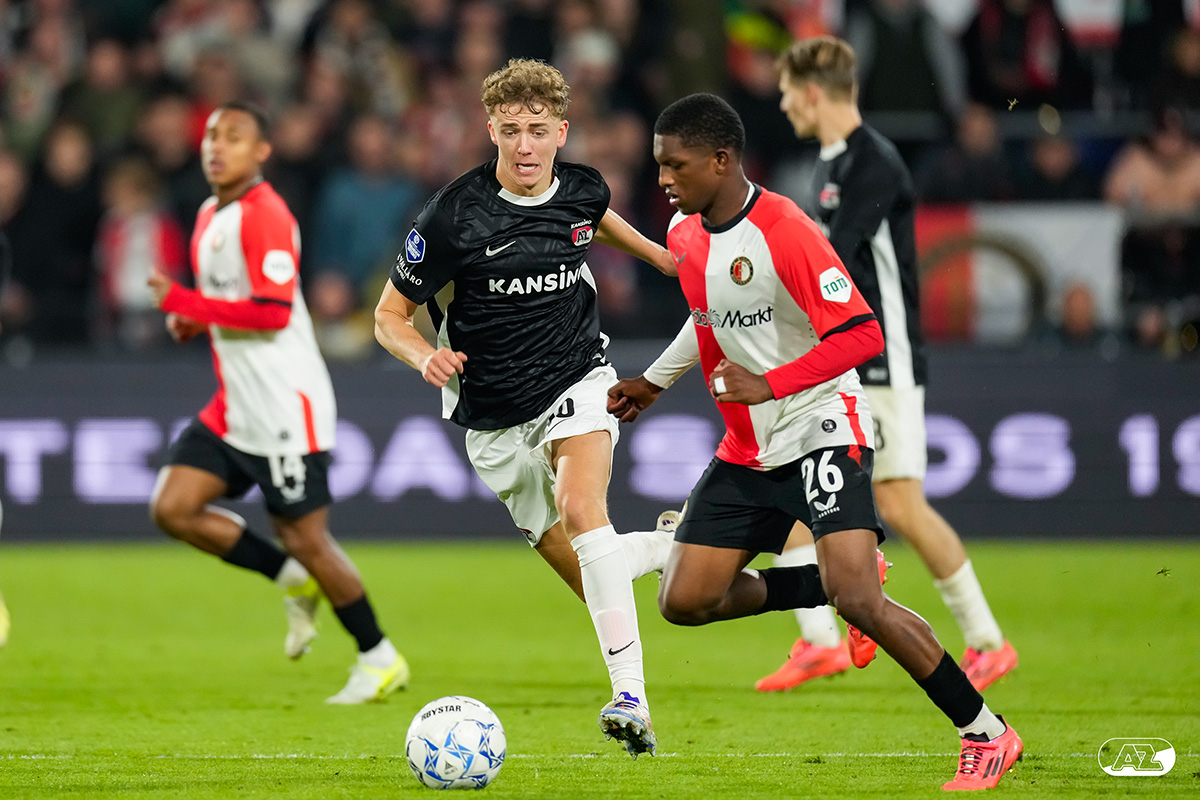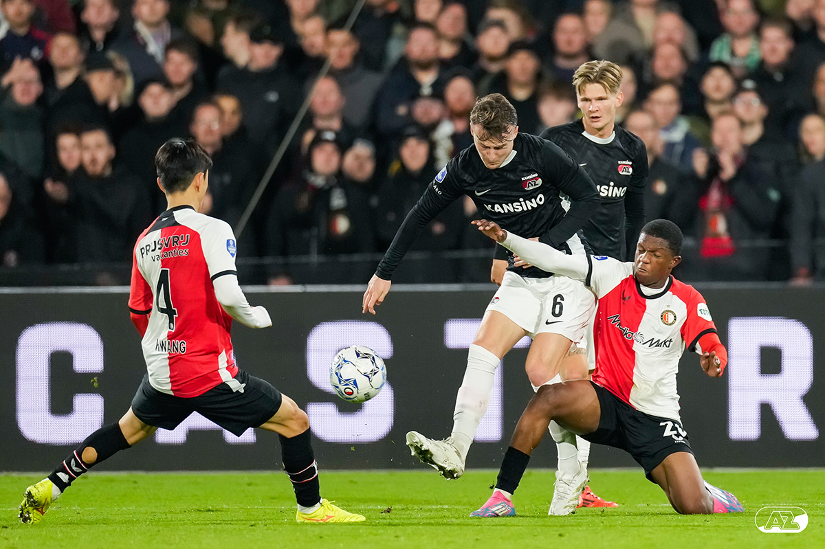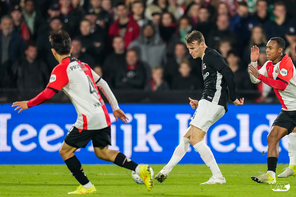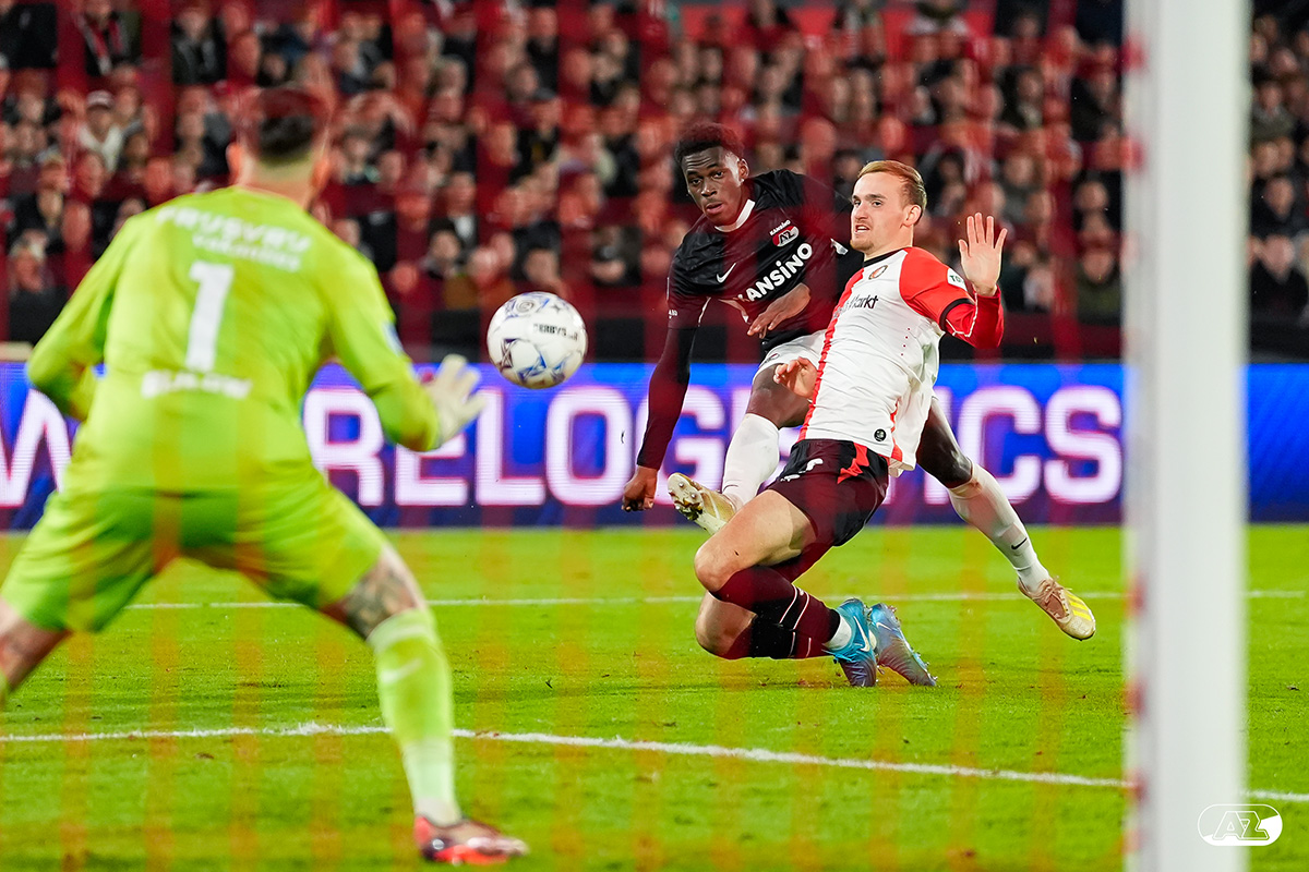 ROTTERDAM- AZ slaagde er zaterdag niet in om punten te behalen in Rotterdam. In De Kuip trok Feyenoord met 3-2 aan het langste eind. Voor de Alkmaarders kwamen Troy Parrott en Mexx Meerdink tot scoren. Bekijk hier de beelden van de wedstrijd (Foto's van de Ed van de Pol).