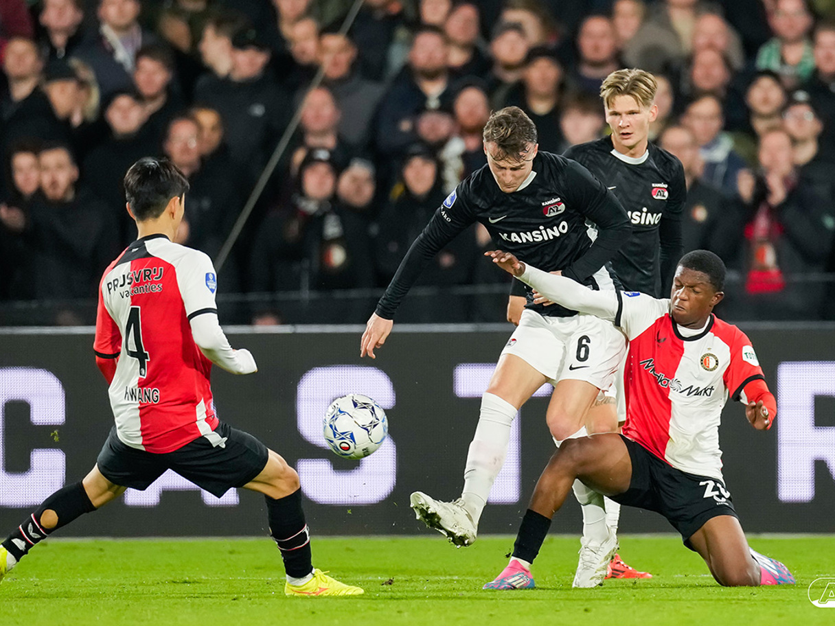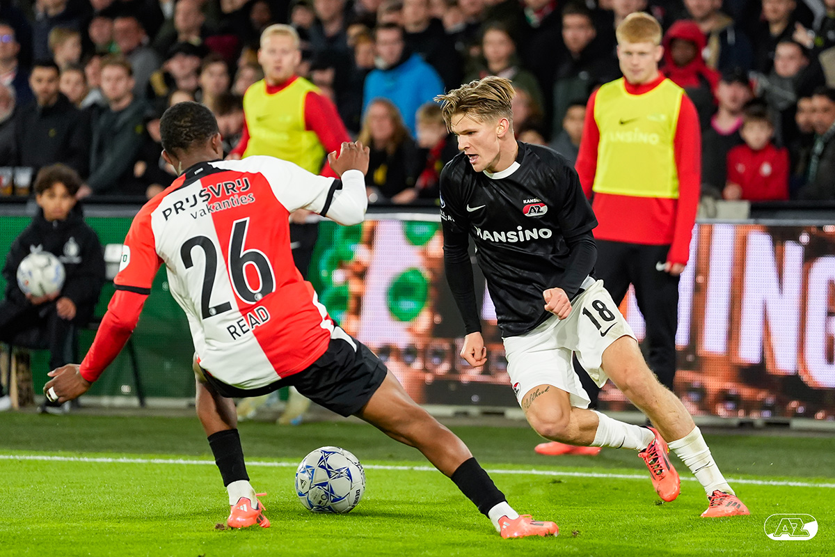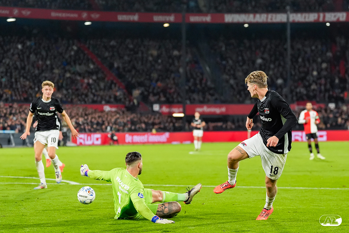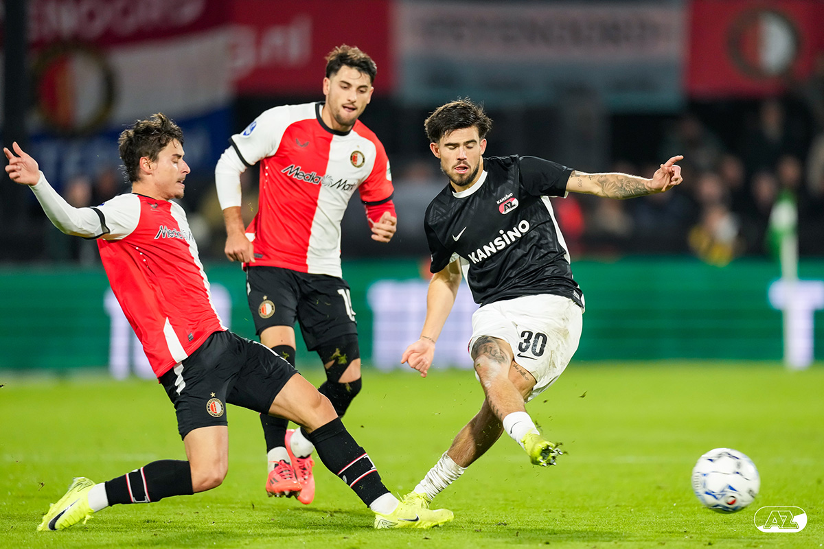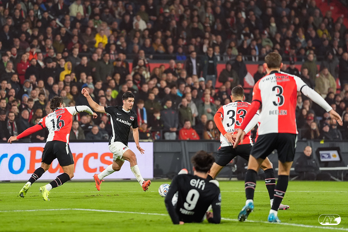 ROTTERDAM- AZ slaagde er zaterdag niet in om punten te behalen in Rotterdam. In De Kuip trok Feyenoord met 3-2 aan het langste eind. Voor de Alkmaarders kwamen Troy Parrott en Mexx Meerdink tot scoren. Bekijk hier de beelden van de wedstrijd (Foto's van de Ed van de Pol).