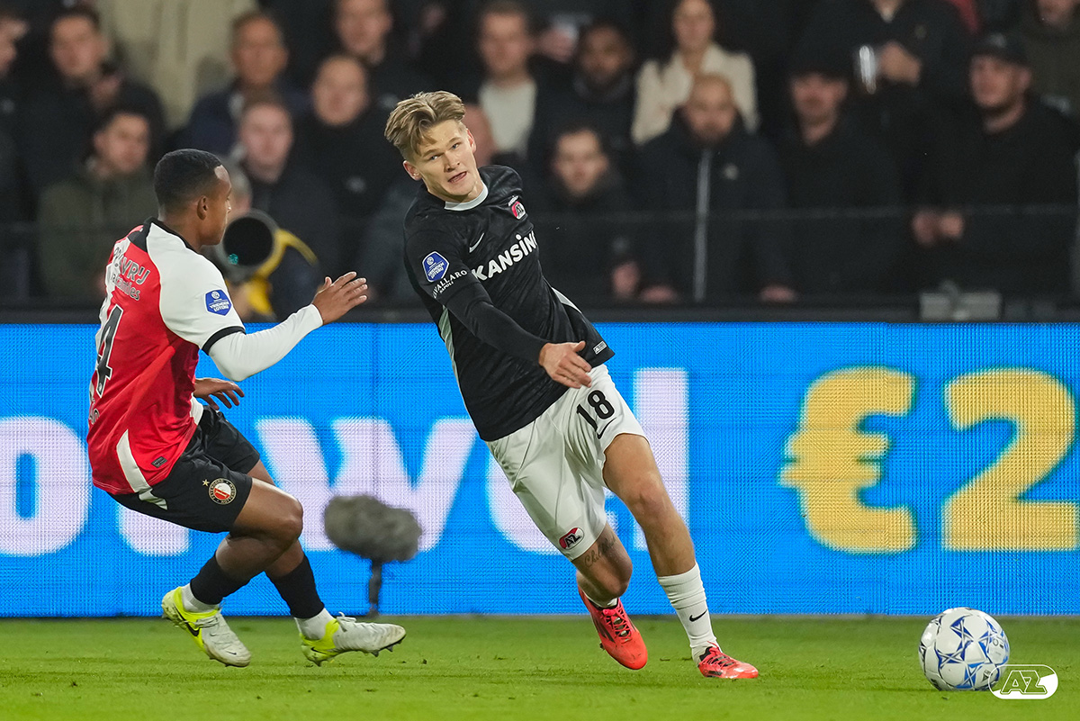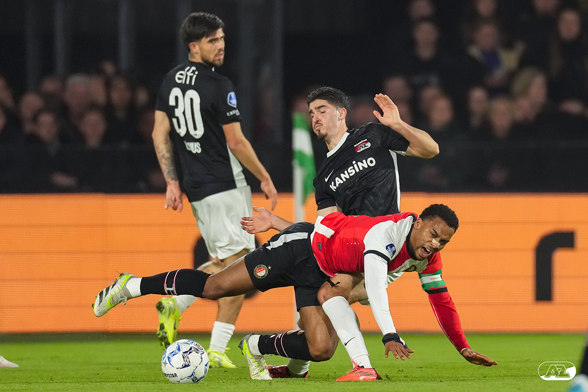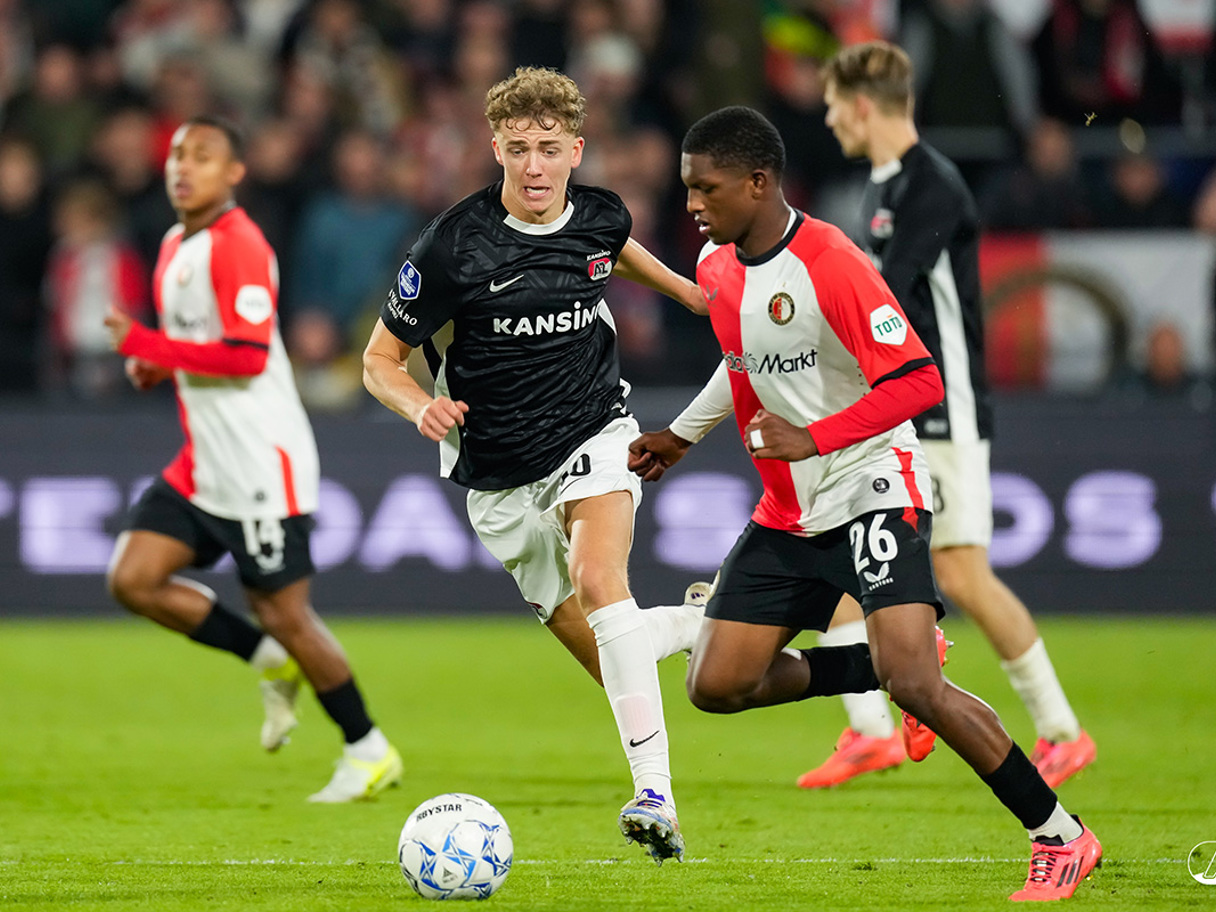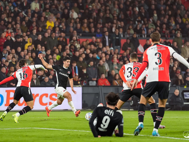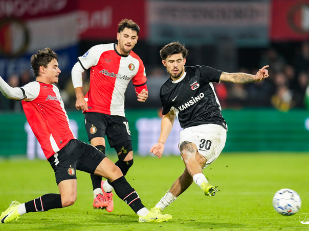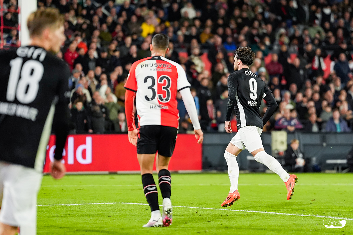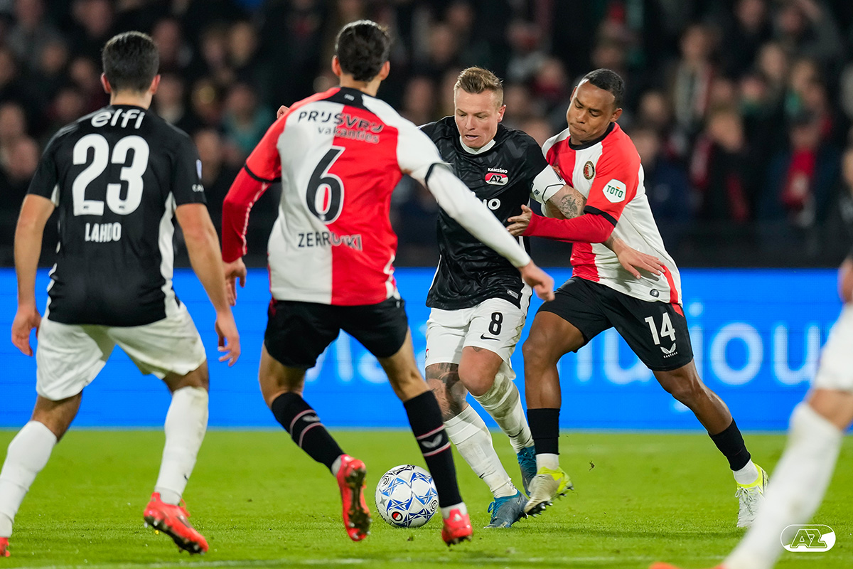 ROTTERDAM- AZ slaagde er zaterdag niet in om punten te behalen in Rotterdam. In De Kuip trok Feyenoord met 3-2 aan het langste eind. Voor de Alkmaarders kwamen Troy Parrott en Mexx Meerdink tot scoren. Bekijk hier de beelden van de wedstrijd (Foto's van de Ed van de Pol).