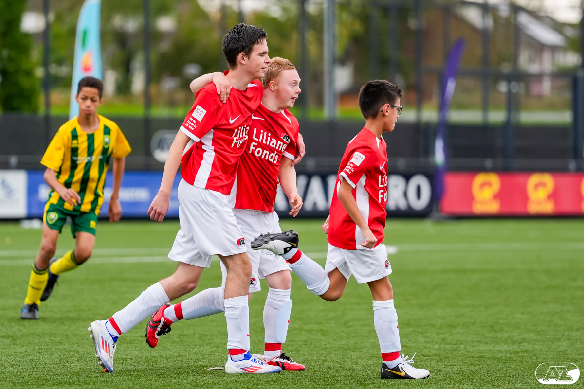 ZAANSTAD- Mooie doelpunten en lachende gezichten alom op het AFAS Trainingscomplex, waar zondag 20 oktober een nieuwe speelronde van de Bijzondere Eredivisie op het programma stond. Een bijzondere kans voor de spelers en speelsters om op het veld te schitteren in het shirt van een betaald voetbalclub. Het G-voetbalteam van AZ wist ongeslagen uit de strijd te komen met één overwinning en twee gelijke spelen.