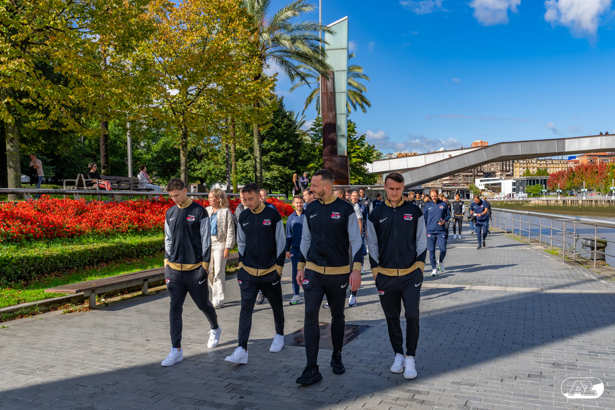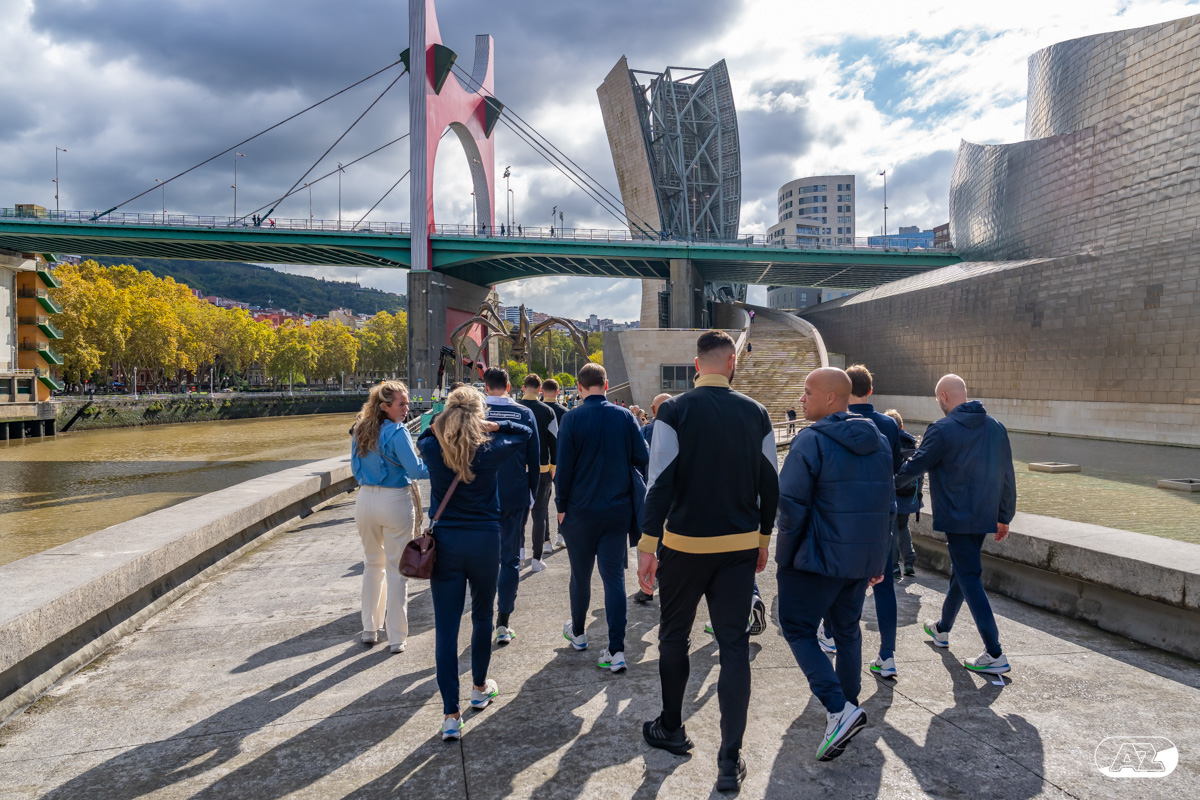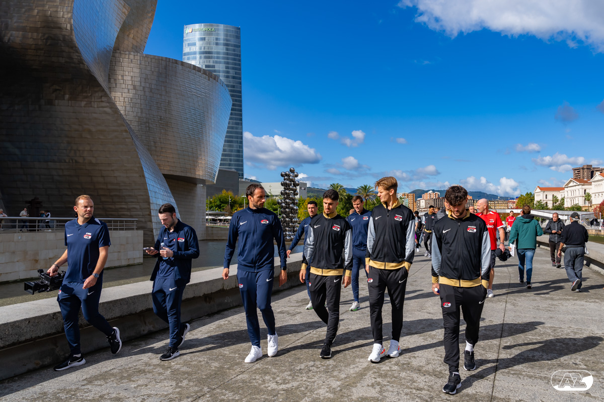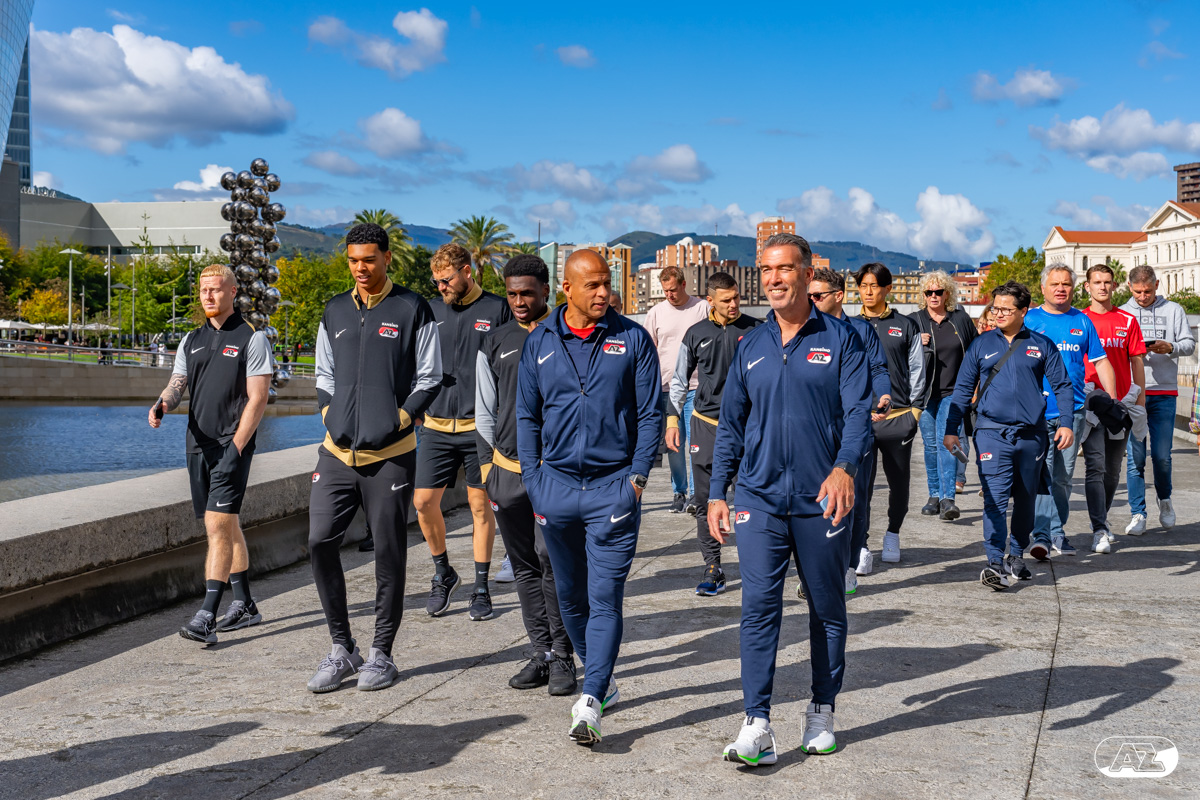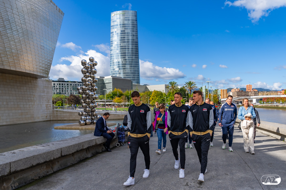 BILBAO- AZ staat donderdagavond om 21:00 uur in het San Mamés-stadion tegenover Athletic Club. Na een intensieve training op woensdagavond maakte de selectie van Maarten Martens donderdagochtend ter ontspanning een wandeling door de stad Bilbao. (Foto's: Ed van de Pol)