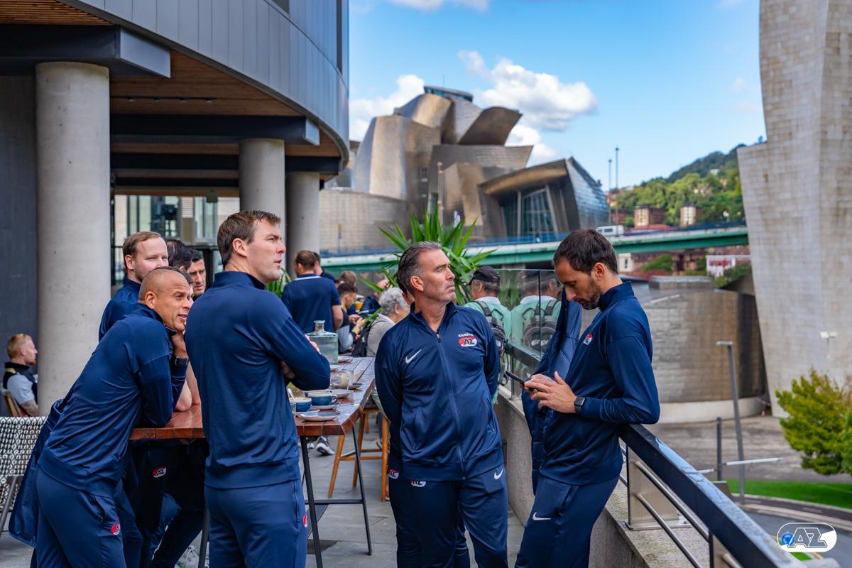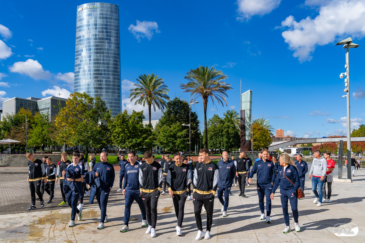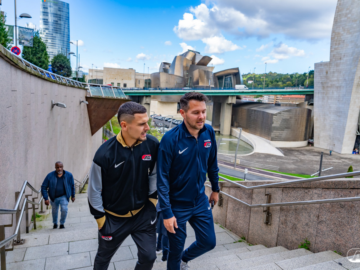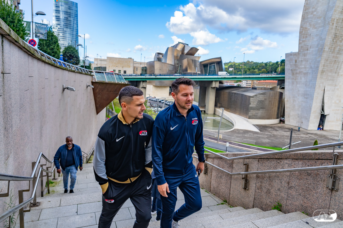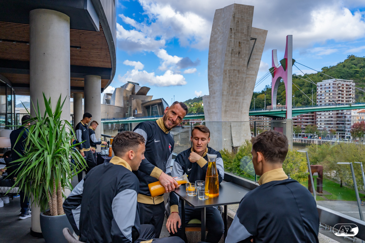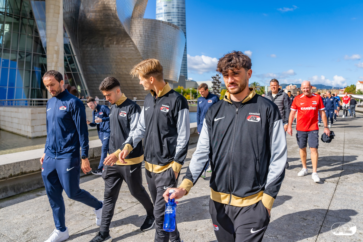 BILBAO- AZ staat donderdagavond om 21:00 uur in het San Mamés-stadion tegenover Athletic Club. Na een intensieve training op woensdagavond maakte de selectie van Maarten Martens donderdagochtend ter ontspanning een wandeling door de stad Bilbao. (Foto's: Ed van de Pol)