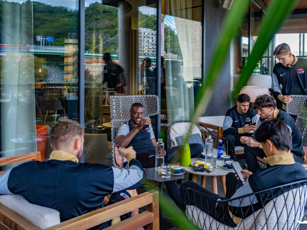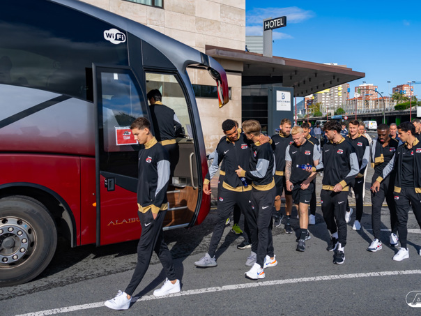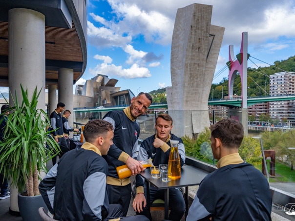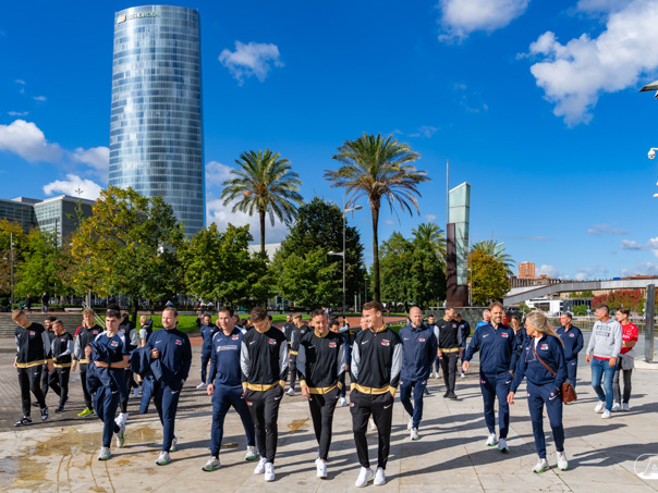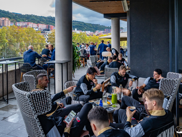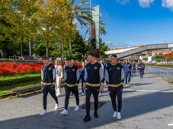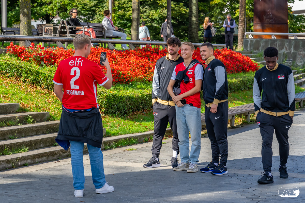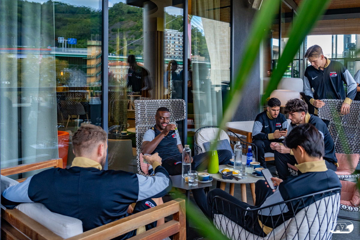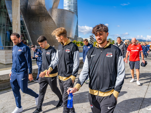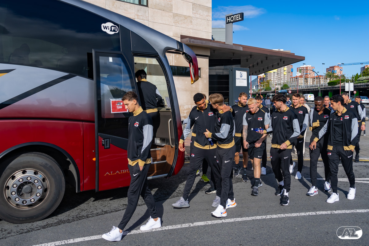 BILBAO- AZ staat donderdagavond om 21:00 uur in het San Mamés-stadion tegenover Athletic Club. Na een intensieve training op woensdagavond maakte de selectie van Maarten Martens donderdagochtend ter ontspanning een wandeling door de stad Bilbao. (Foto's: Ed van de Pol)